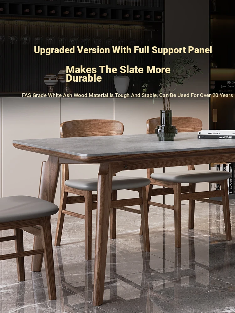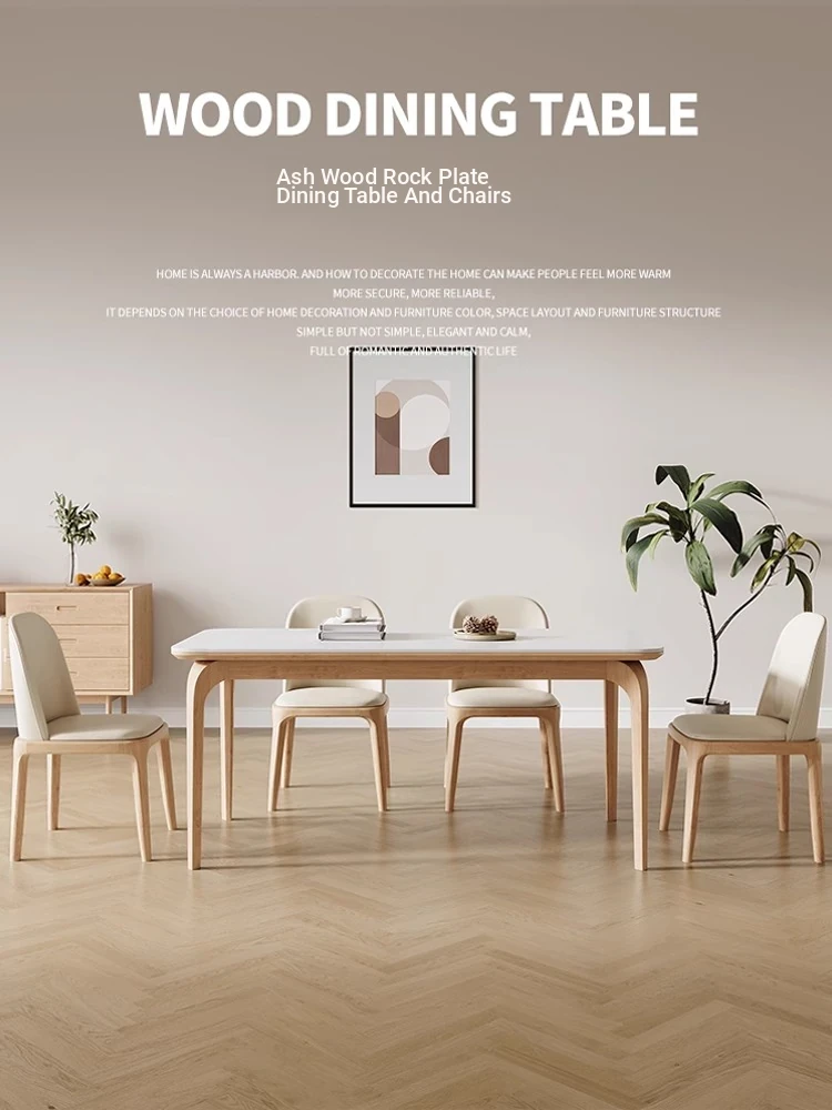 Creamy Wood Rectangular Dining Table Set for Small Spaces - Nordic Style Solid Ash Wood with Rock Slate Top, Perfect for Home Use