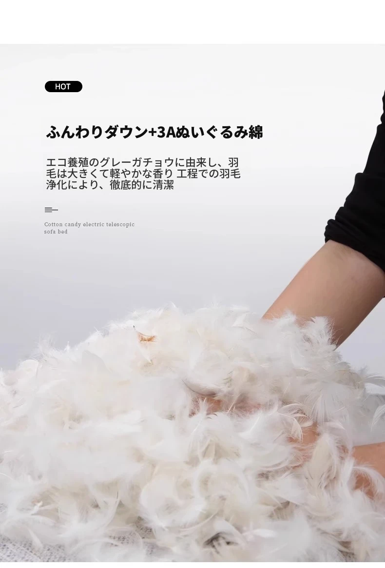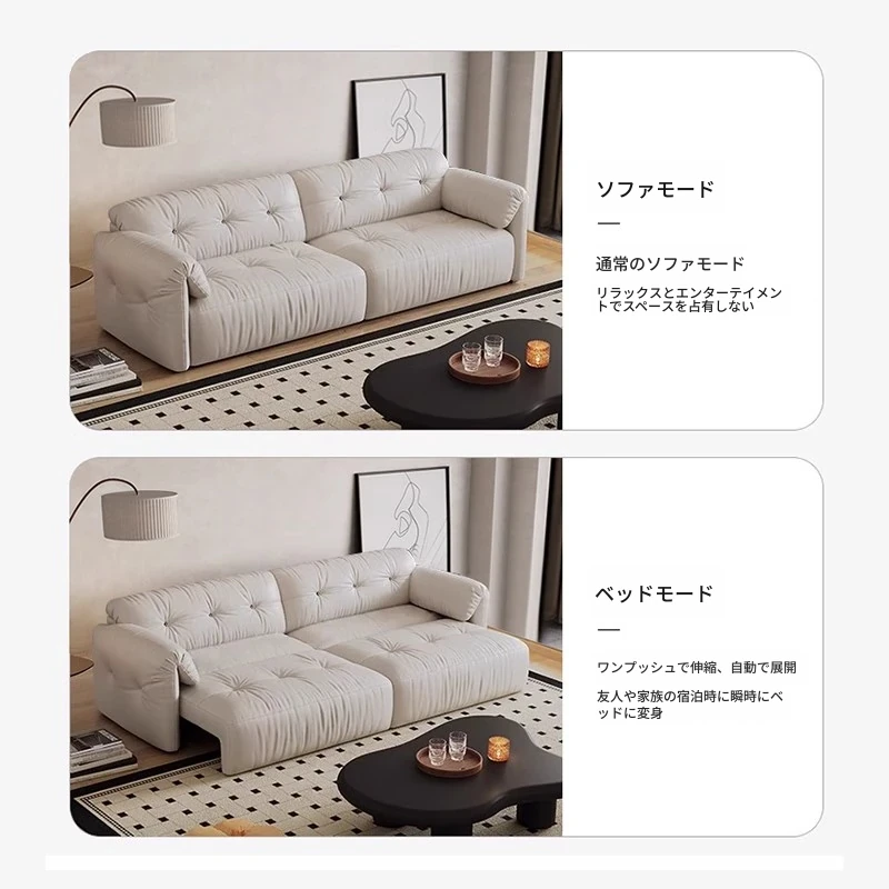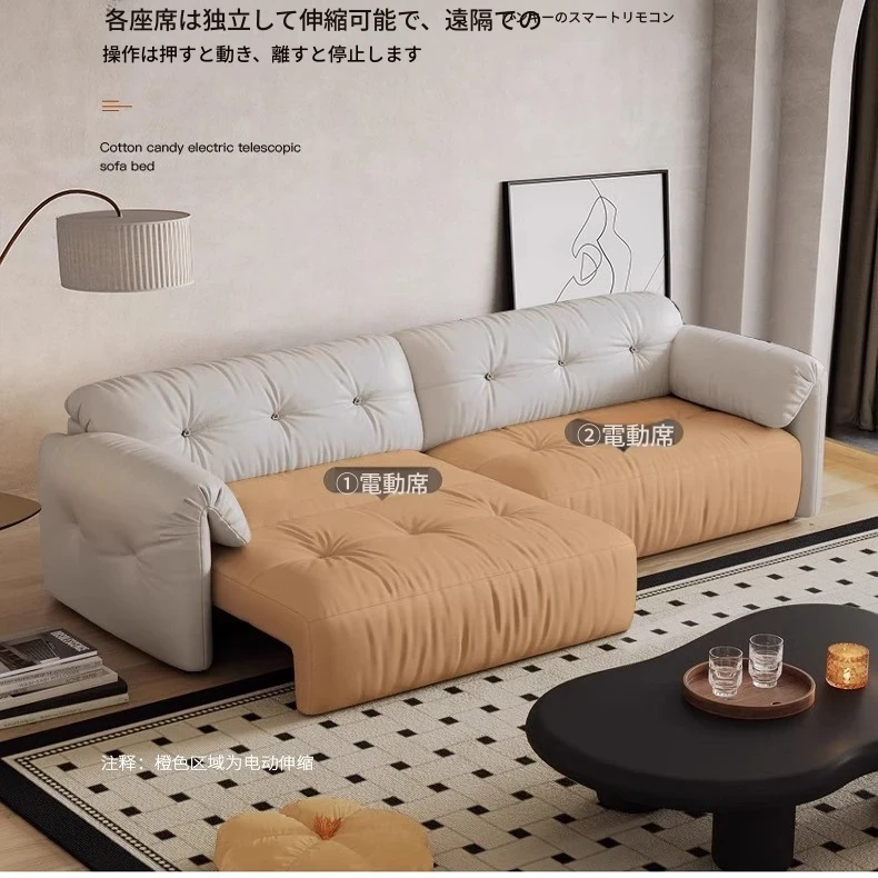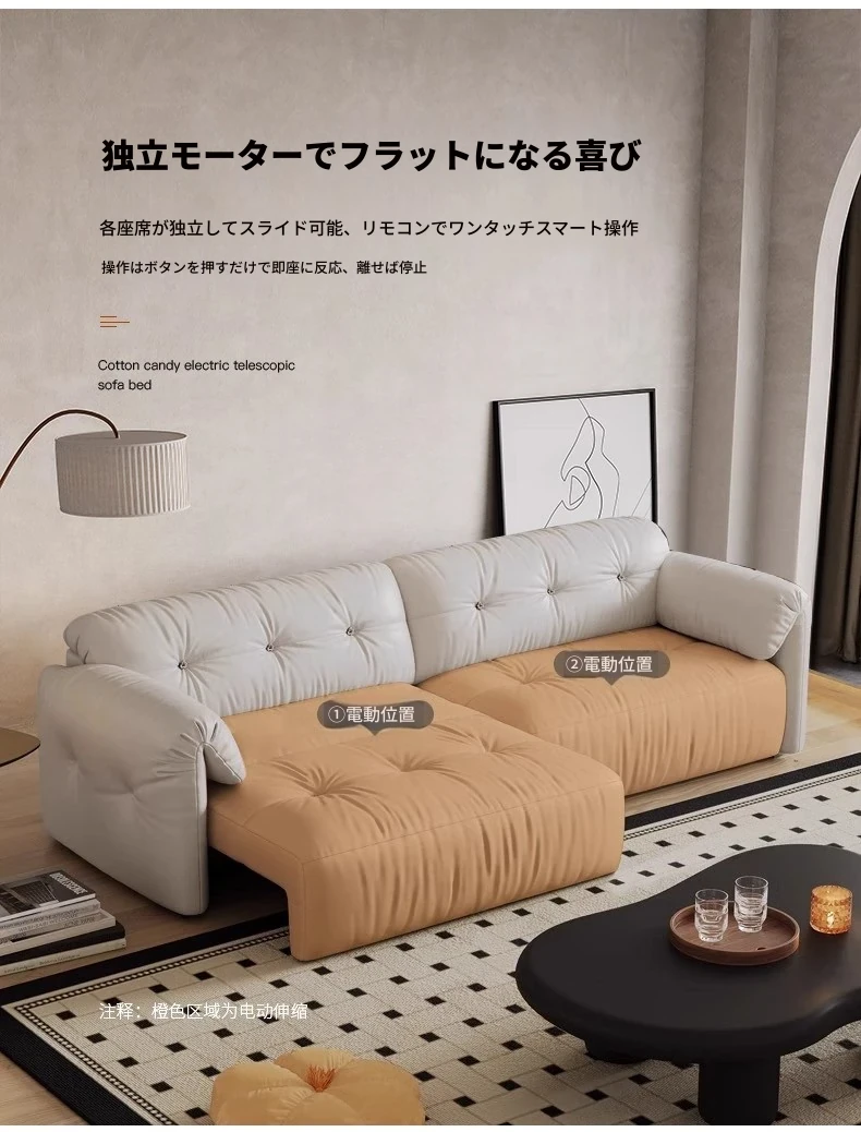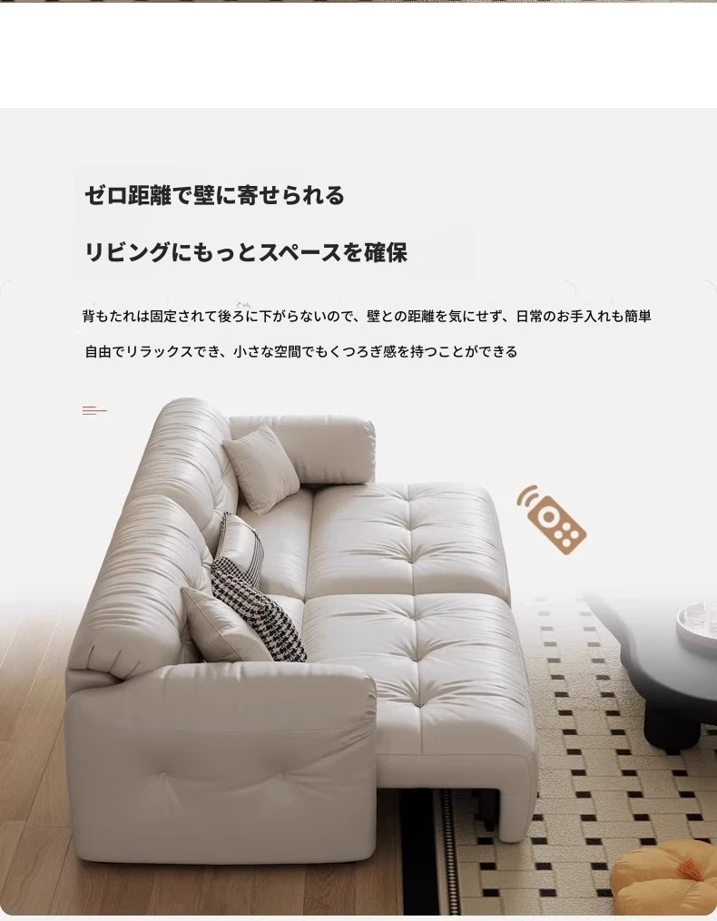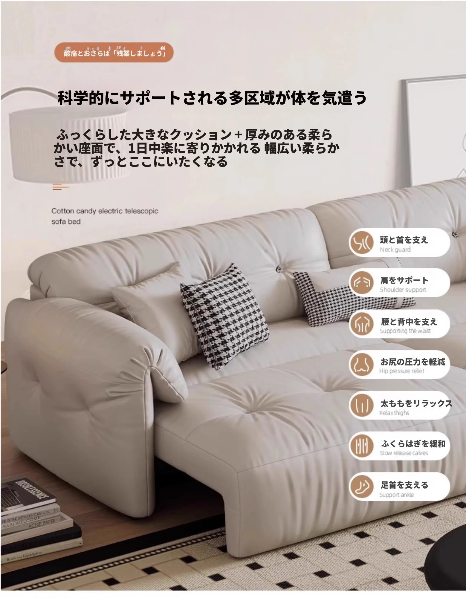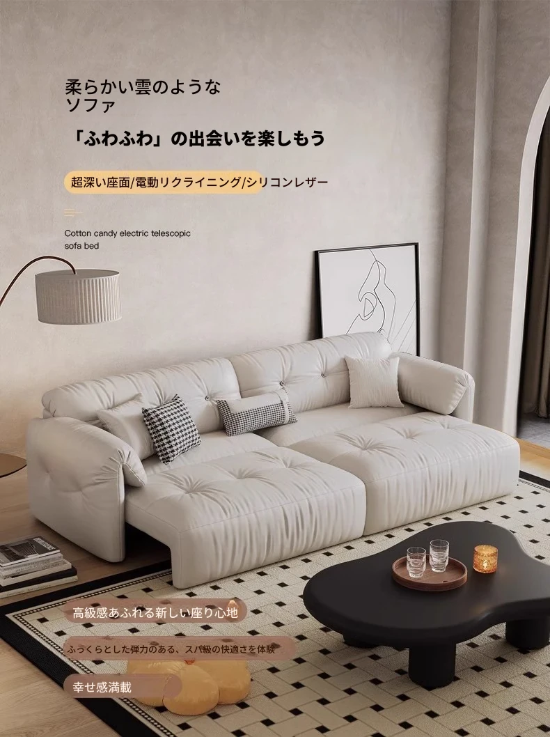 2025年新作!雲のような電動ソファ、クリーム風デザインのリビング用。小型スペースにも最適、伸縮可能で多機能なラウンジソファベッド。快適なリラックスタイムをお届けします!