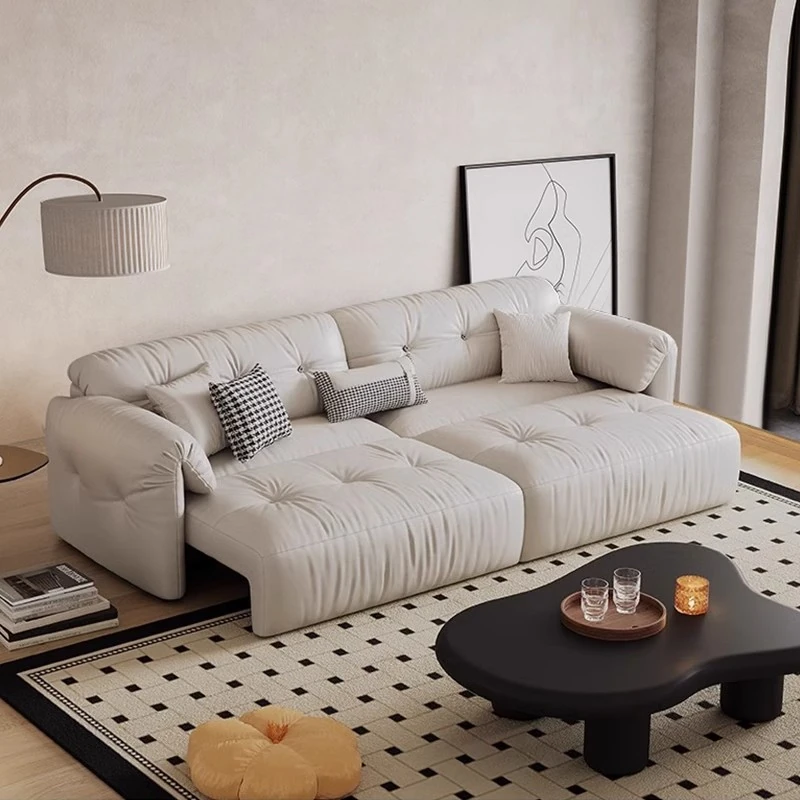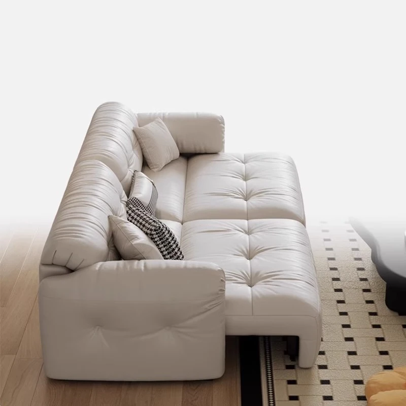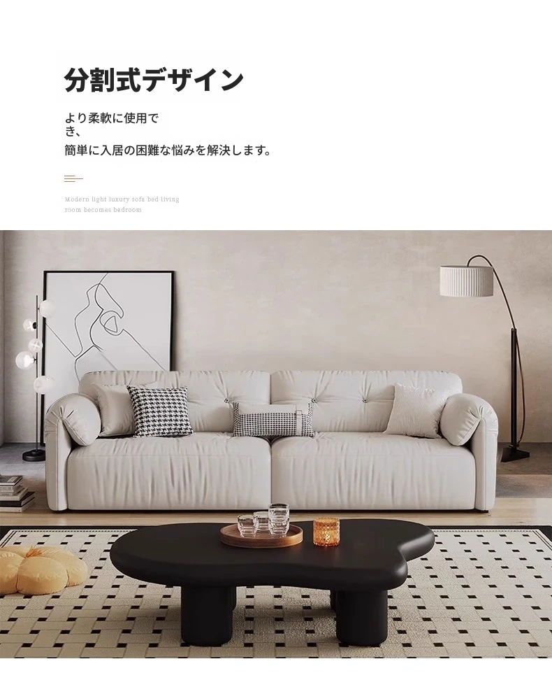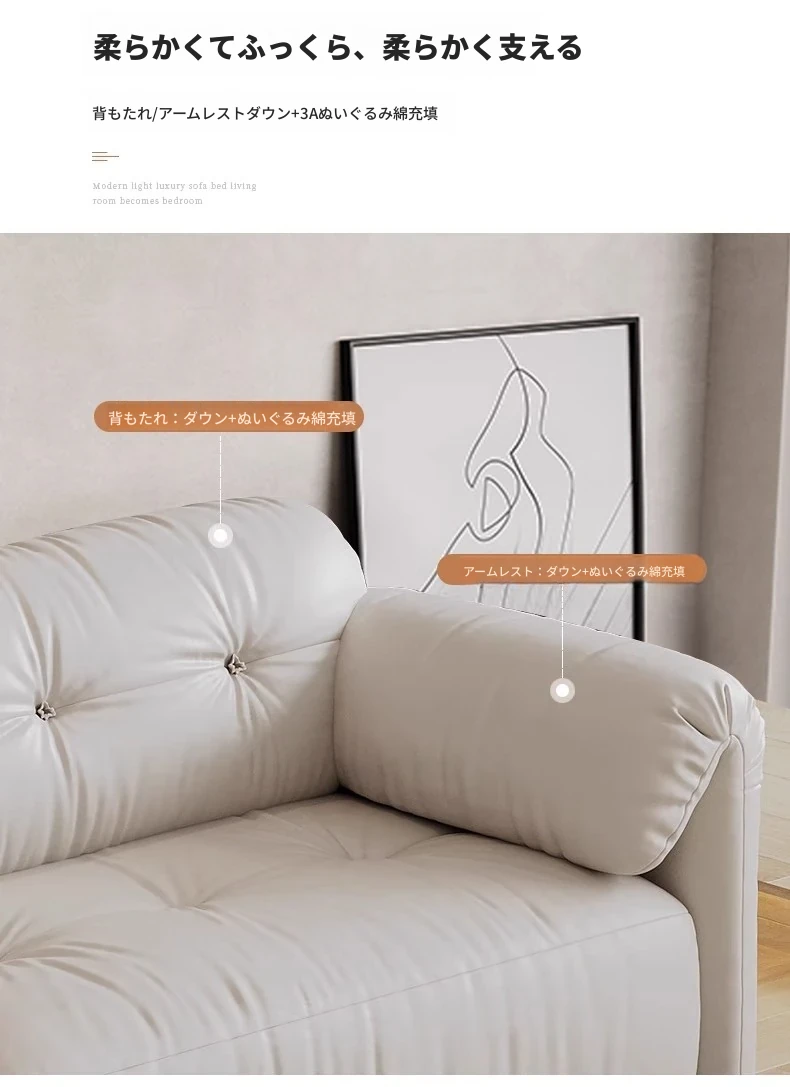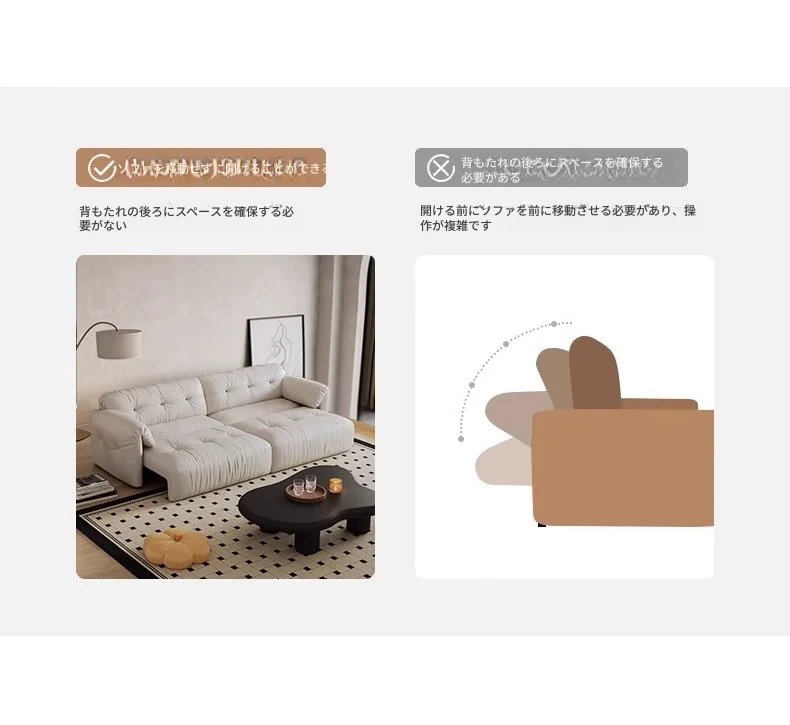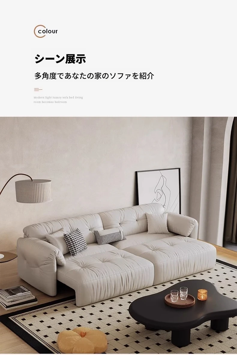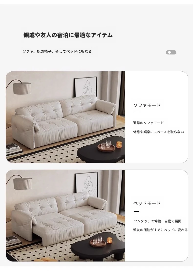 2025年新作!雲のような電動ソファ、クリーム風デザインのリビング用。小型スペースにも最適、伸縮可能で多機能なラウンジソファベッド。快適なリラックスタイムをお届けします!