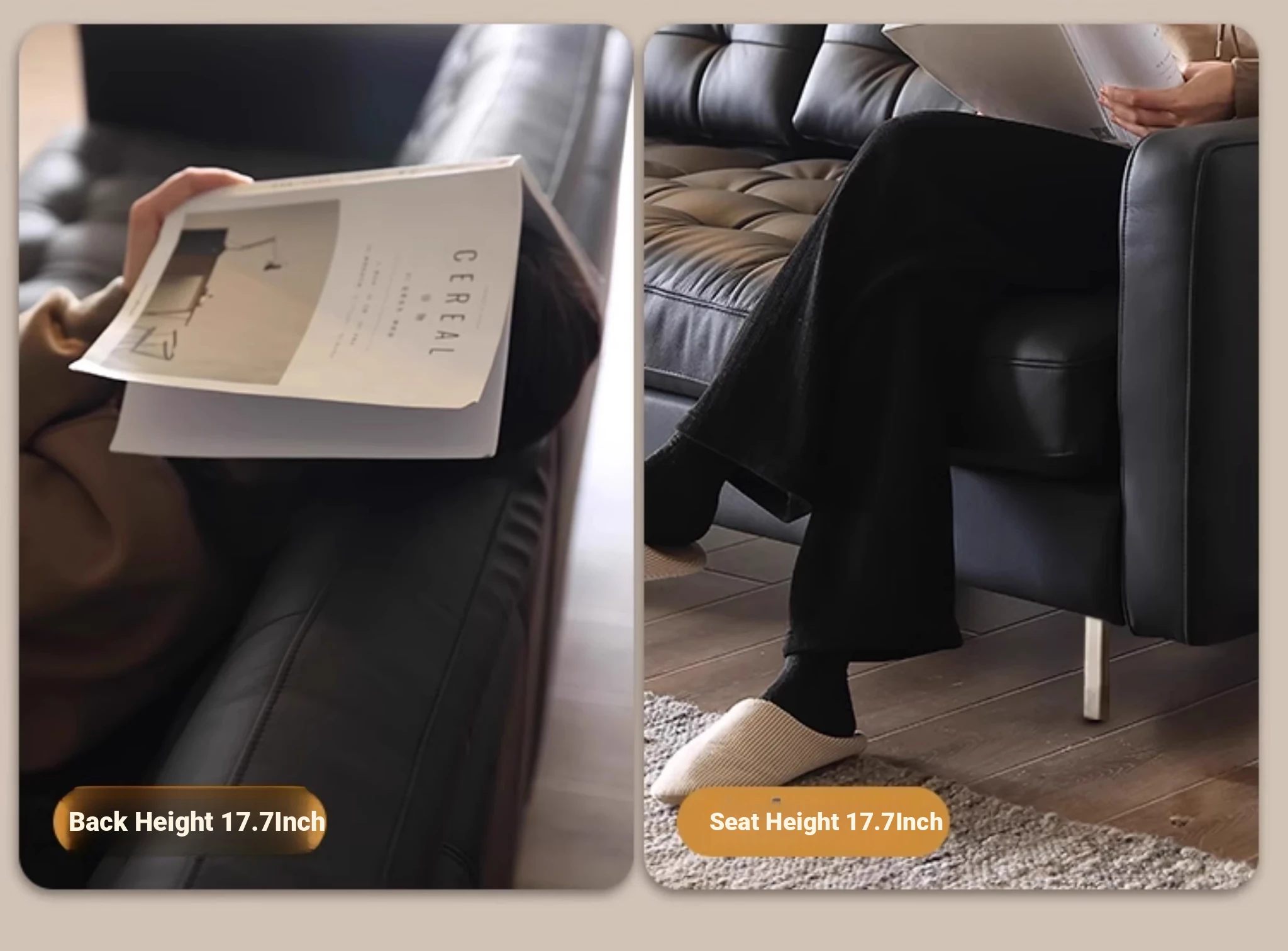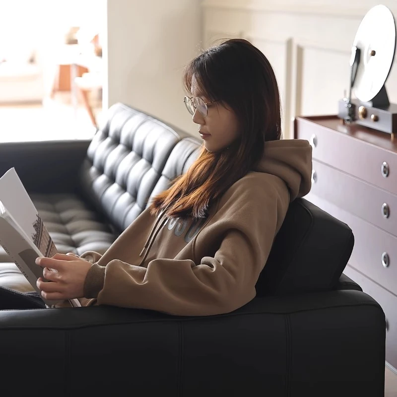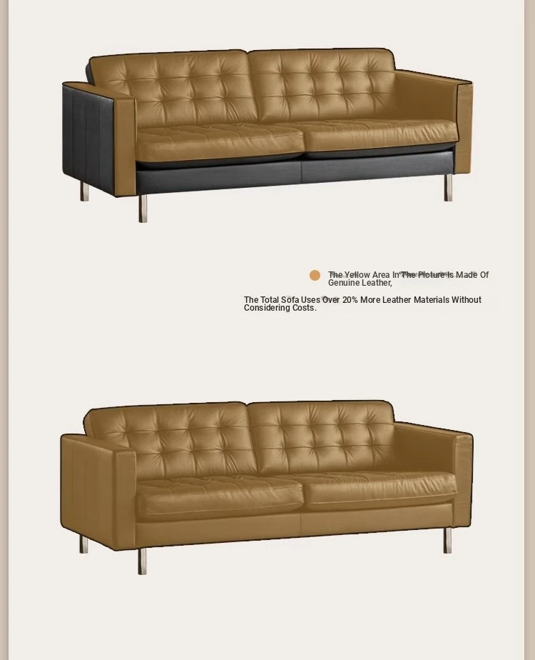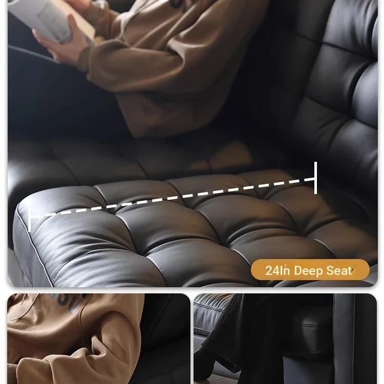 2025 New Vintage French Genuine Leather Sofa - Modern Minimalist Landekna Straight Black Mid-Century Living Room Couch