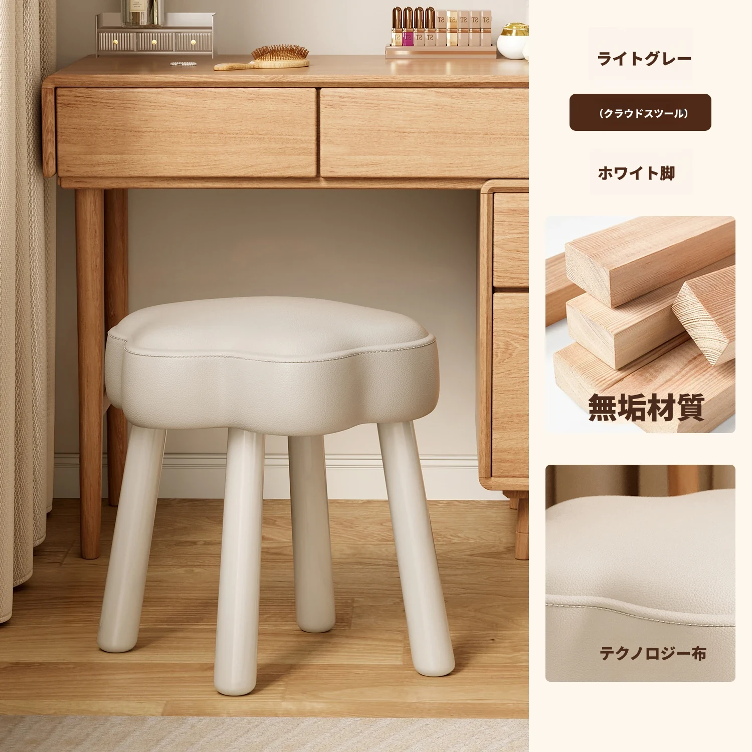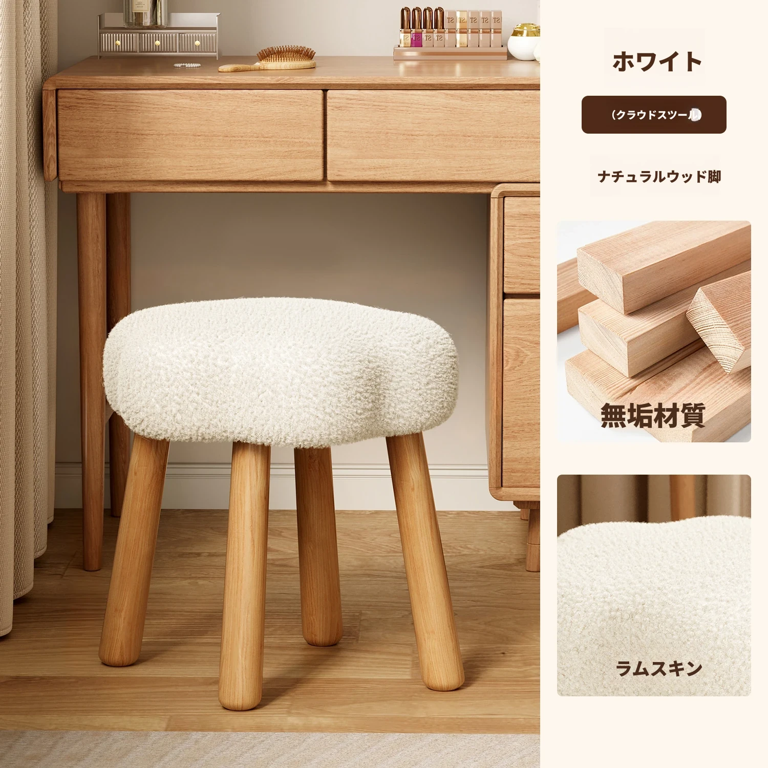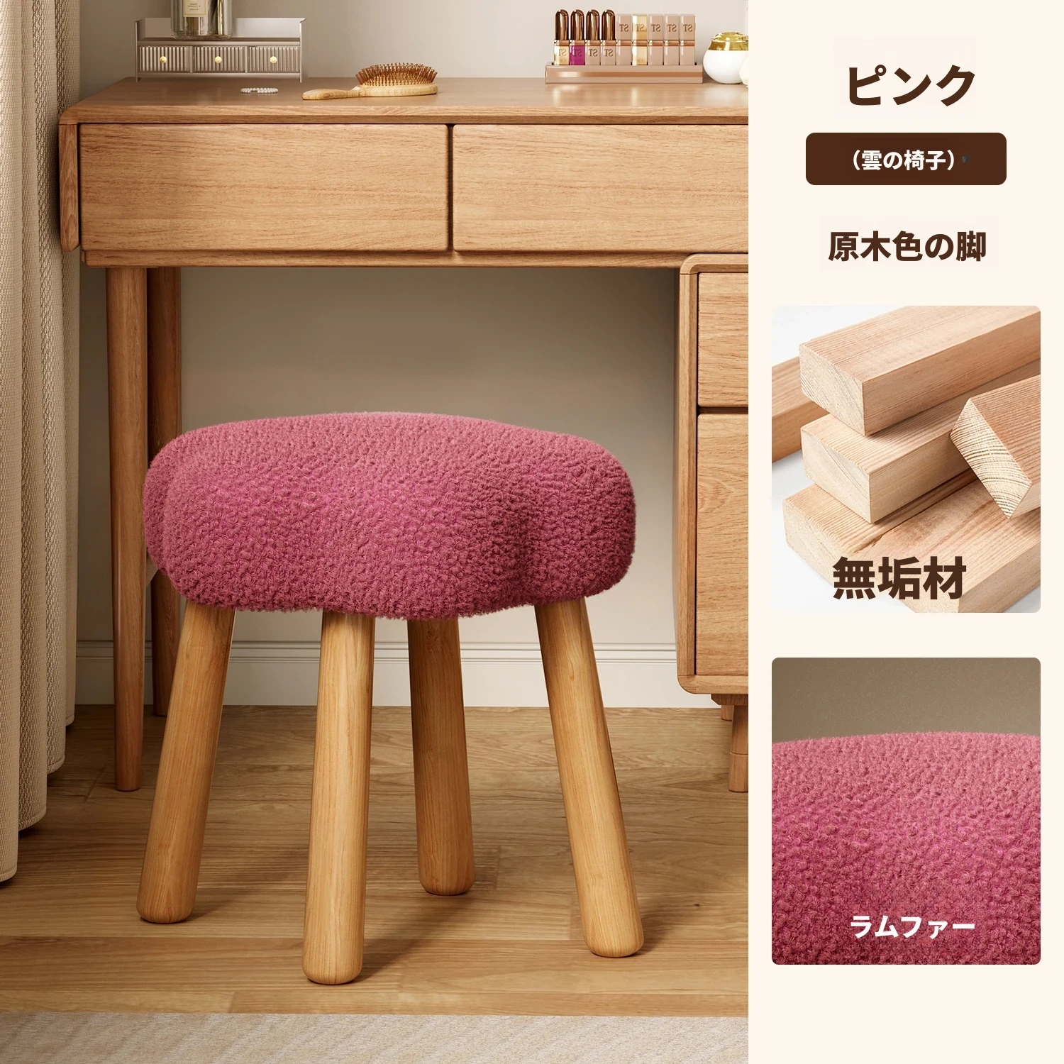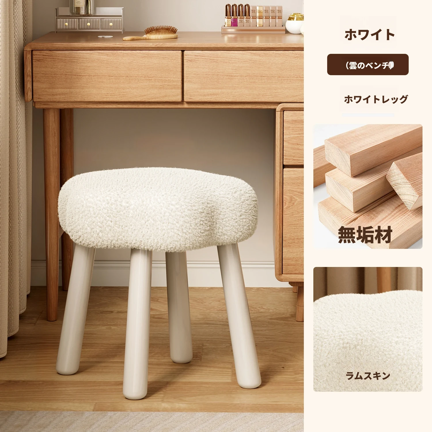 雲朵メイクアップスツール♡クリーム風ドレッサー用スツール♪女性の寝室にぴったりな高級感あるシンプルデザイン✨ネイル専用にも最適な実木製!