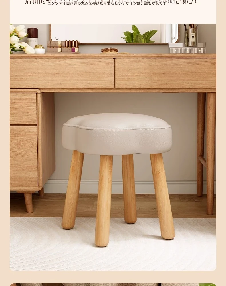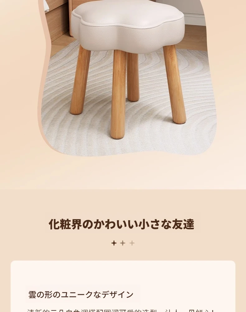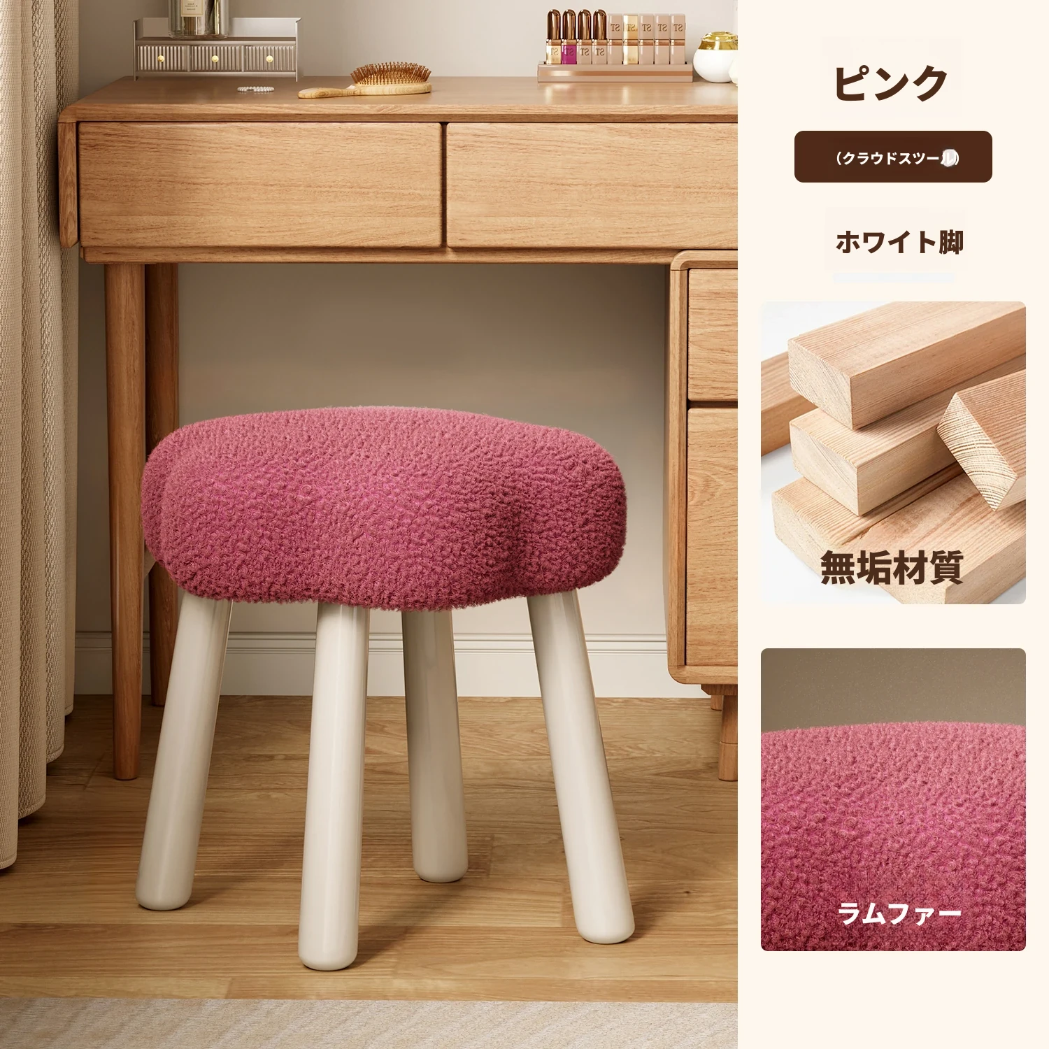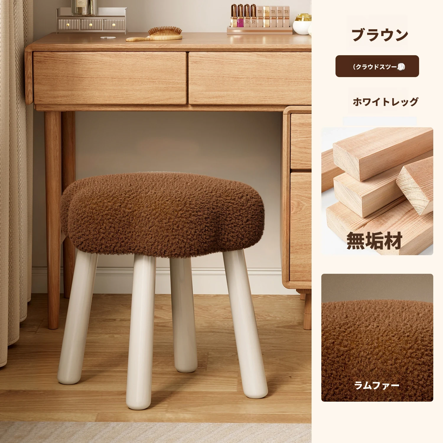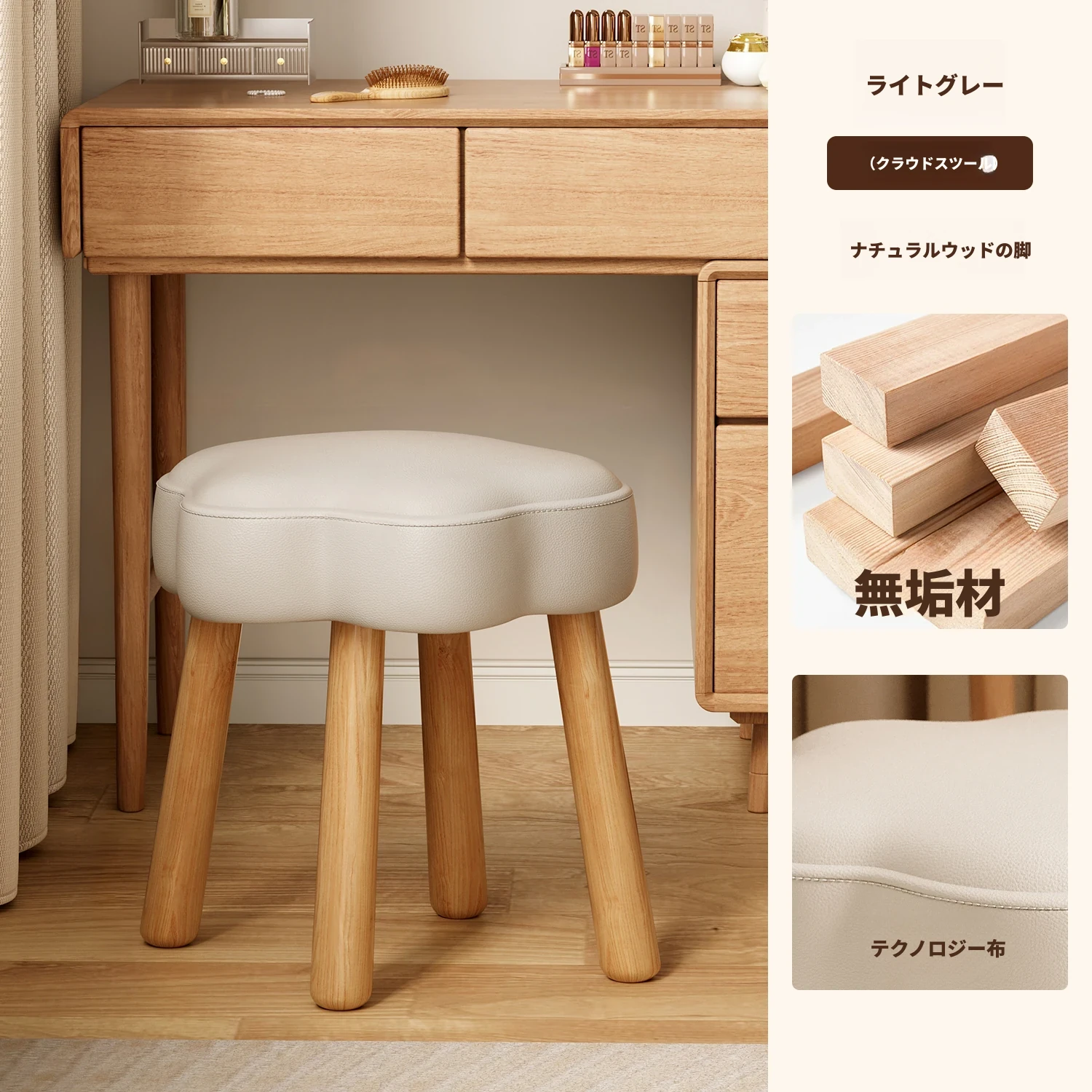 雲朵メイクアップスツール♡クリーム風ドレッサー用スツール♪女性の寝室にぴったりな高級感あるシンプルデザイン✨ネイル専用にも最適な実木製!