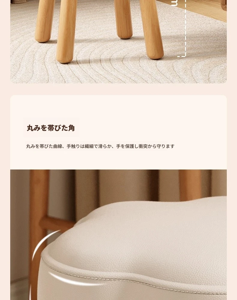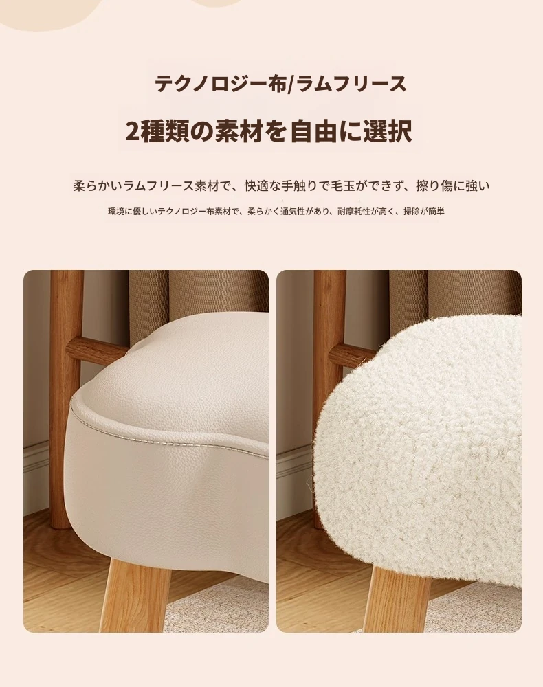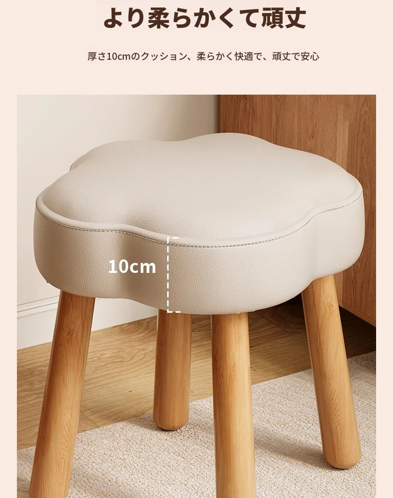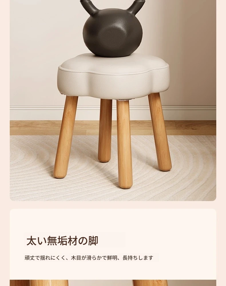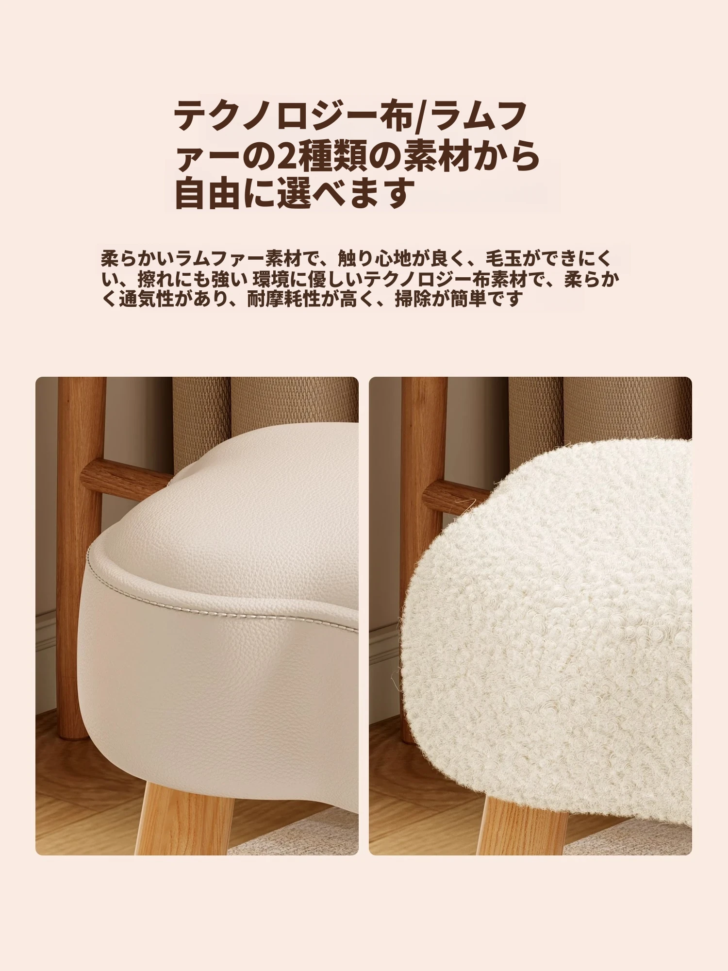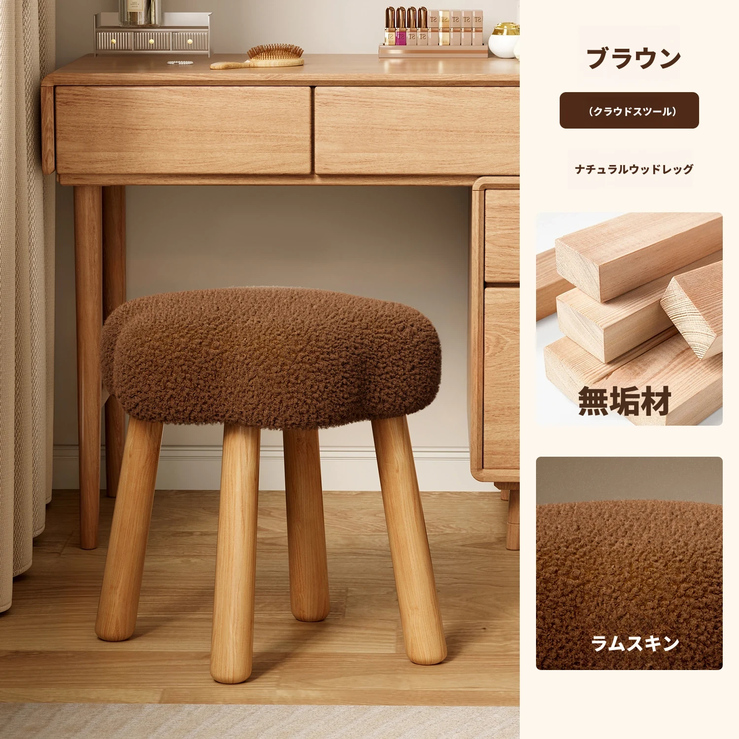 雲朵メイクアップスツール♡クリーム風ドレッサー用スツール♪女性の寝室にぴったりな高級感あるシンプルデザイン✨ネイル専用にも最適な実木製!