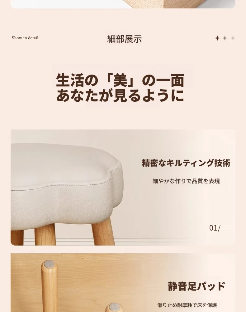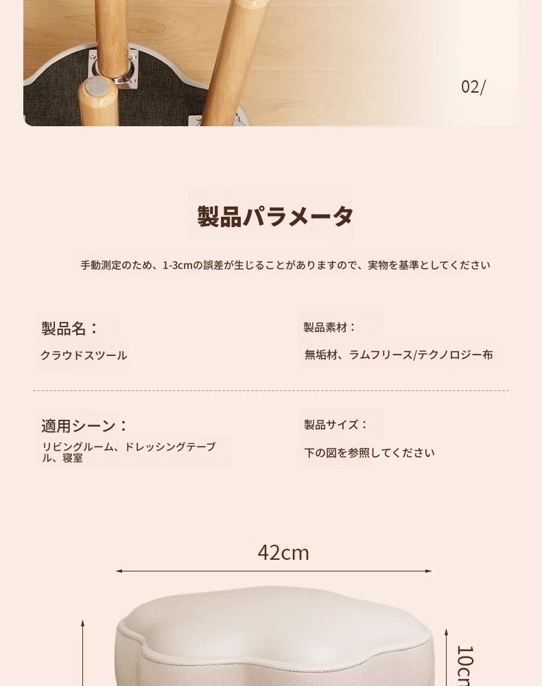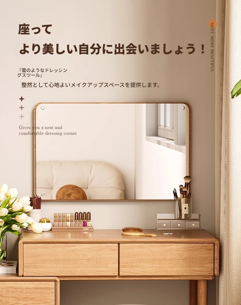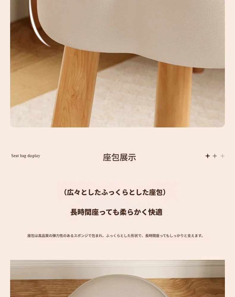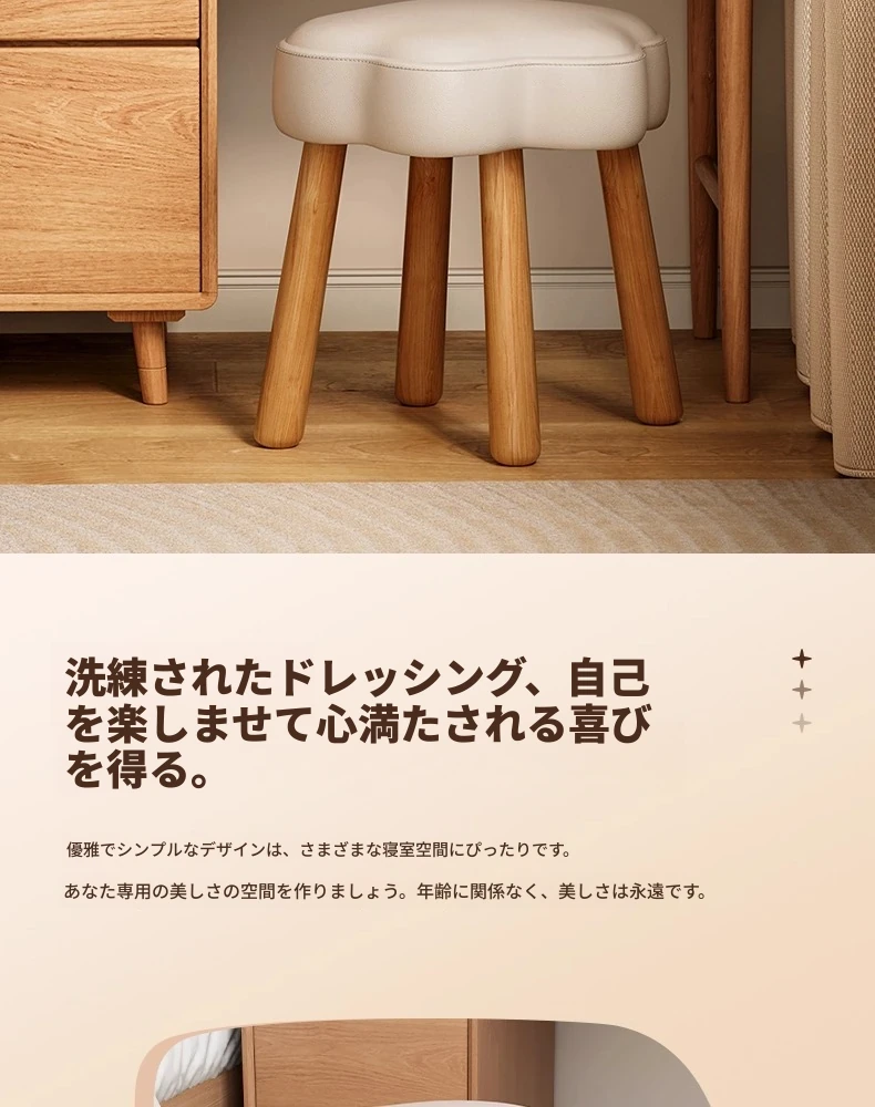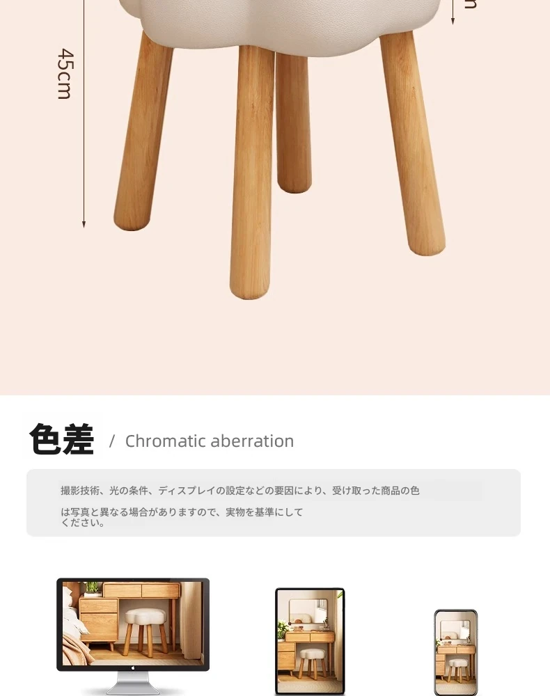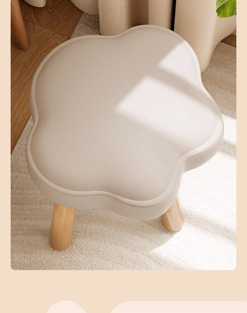 雲朵メイクアップスツール♡クリーム風ドレッサー用スツール♪女性の寝室にぴったりな高級感あるシンプルデザイン✨ネイル専用にも最適な実木製!