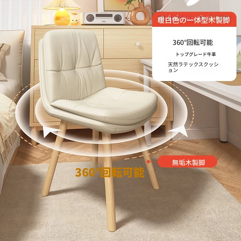 トップレザー 牛革暖白 - 実木脚 - 回転式 - ラテックスクッション
