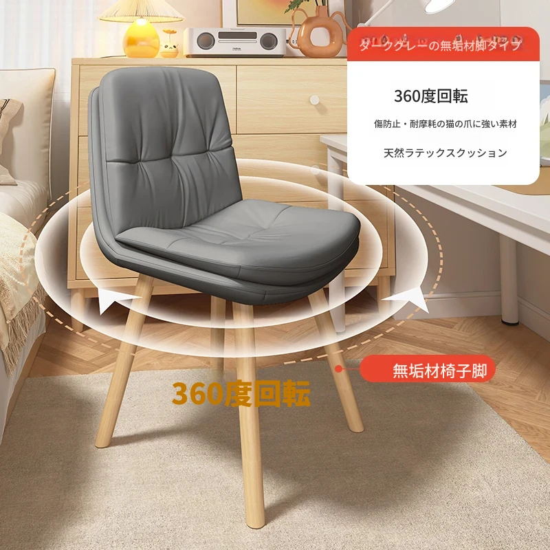 [実木脚 - 回転式] 猫爪皮深灰 | ラテックスクッション