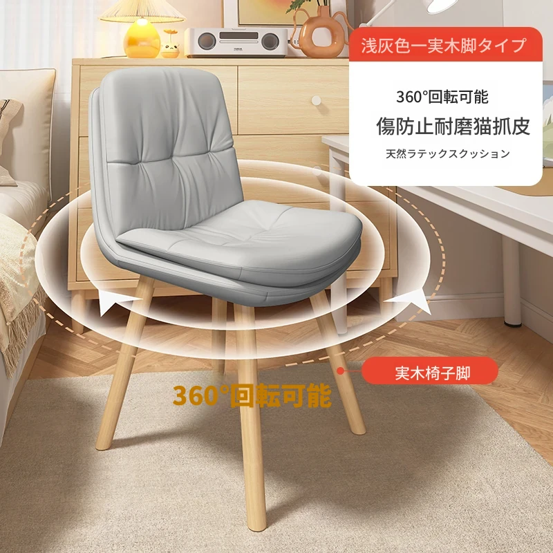 [実木脚 - 回転式] 猫爪皮浅灰 | ラテックスクッション