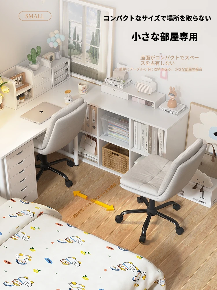 コンパクトなパソコンチェア|家用・長時間座っても快適|メイクアップスツール|背もたれ付きでリラックス|女子のためのドレッサーチェア|学習やデスクワークにも最適な回転椅子。