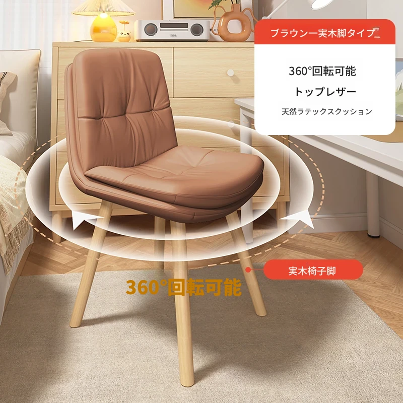 トップレザー 牛革茶色 - 実木脚 - 回転式 - ラテックスクッション