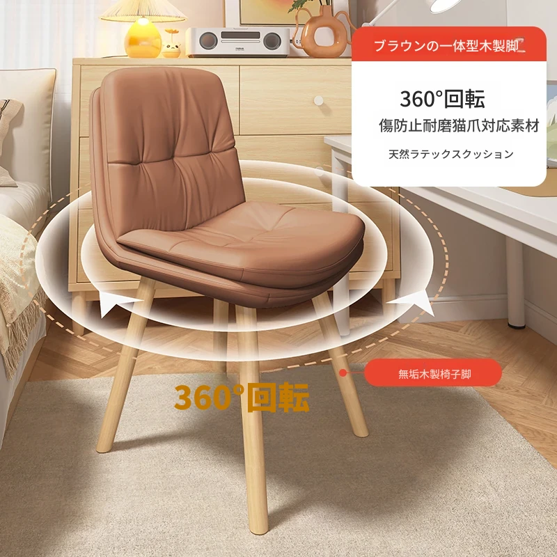 [実木脚 - 回転式] 猫爪皮茶色 | ラテックスクッション