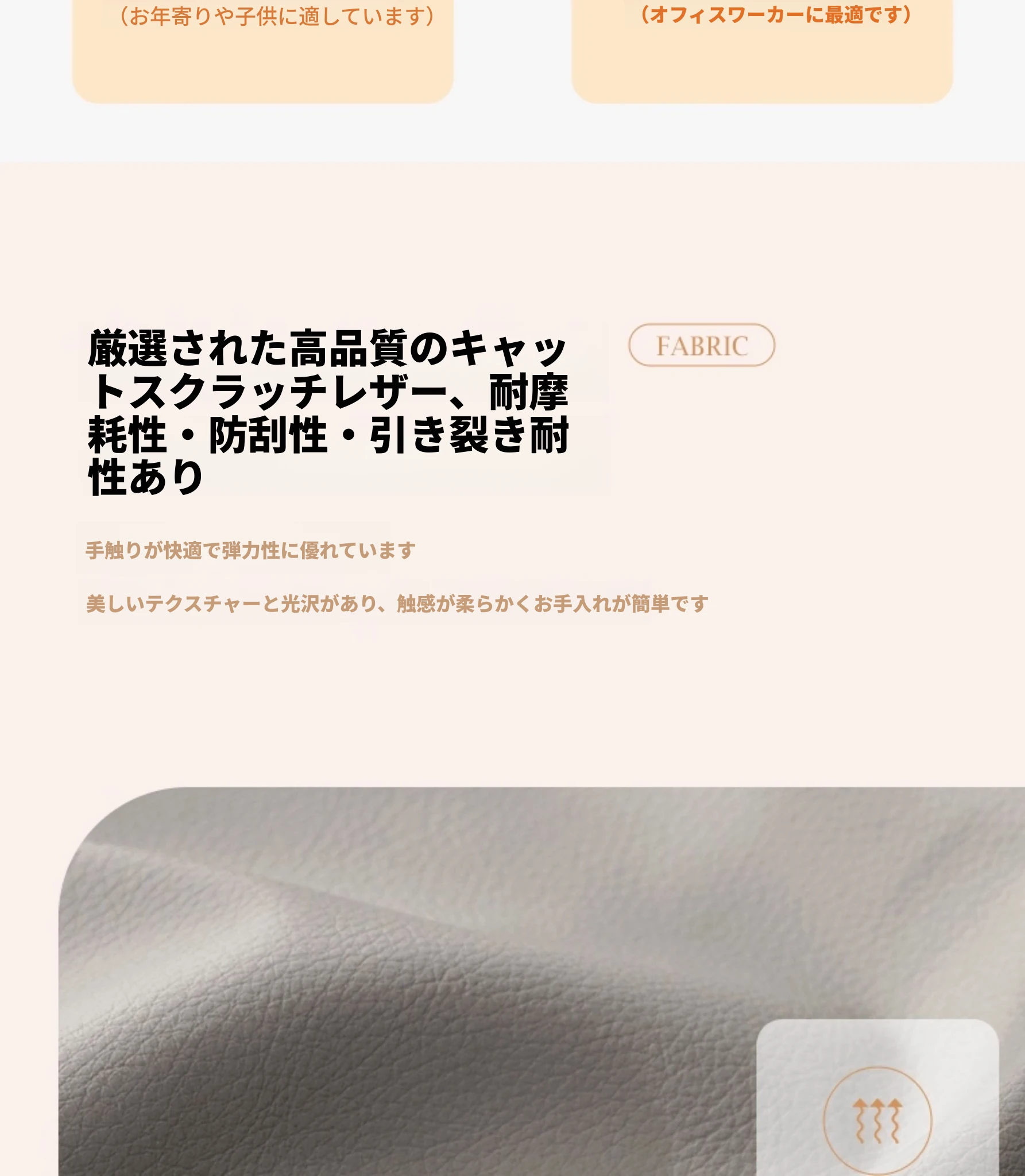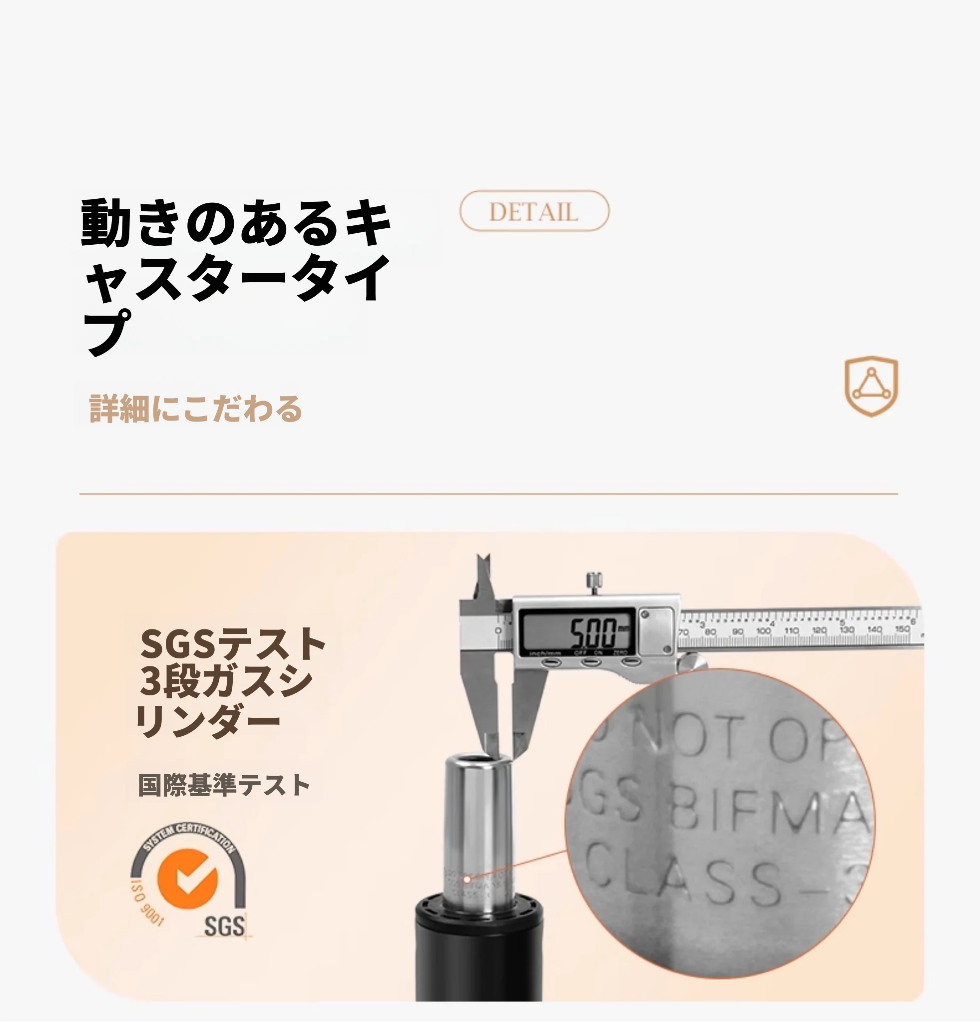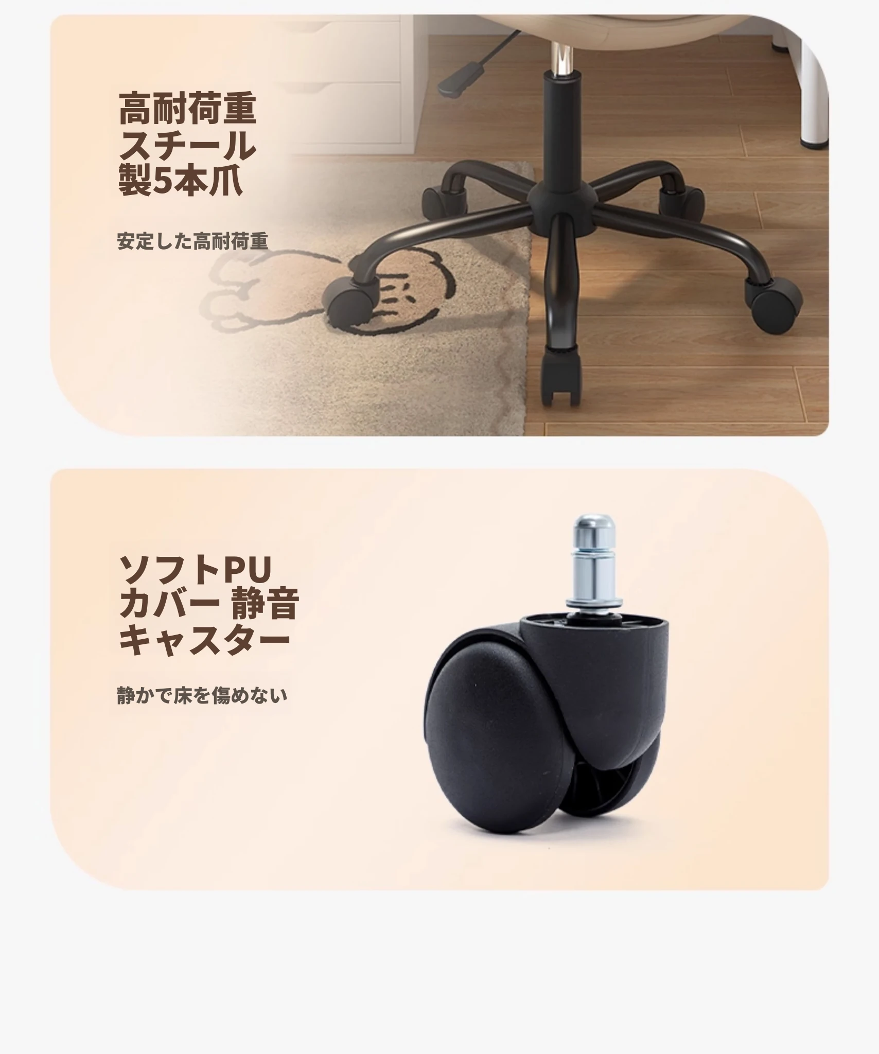 [スチール脚 - キャスター式] 猫爪皮暖白 | ラテックスクッション | 3段防爆ガス棒