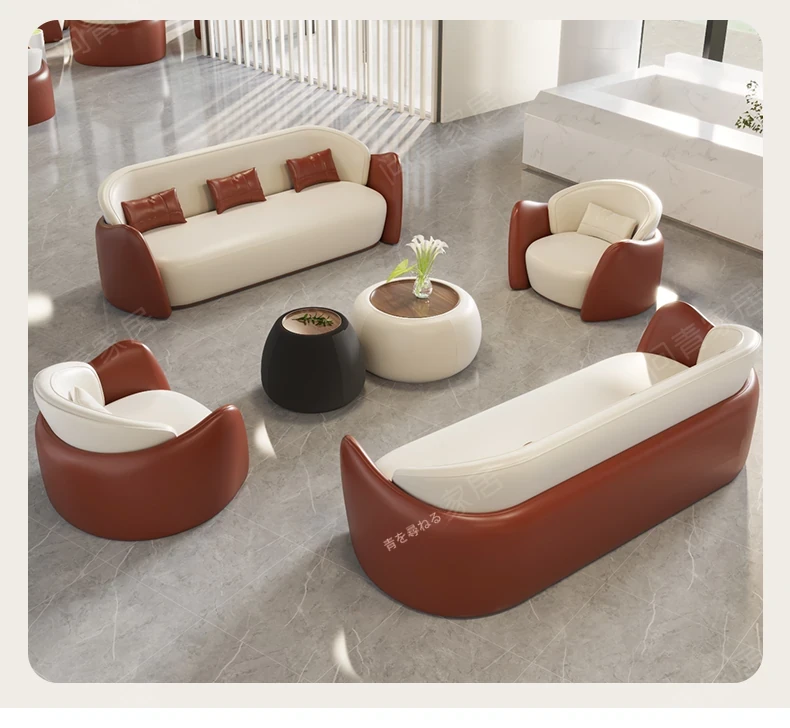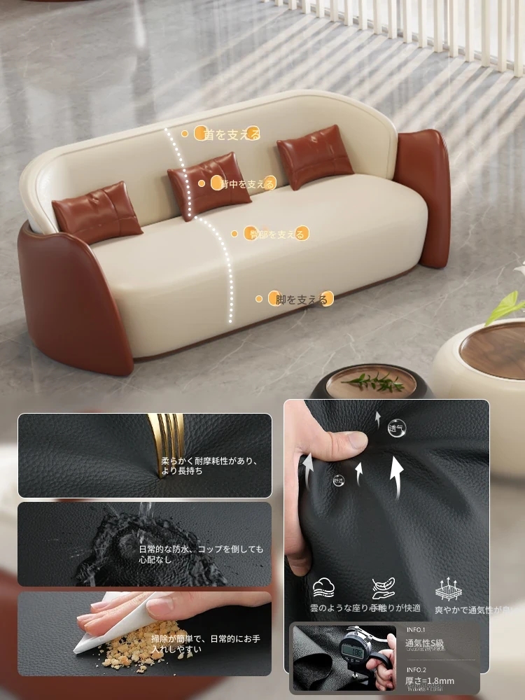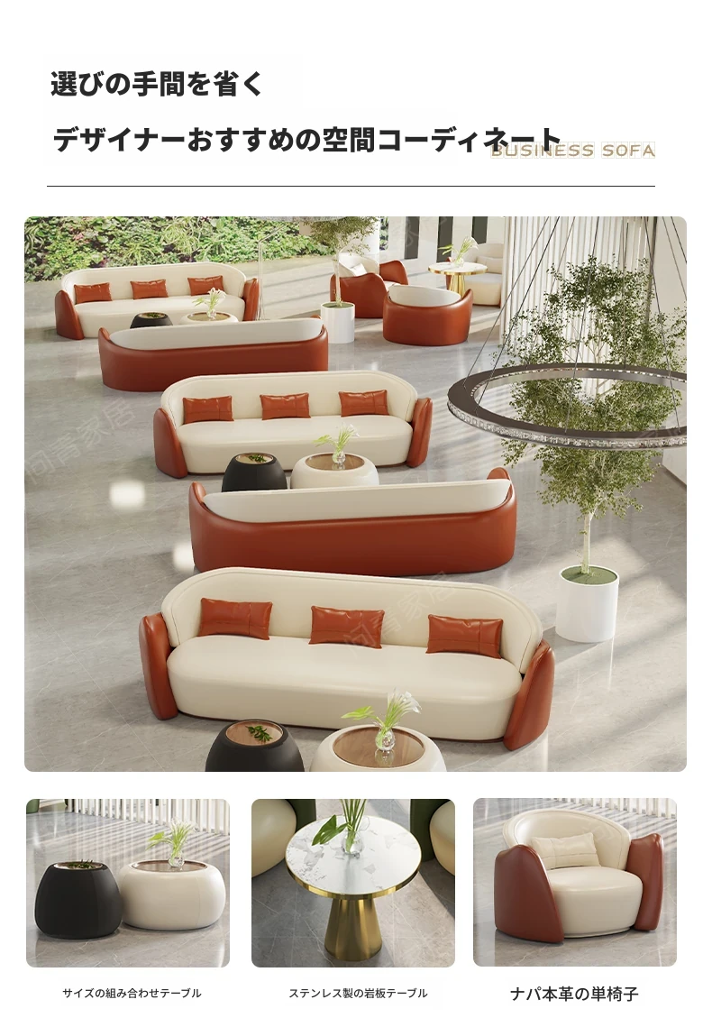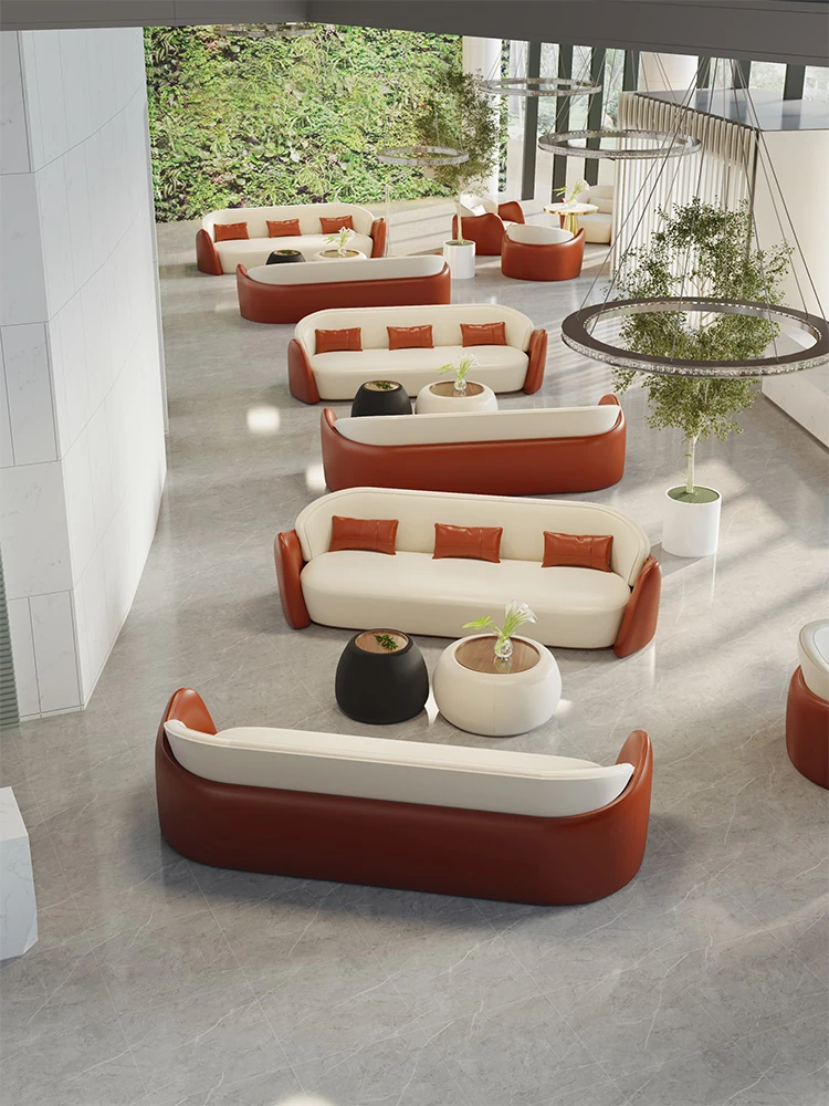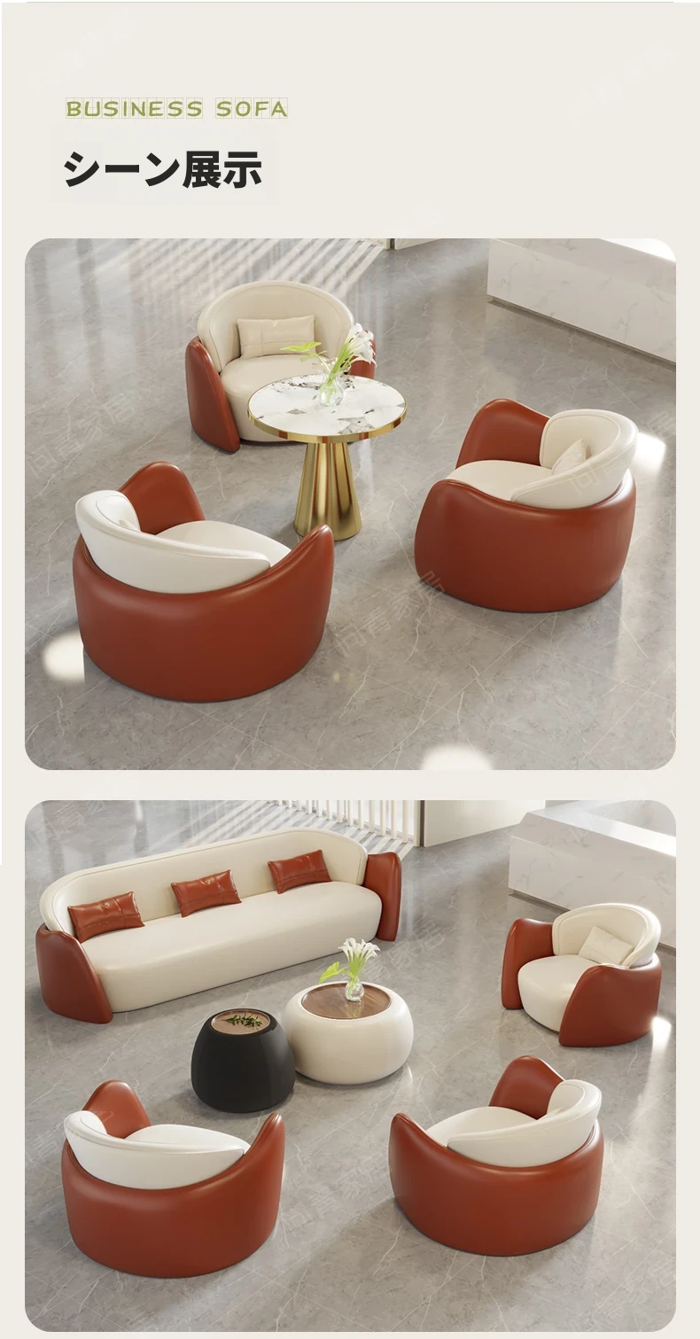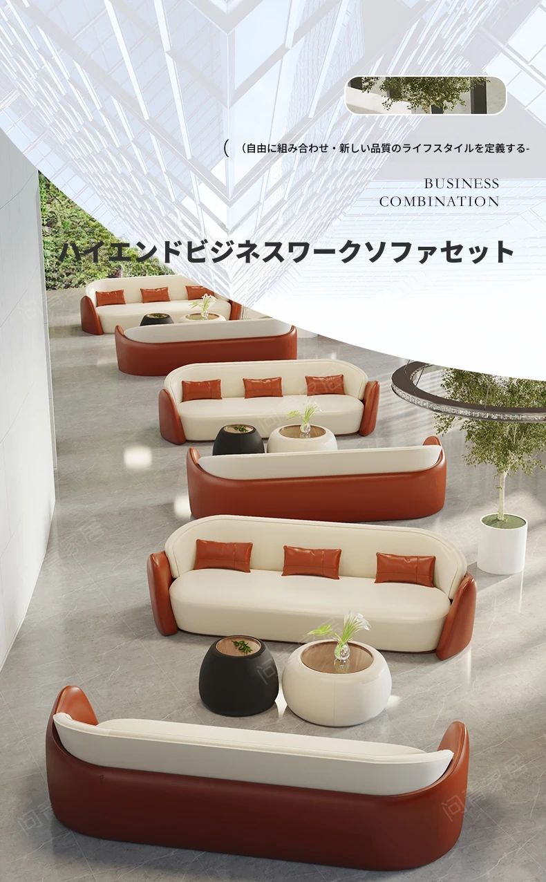 ビジネスミーティングに最適!軽やかなラグジュアリーイタリアンレザーソファ - 大堂やリビングにぴったりの直列デザイン。民宿やホテルの接客にも最適!おしゃれで快適な空間を演出します。