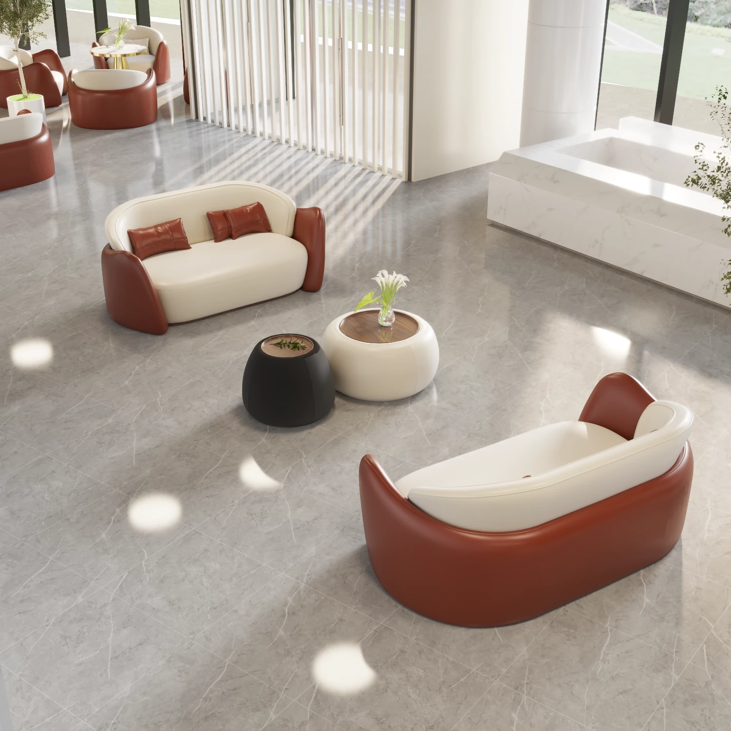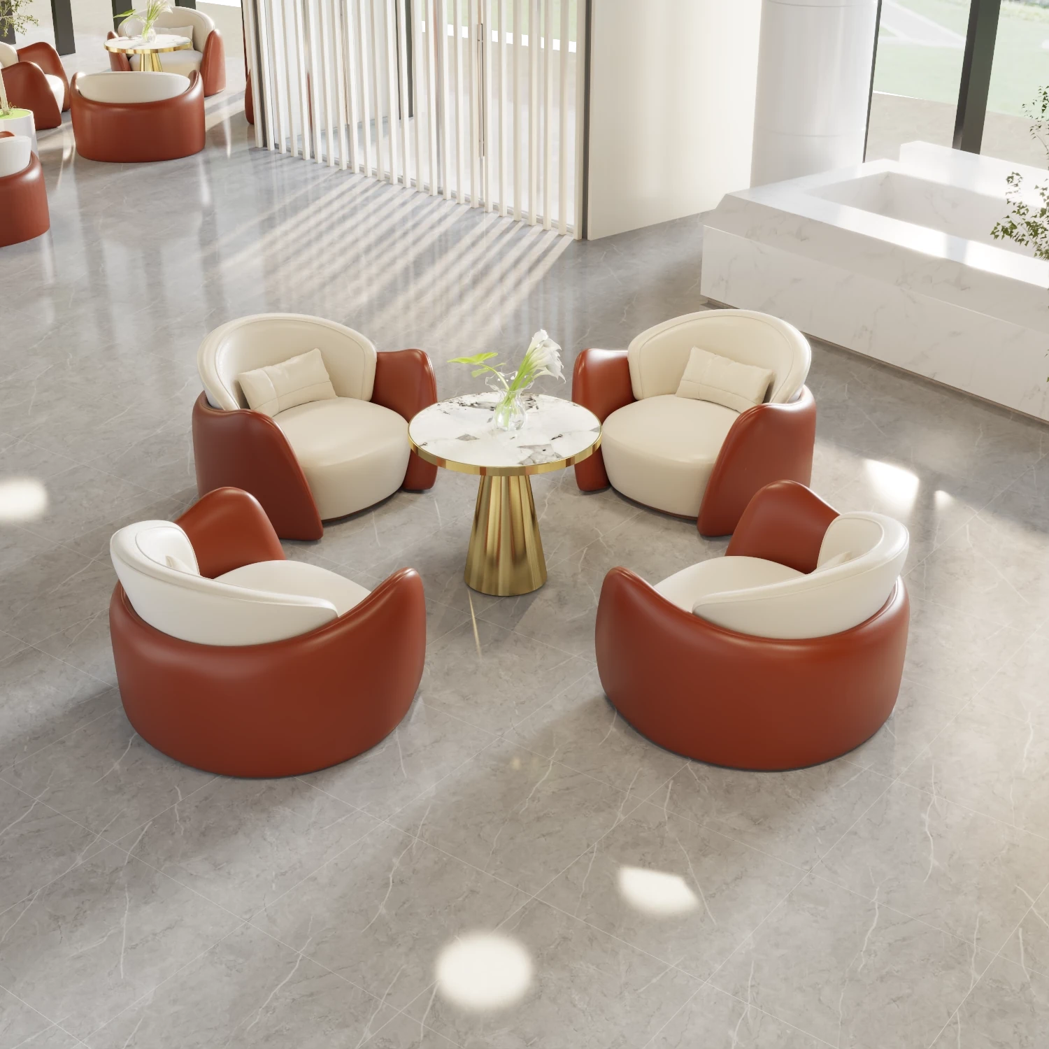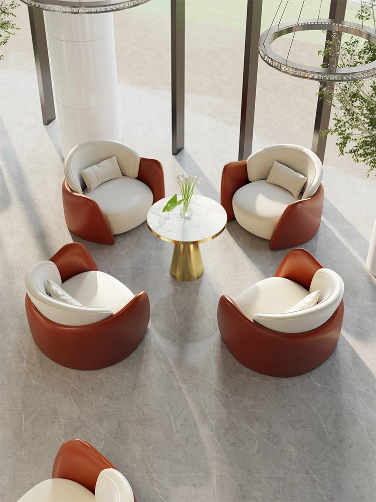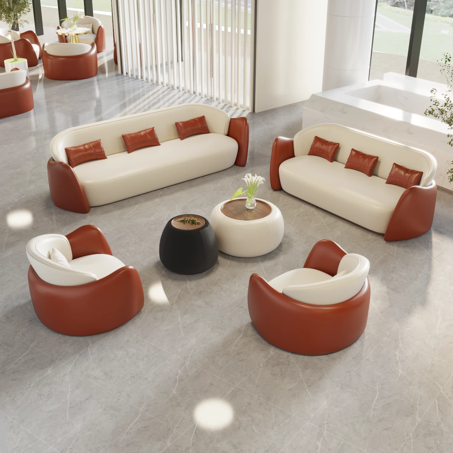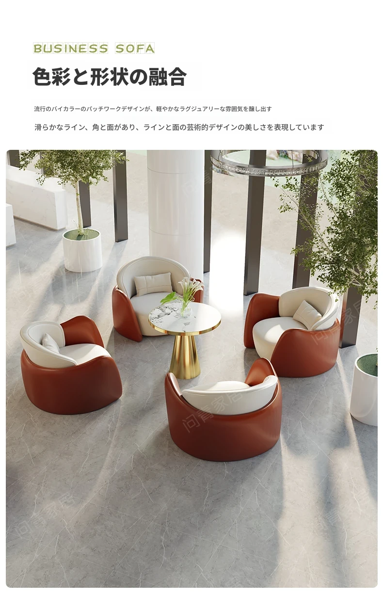 ビジネスミーティングに最適!軽やかなラグジュアリーイタリアンレザーソファ - 大堂やリビングにぴったりの直列デザイン。民宿やホテルの接客にも最適!おしゃれで快適な空間を演出します。