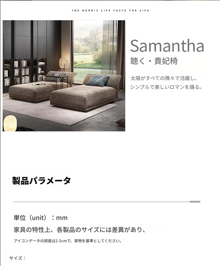 優雅な貴妃ソファ|リビングにぴったりな美しさと快適さを兼ね備えた布製|イタリアンモダンな軽洗練スタイル|一人用ベッドとしても使える小型ベランダラウンジチェア