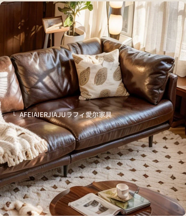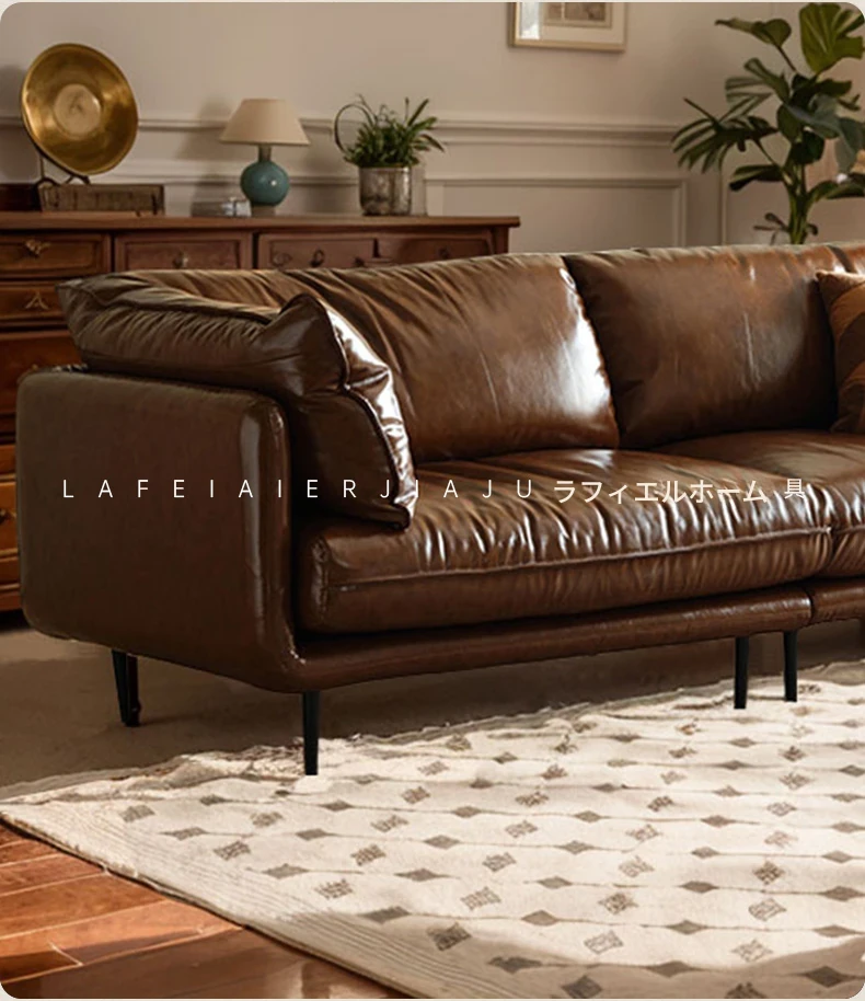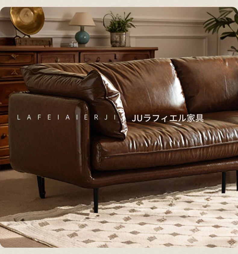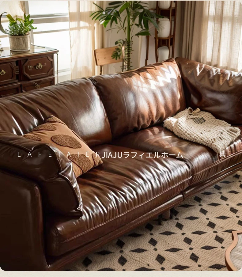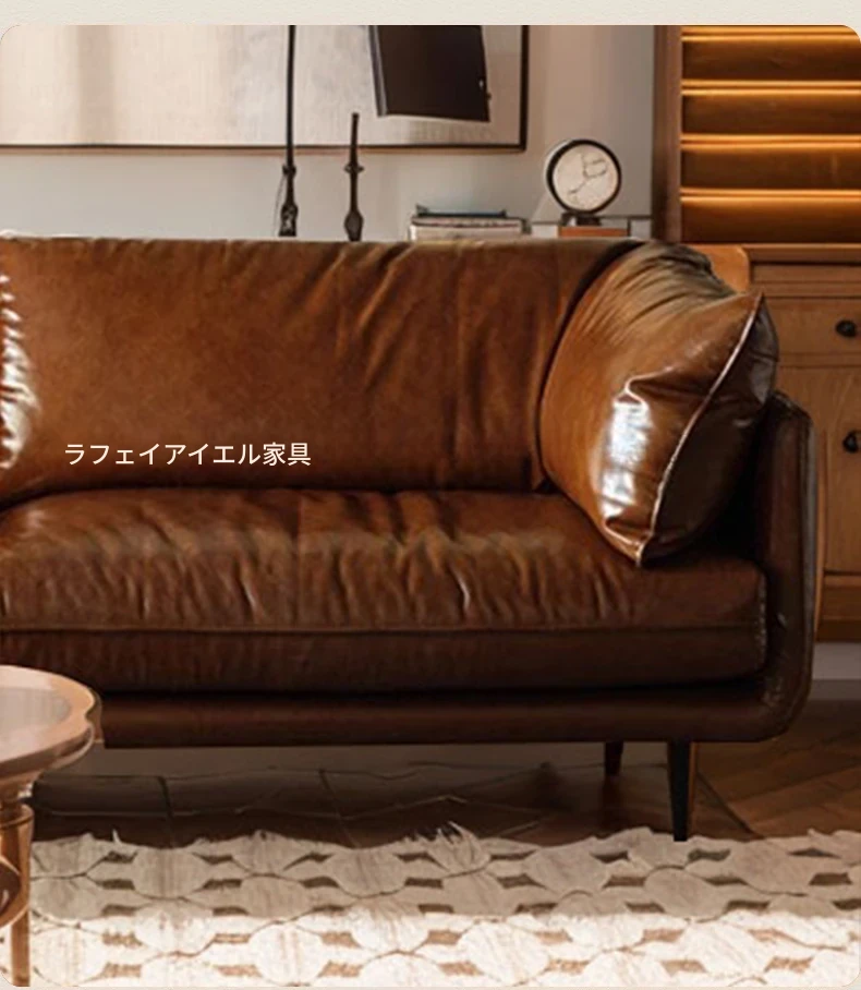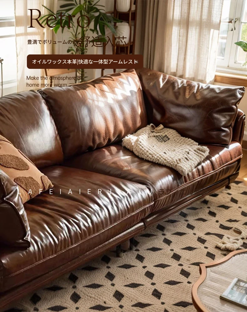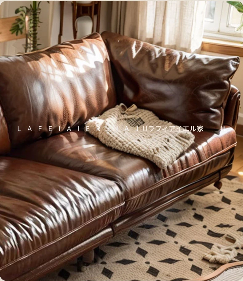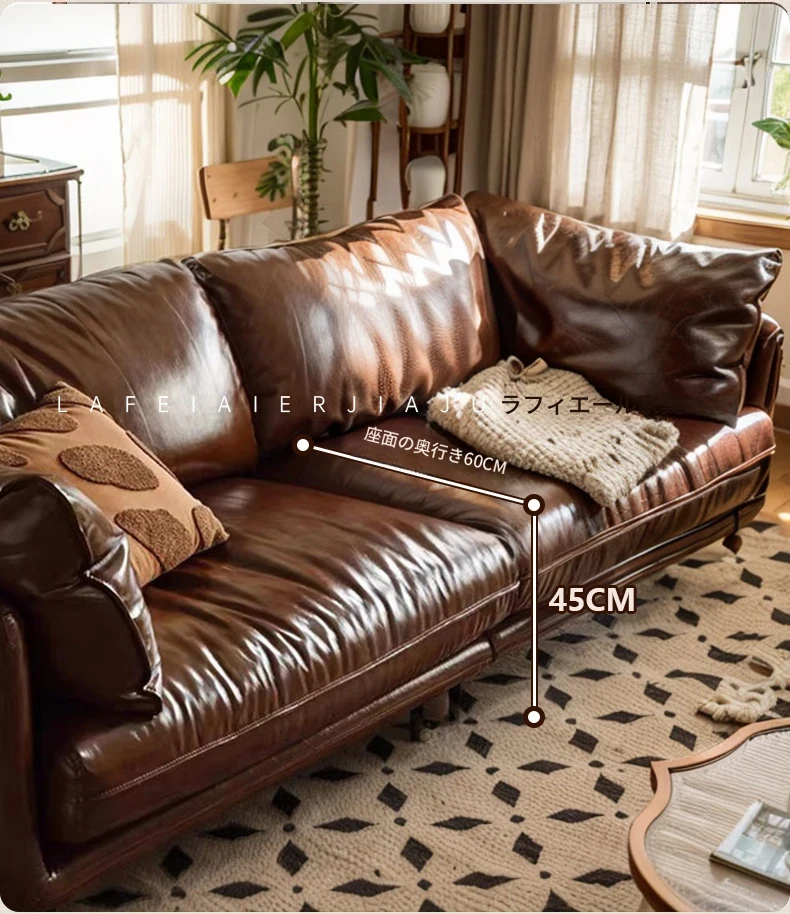 Hug抱きしめソファ2025年新作!ヴィンテージ風のダウン入り小型オイルワックスレザーソファ。フランスのレトロスタイルで、居心地抜群のリビング空間を演出します!