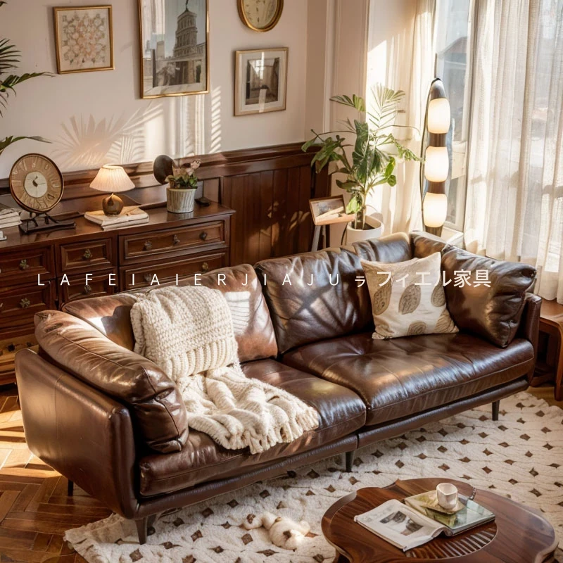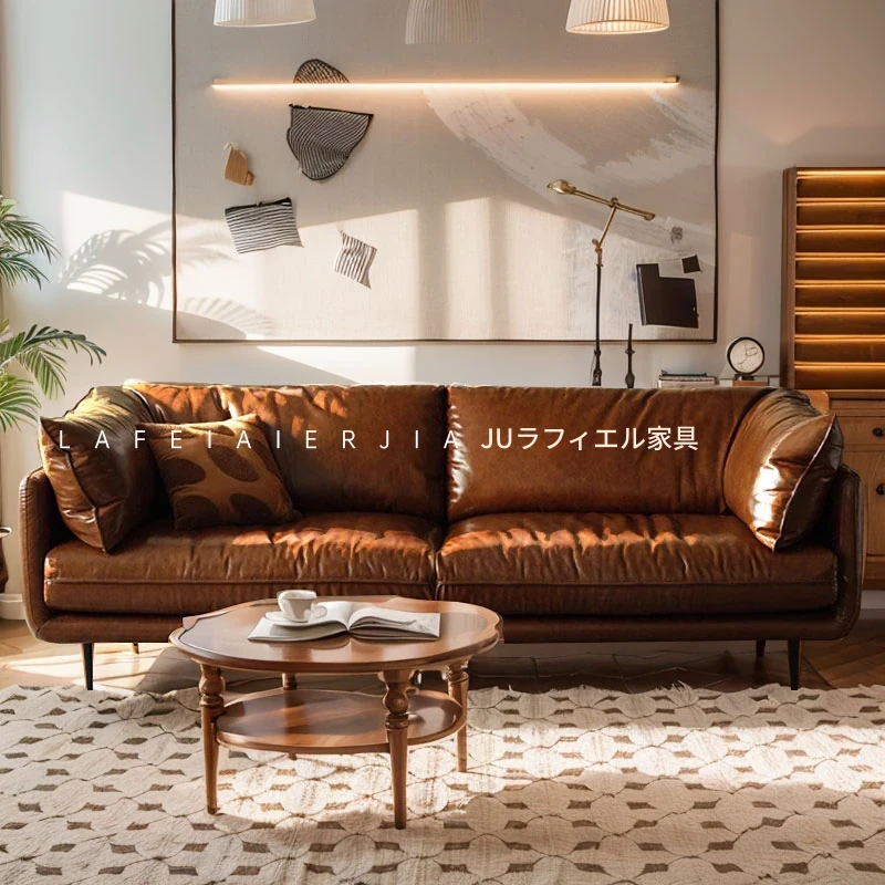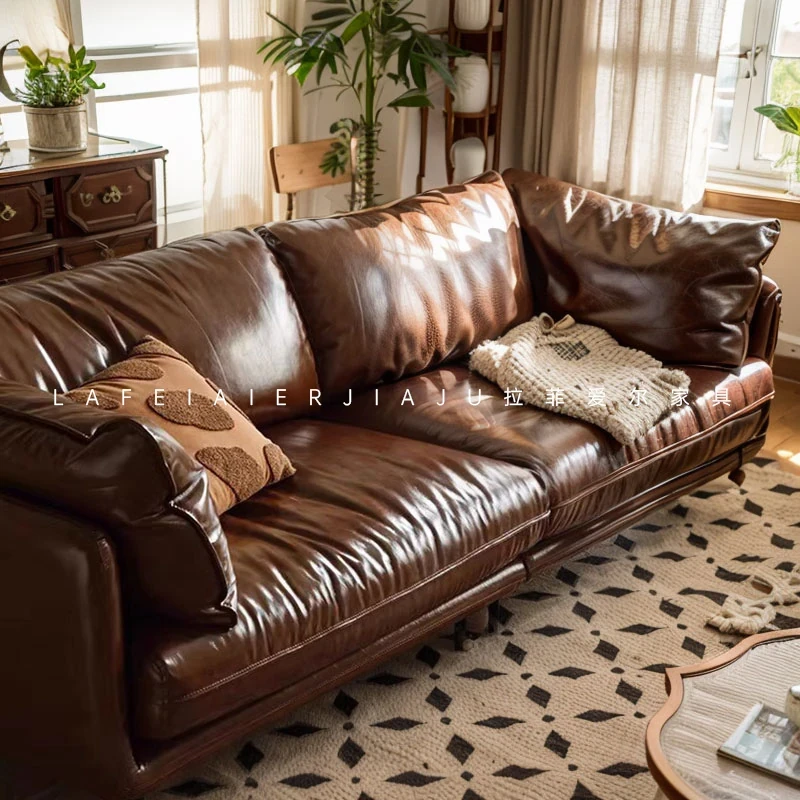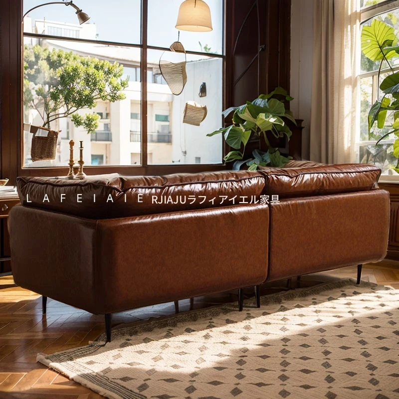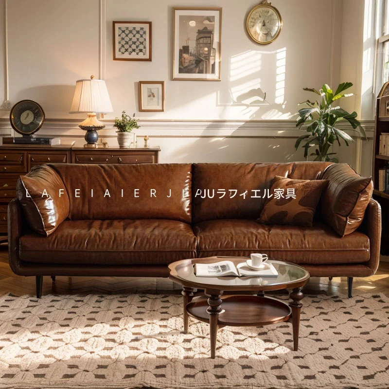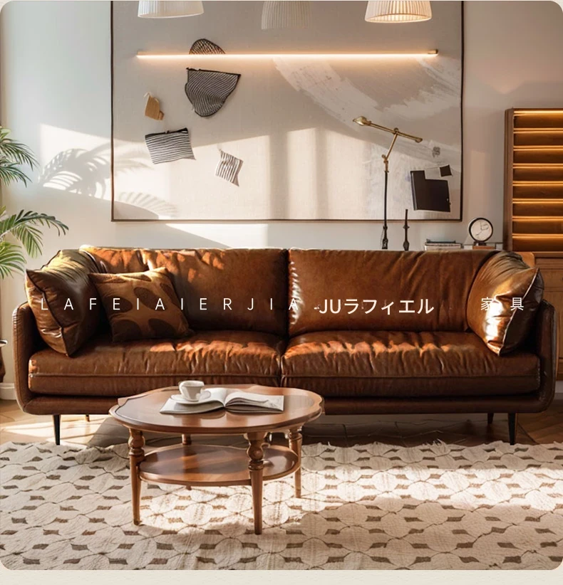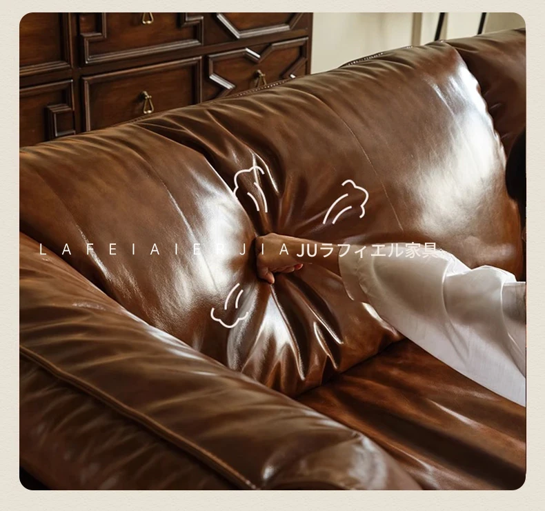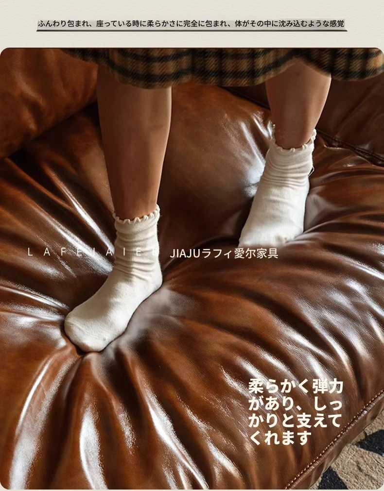 Hug抱きしめソファ2025年新作!ヴィンテージ風のダウン入り小型オイルワックスレザーソファ。フランスのレトロスタイルで、居心地抜群のリビング空間を演出します!