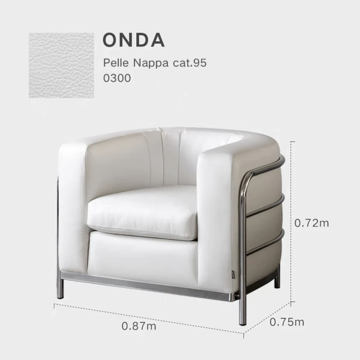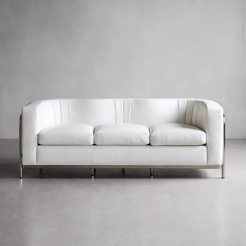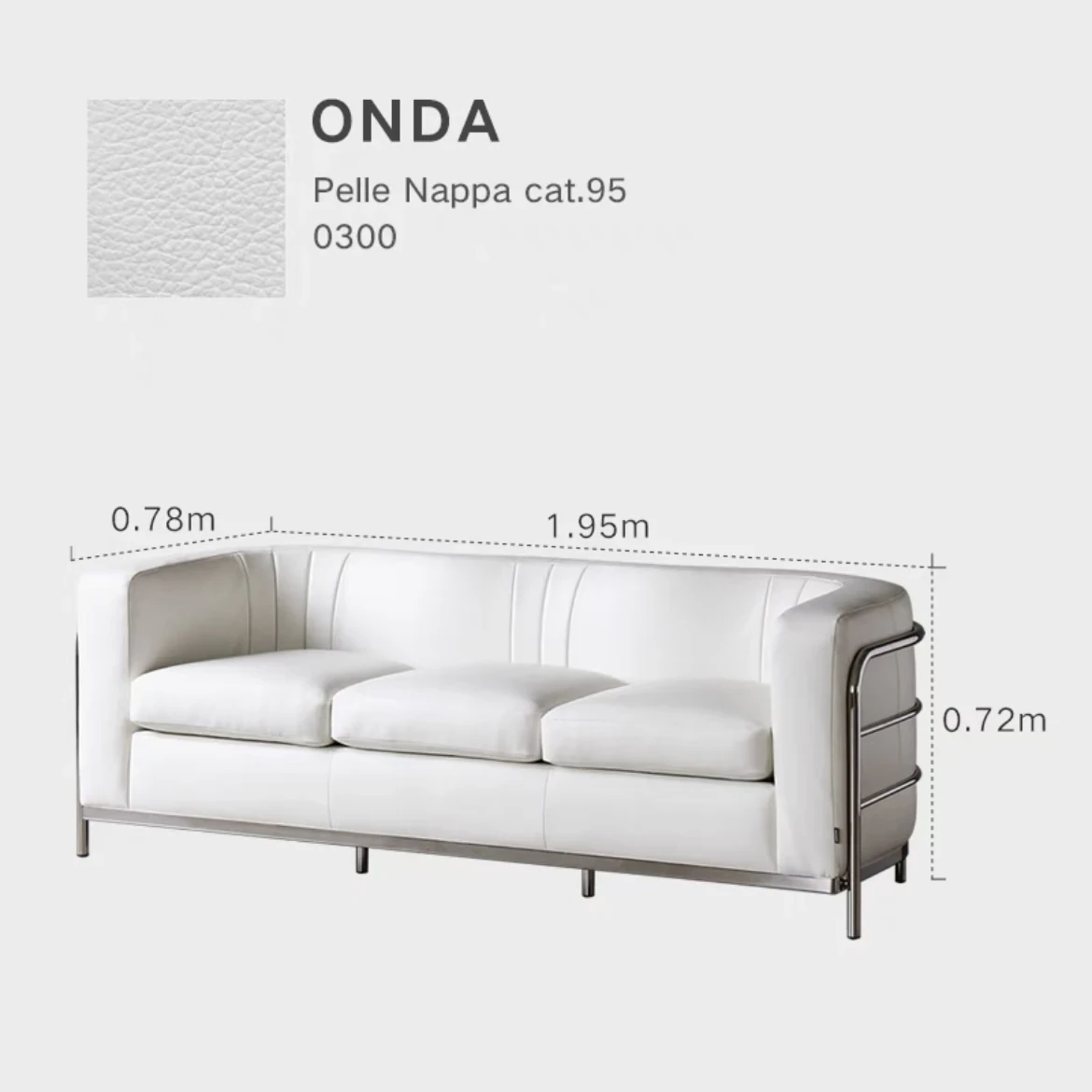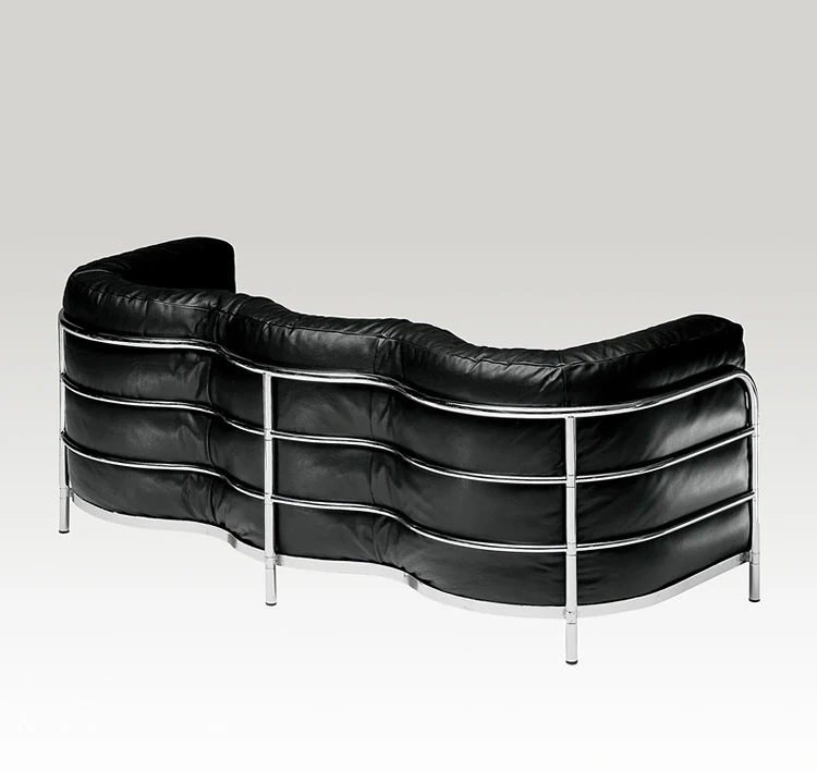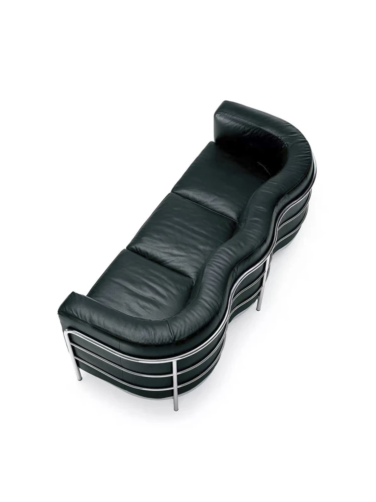 イタリアンスタイルのS字型本革ソファ、コンパクトなリビングにピッタリ!洗練されたデザインの3人掛け、軽やかなラグジュアリー感を演出。ホテルや商業施設にも最適なクリエイティブな一品。