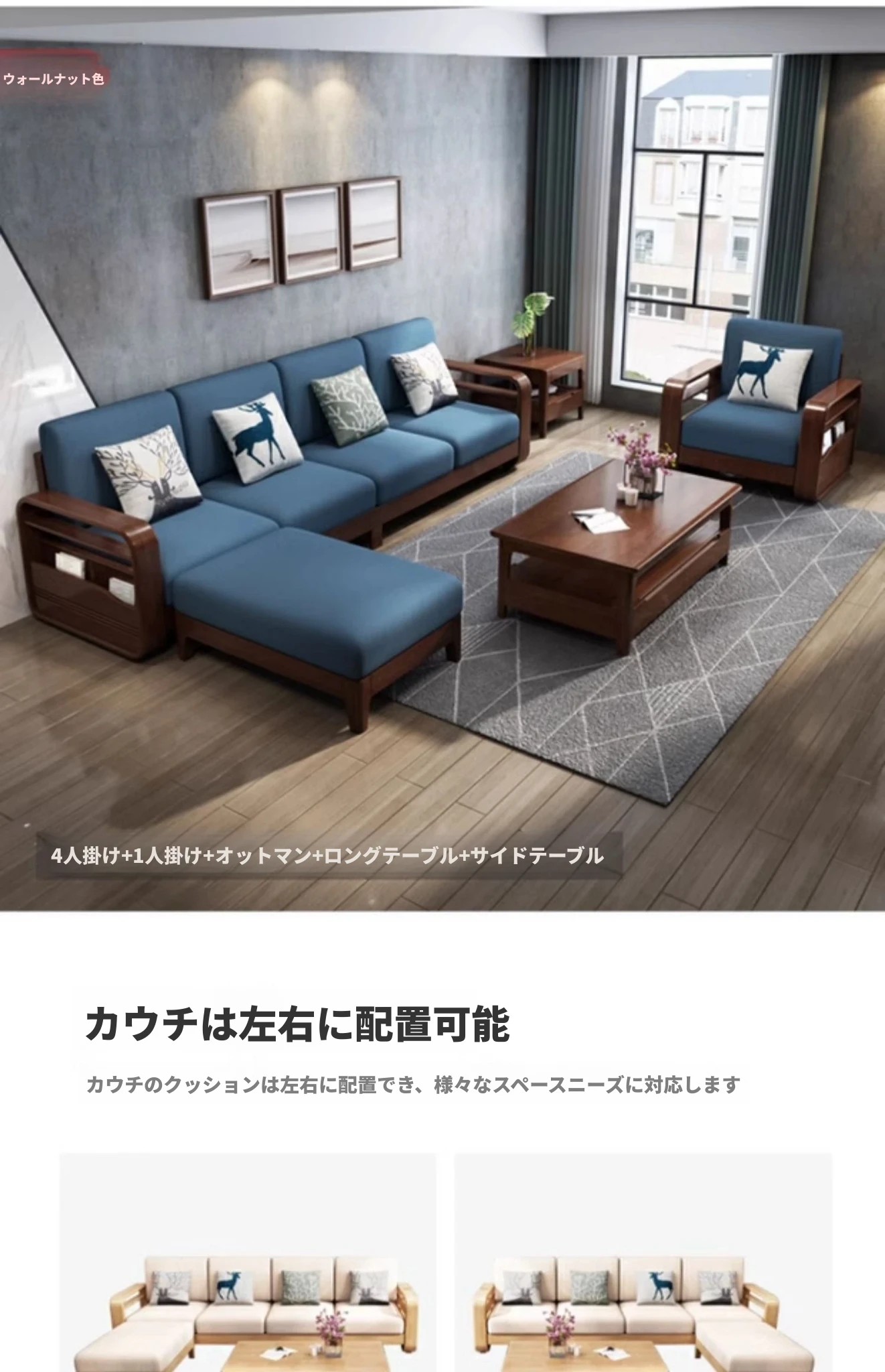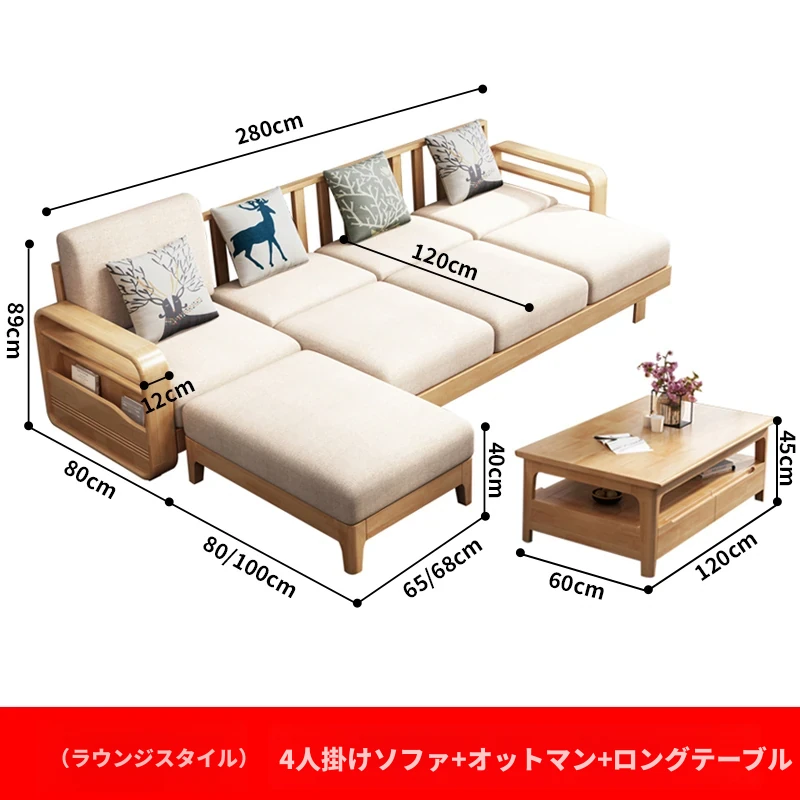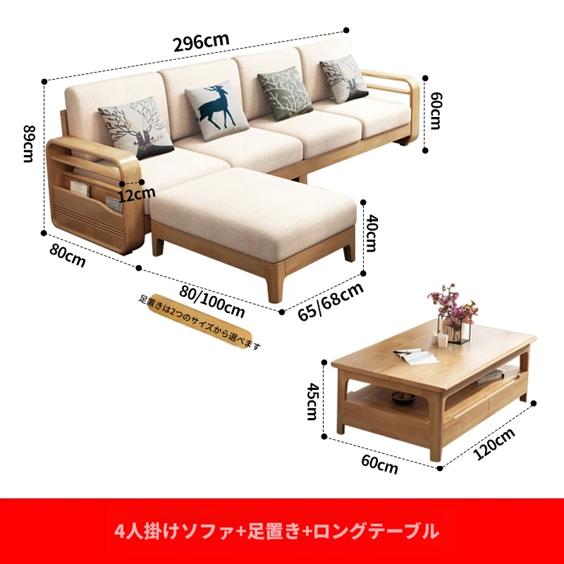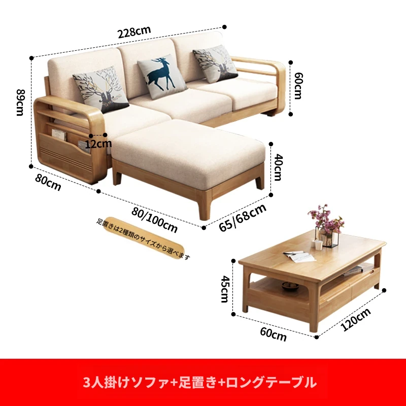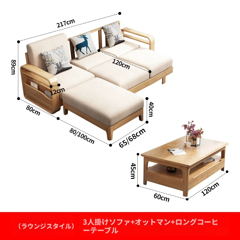 (引き出しタイプ)三人掛け+オットマン+ロングテーブル