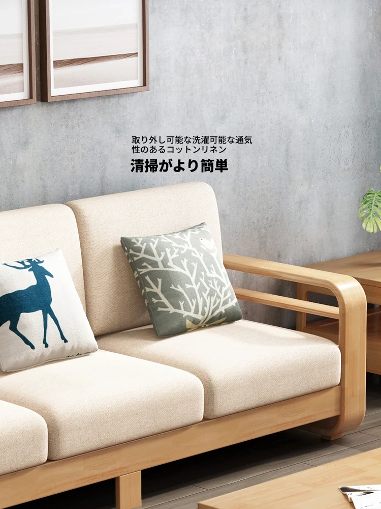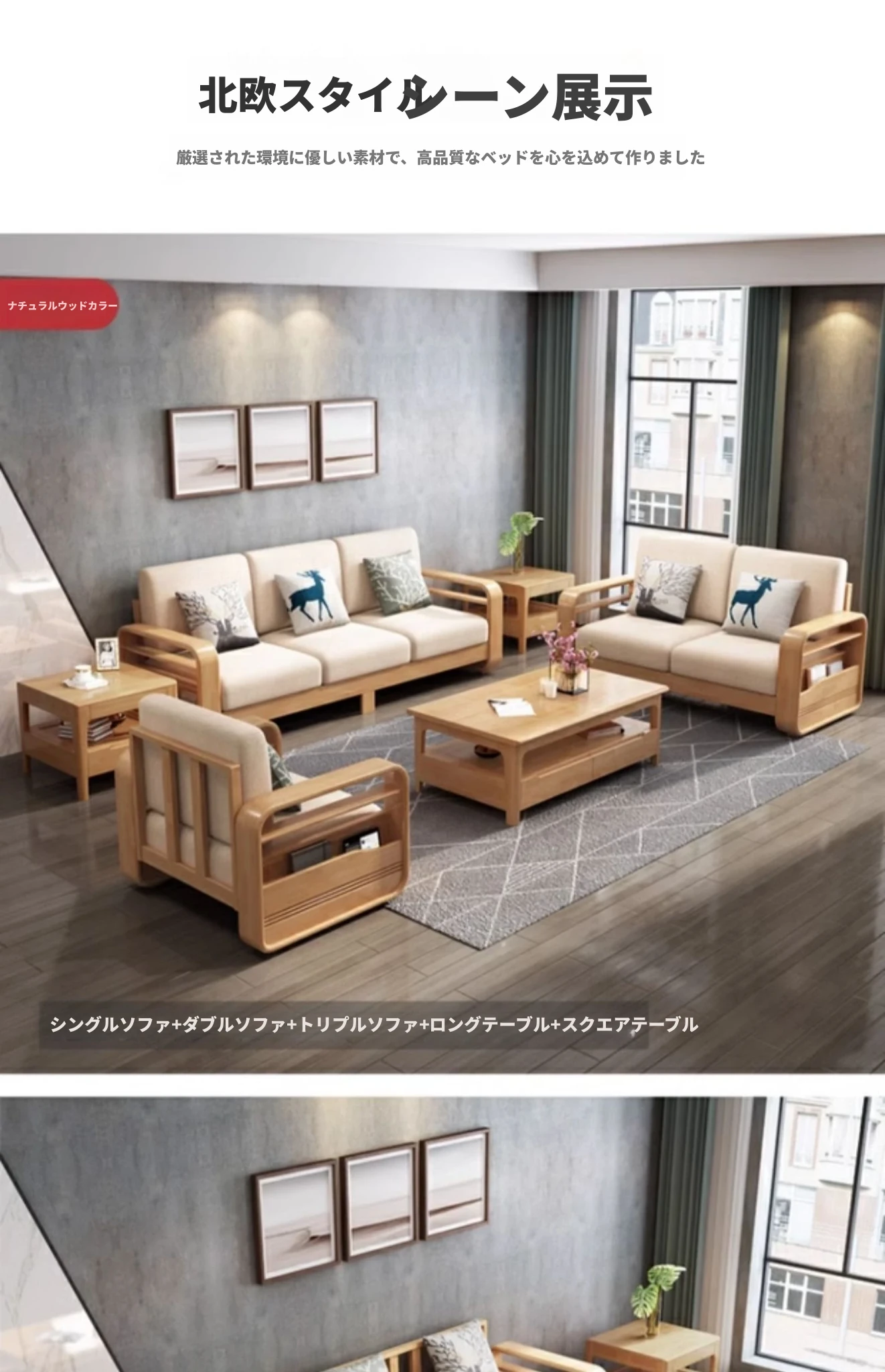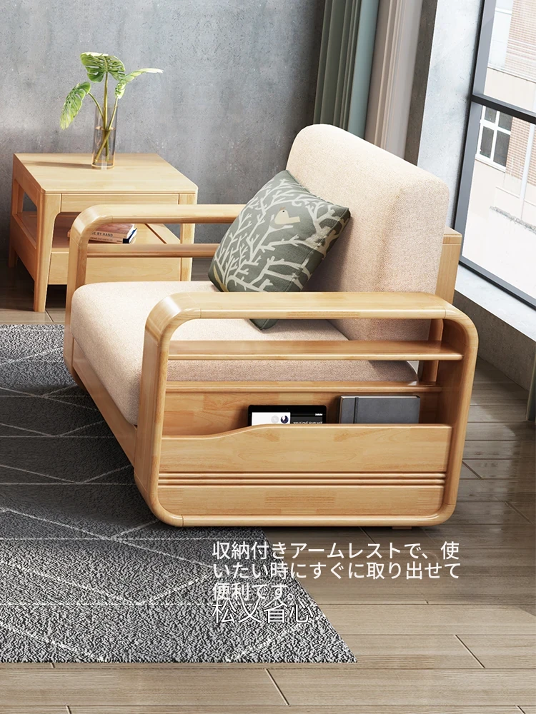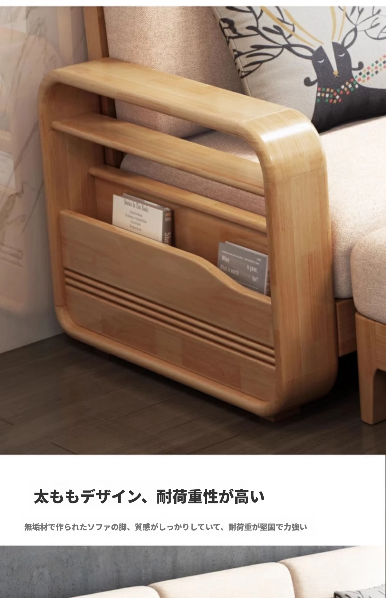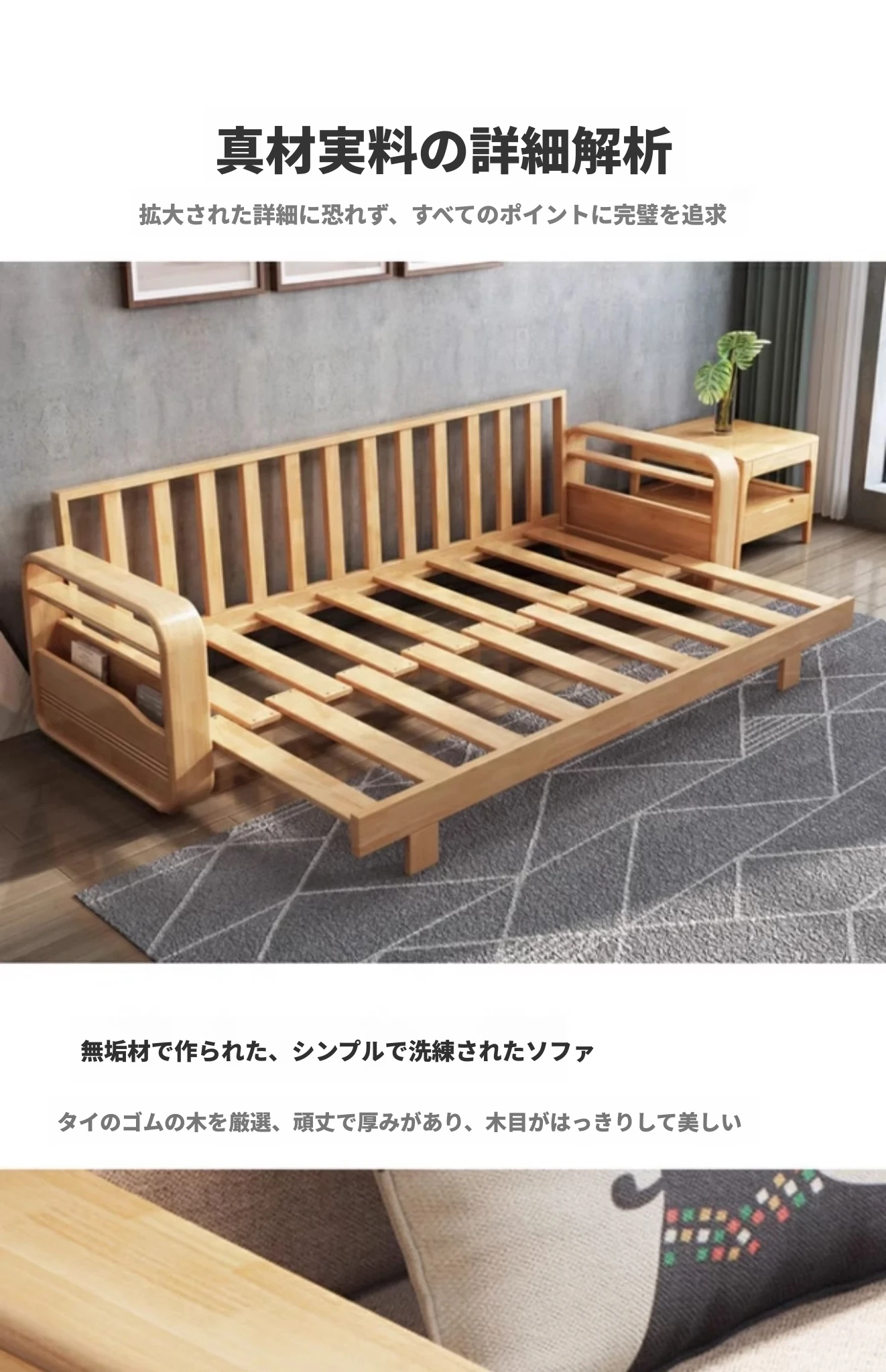 北欧スタイルの無垢材ソファ - シンプルでモダンなデザイン、リビングにぴったりな貴婦人ソファ。コンパクトな角型ソファベッド、小さなスペースでも大活躍!快適さとスタイルを両立した理想の一品です。