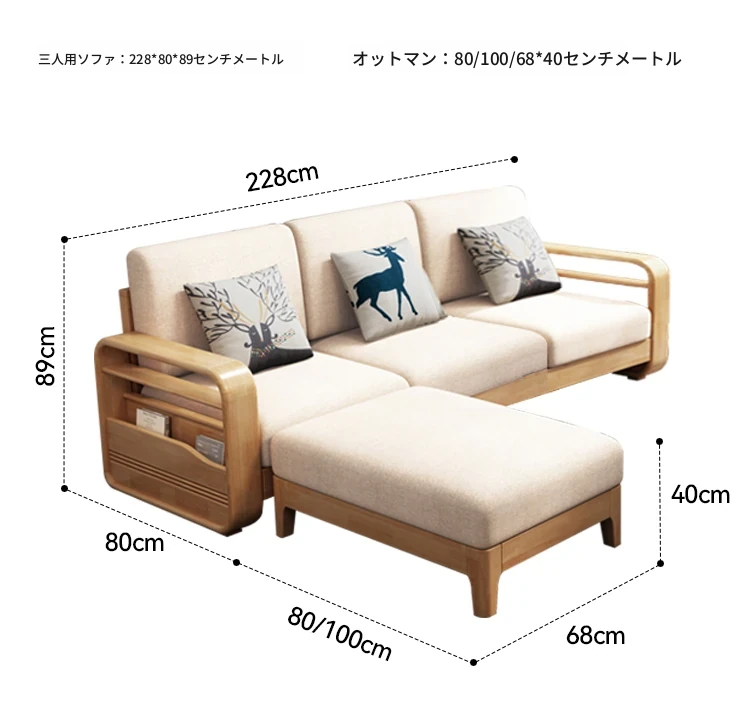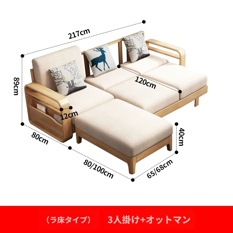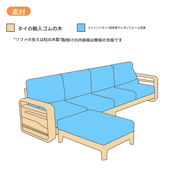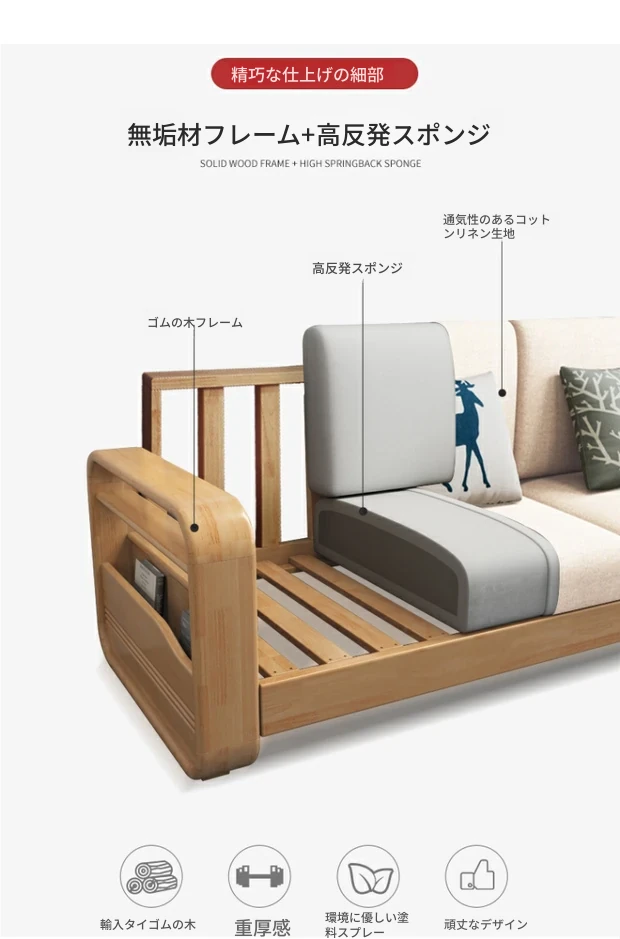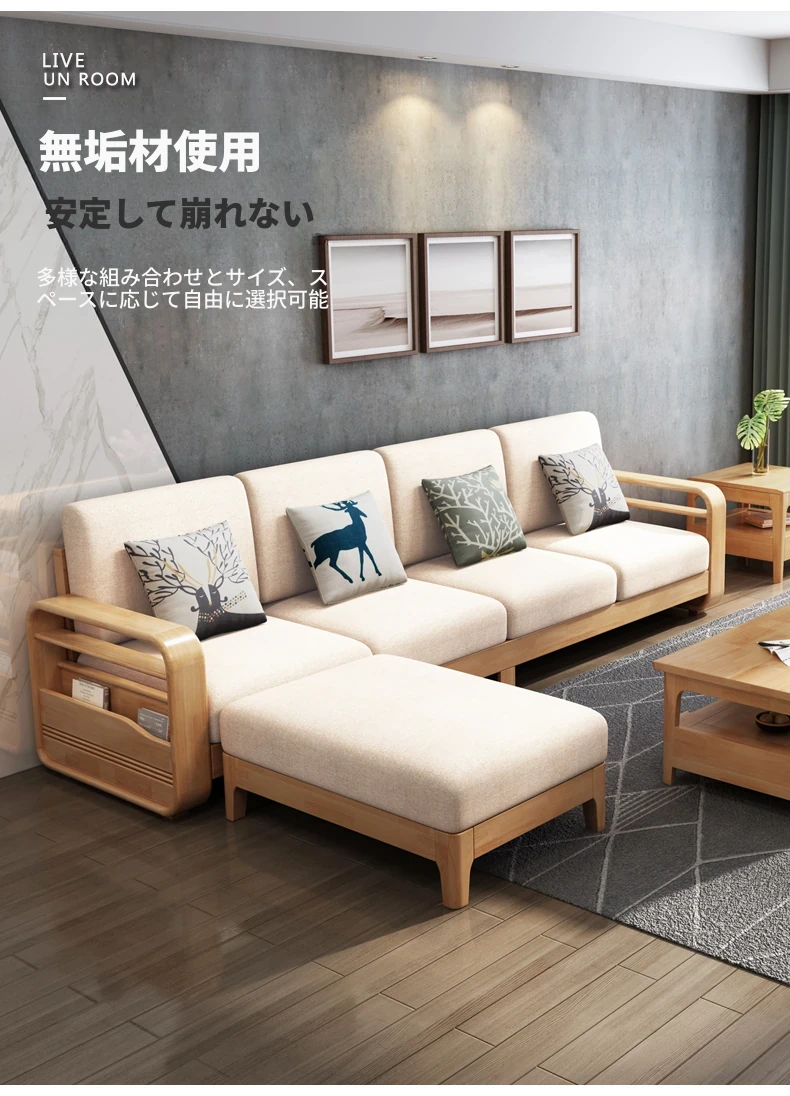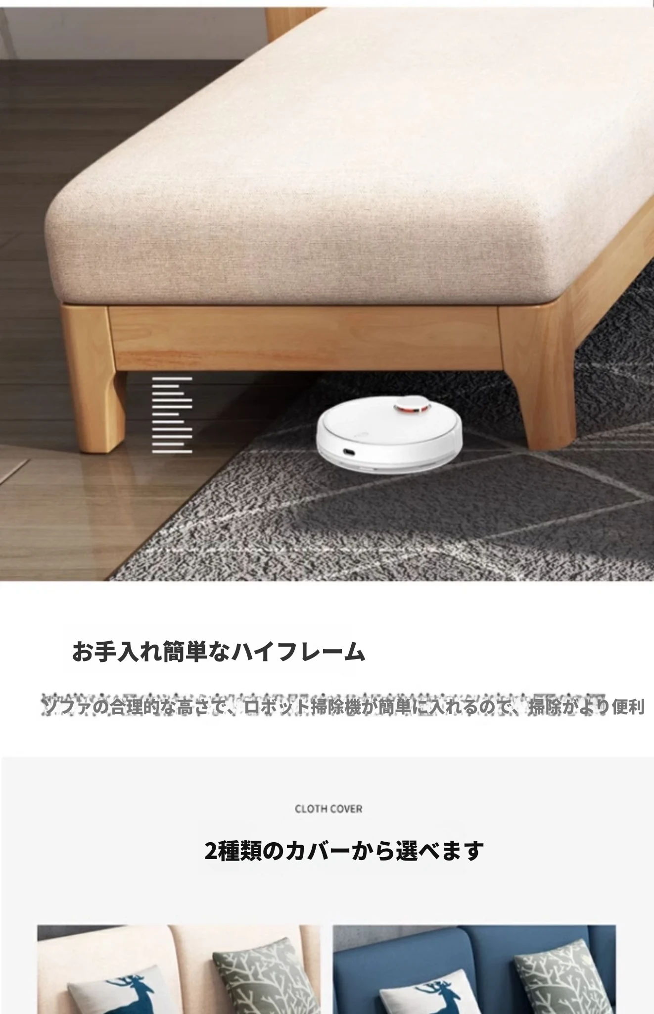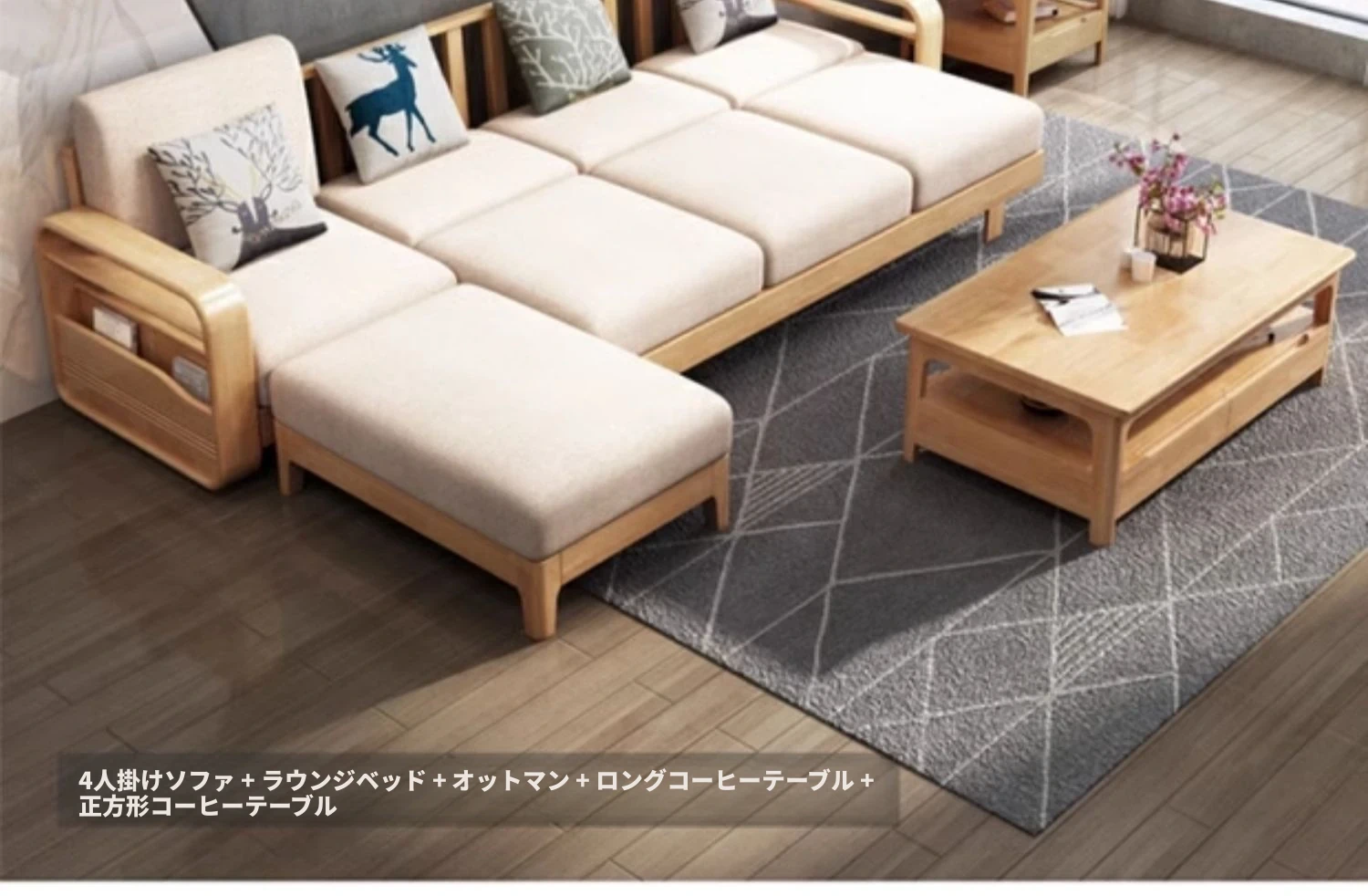 北欧スタイルの無垢材ソファ - シンプルでモダンなデザイン、リビングにぴったりな貴婦人ソファ。コンパクトな角型ソファベッド、小さなスペースでも大活躍!快適さとスタイルを両立した理想の一品です。