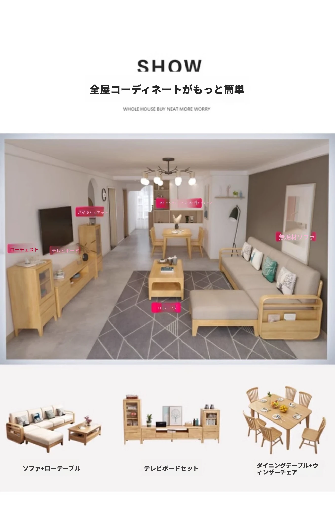 1+2+3ソファ+ロングテーブル+サイドテーブル