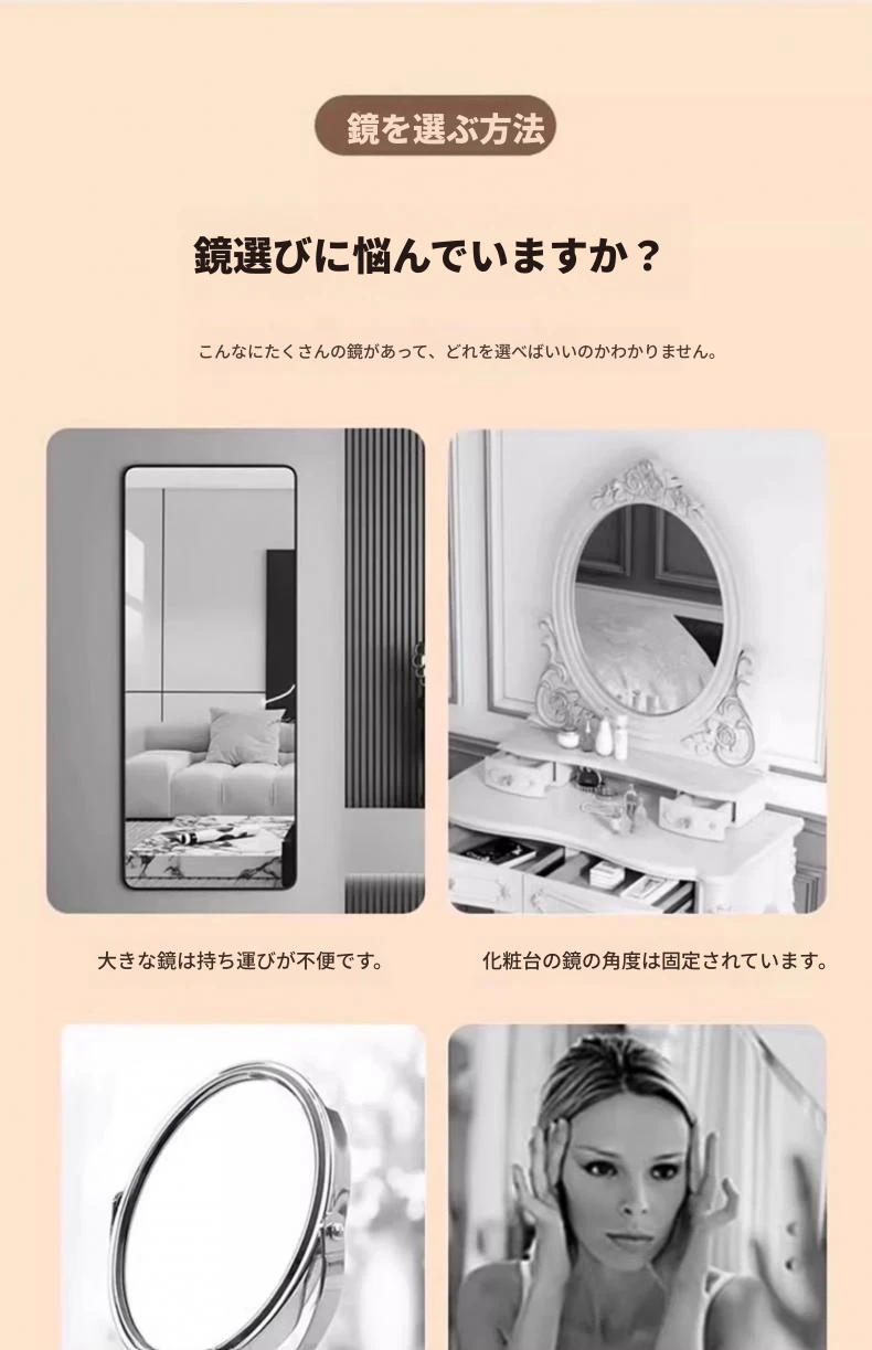 楕円形プリンセスミラー【超高解像度ミラー 破損保証】