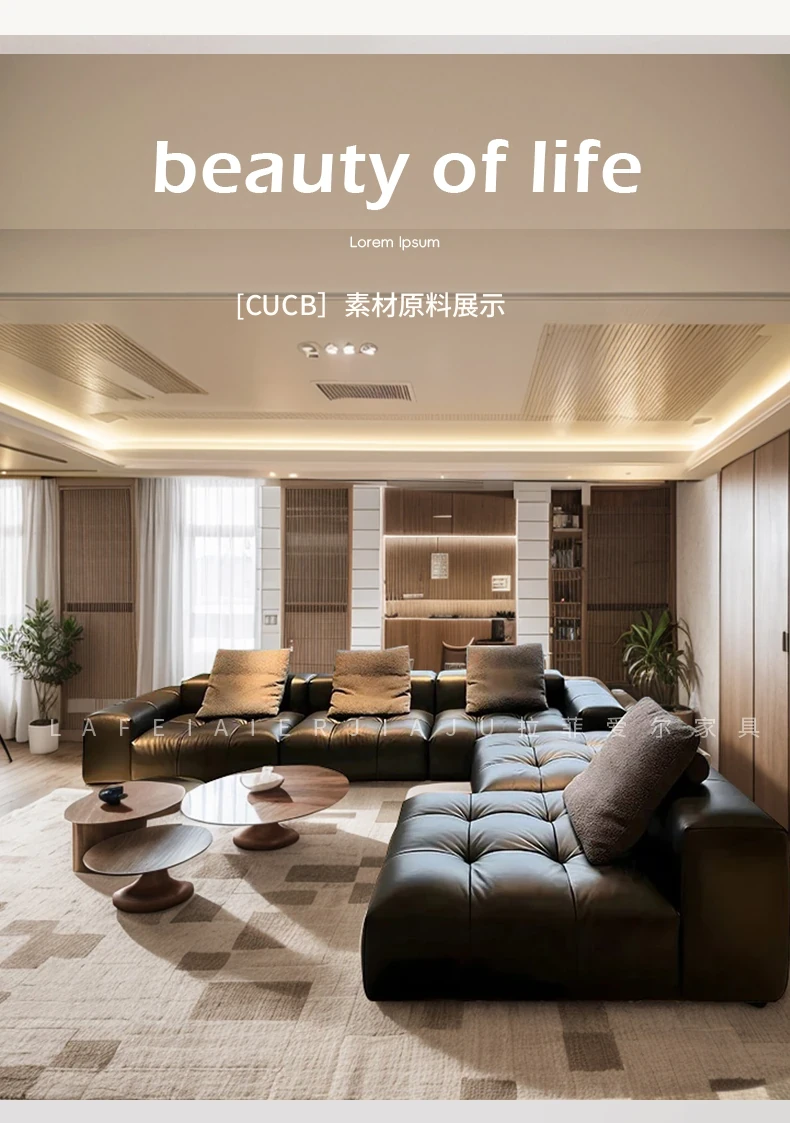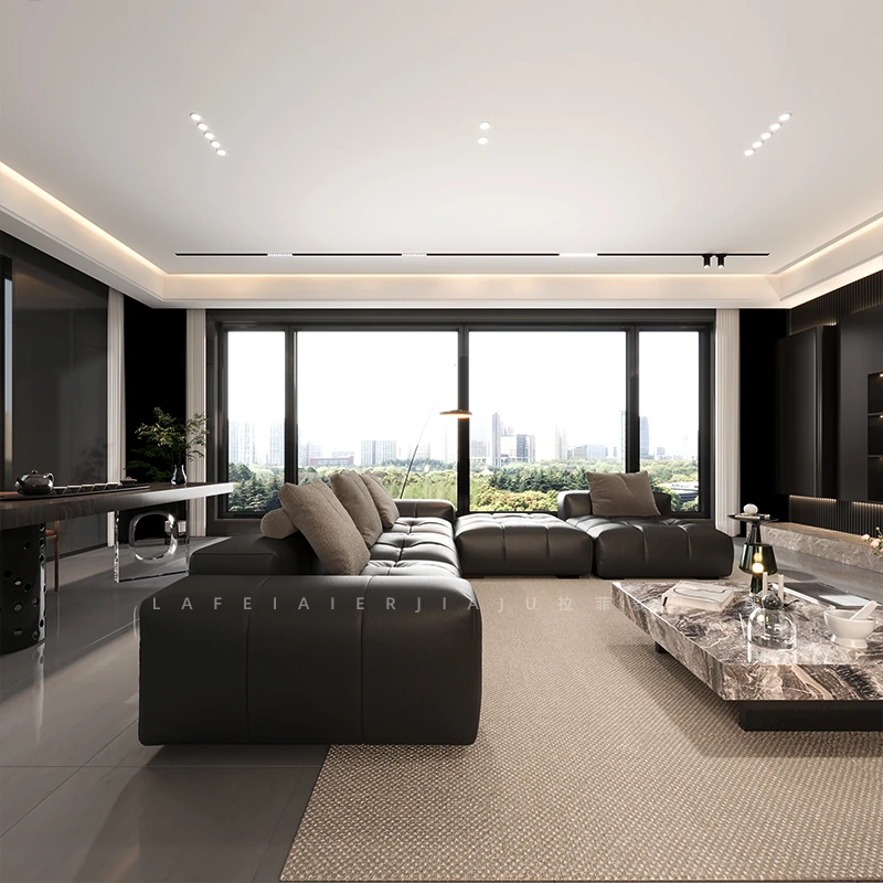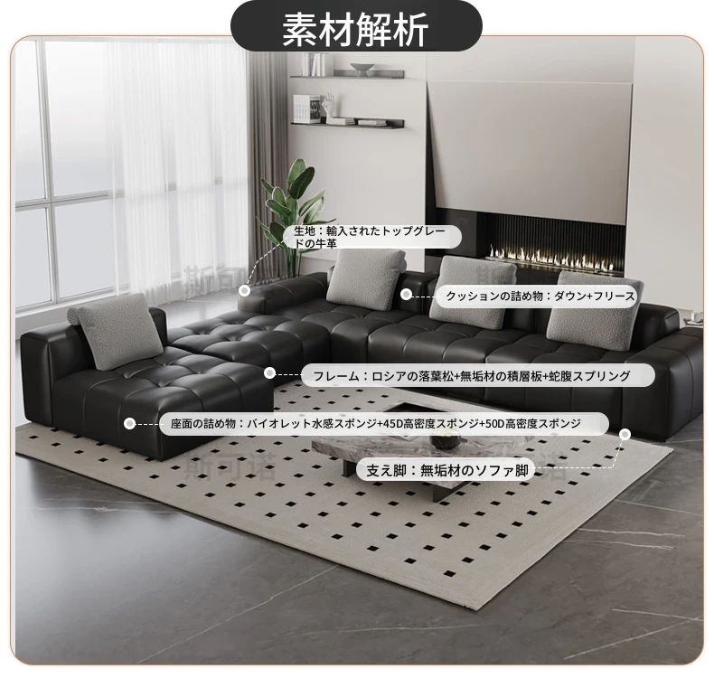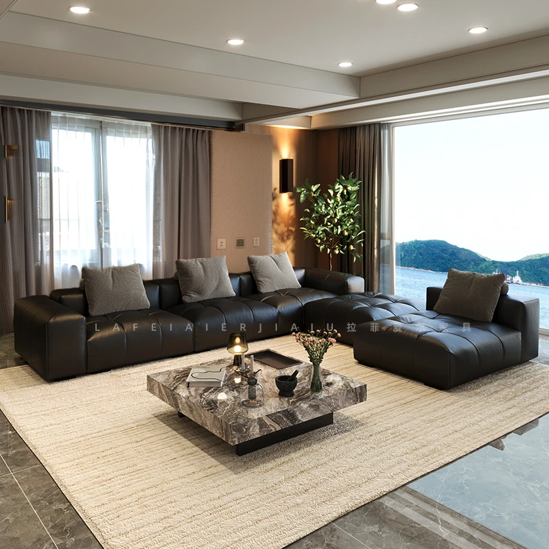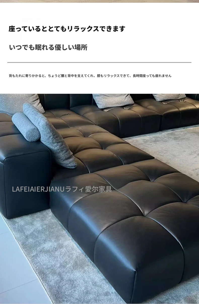 サバ ピクセルソファリビングルームオリジナルデザイン 本革イタリアンミニマリズム モジュラーポフヘッド フルグレインレザーソファ - スタイリッシュで快適、洗練された空間を演出!