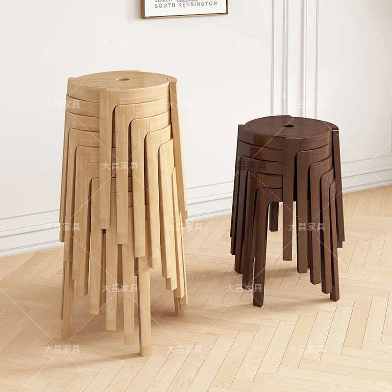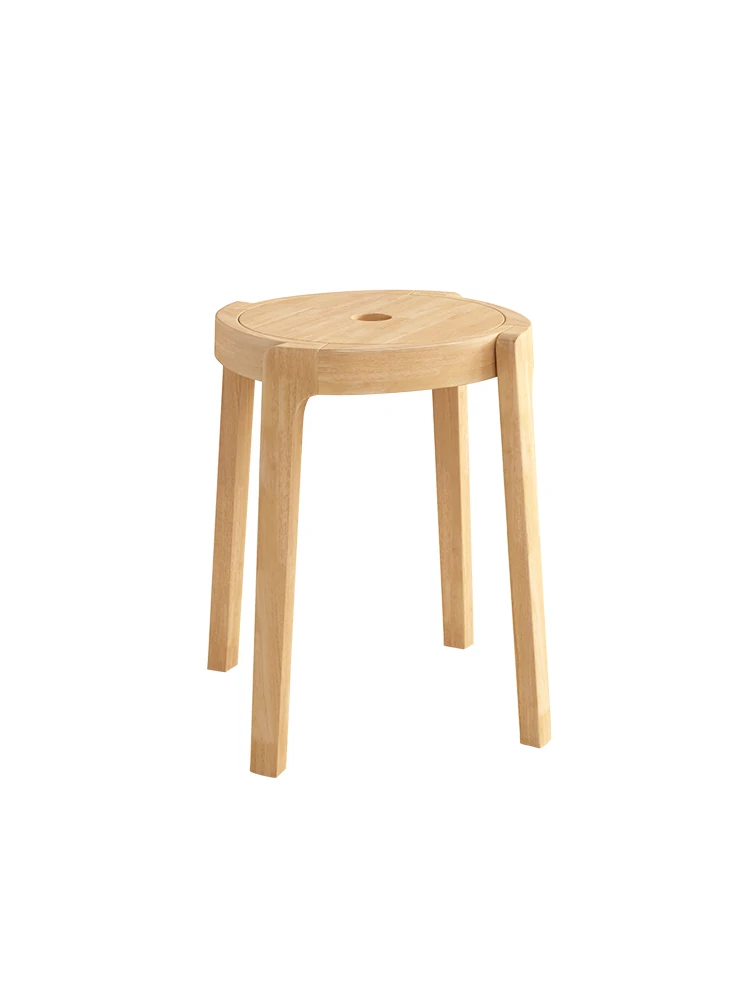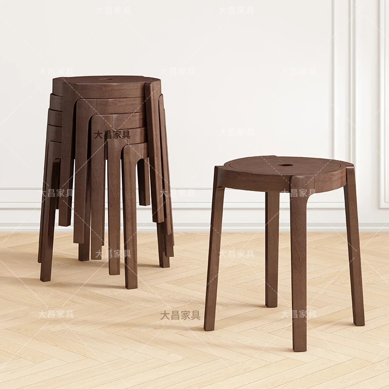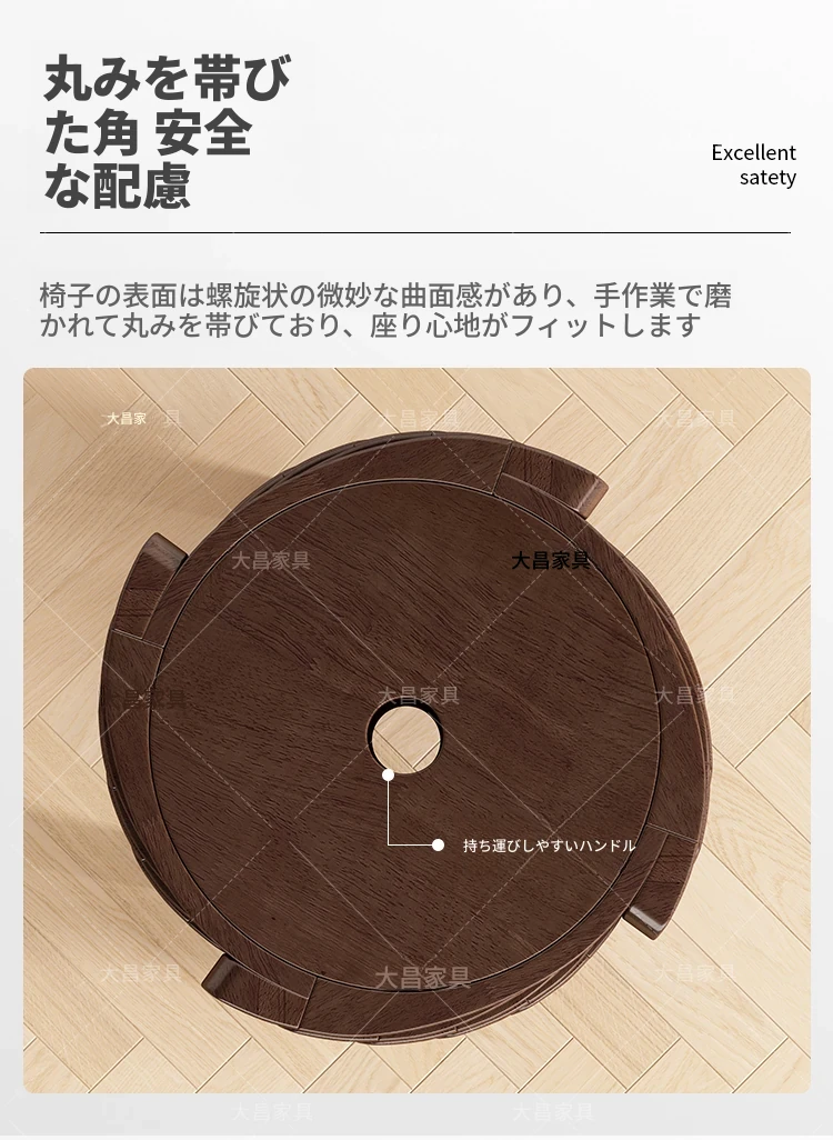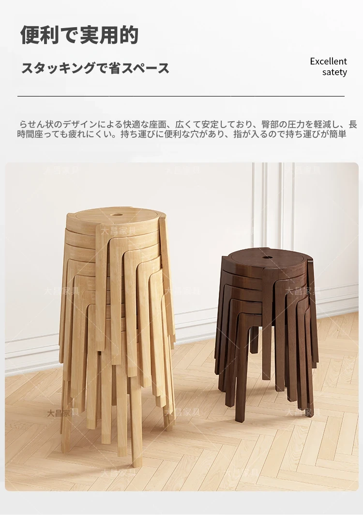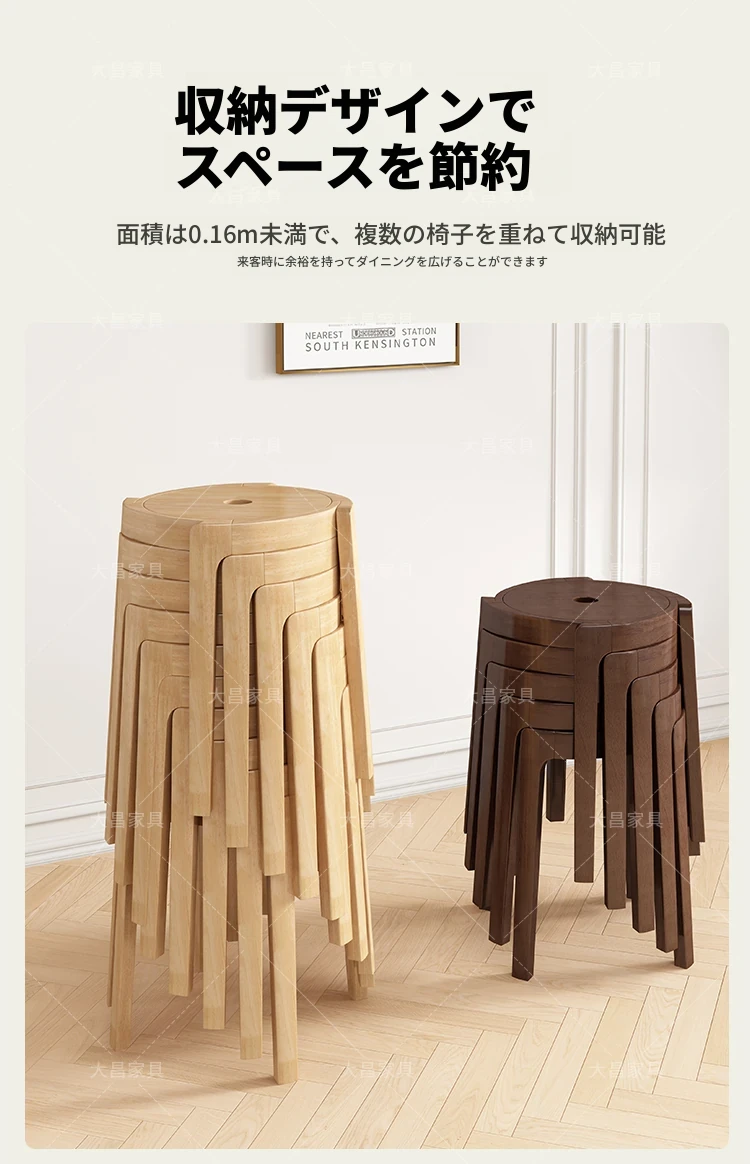 スタイリッシュな無垢材折りたたみ椅子 - 家庭用ダイニングテーブルに最適!シンプルな円形デザイン、コンパクトなサイズで小さなスペースにもぴったり。便利な予備椅子としても大活躍!