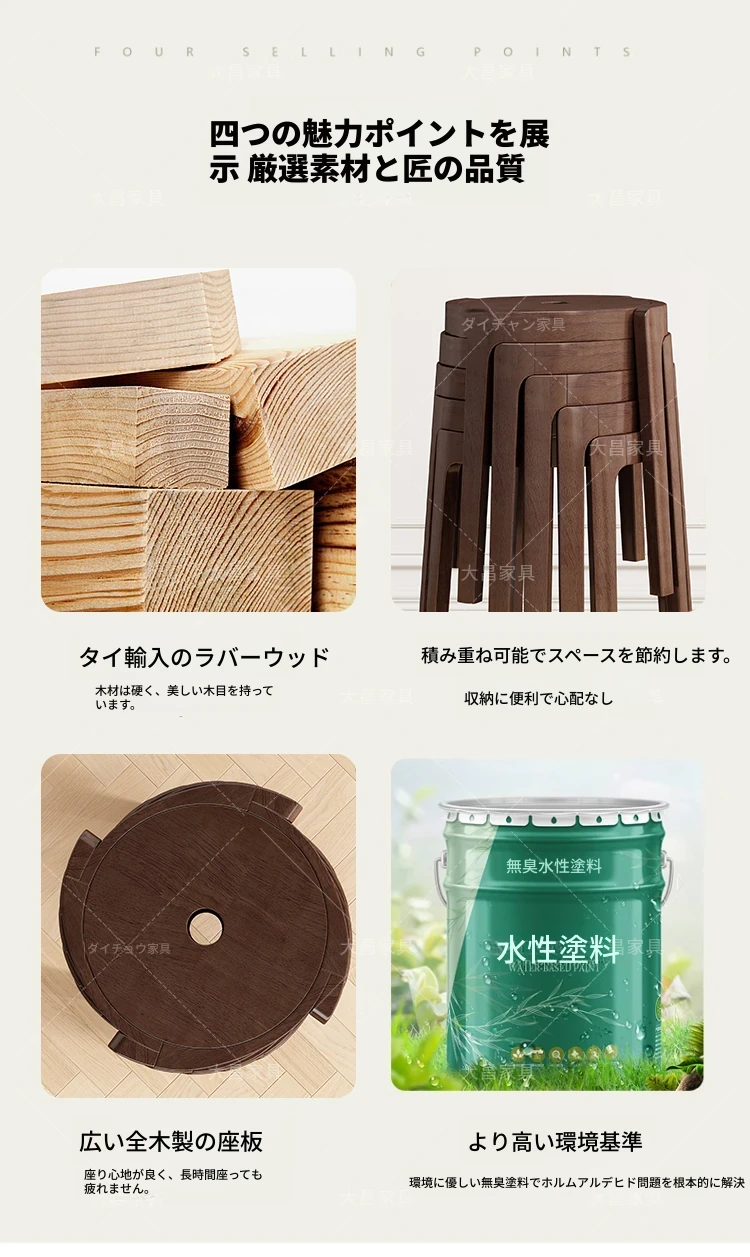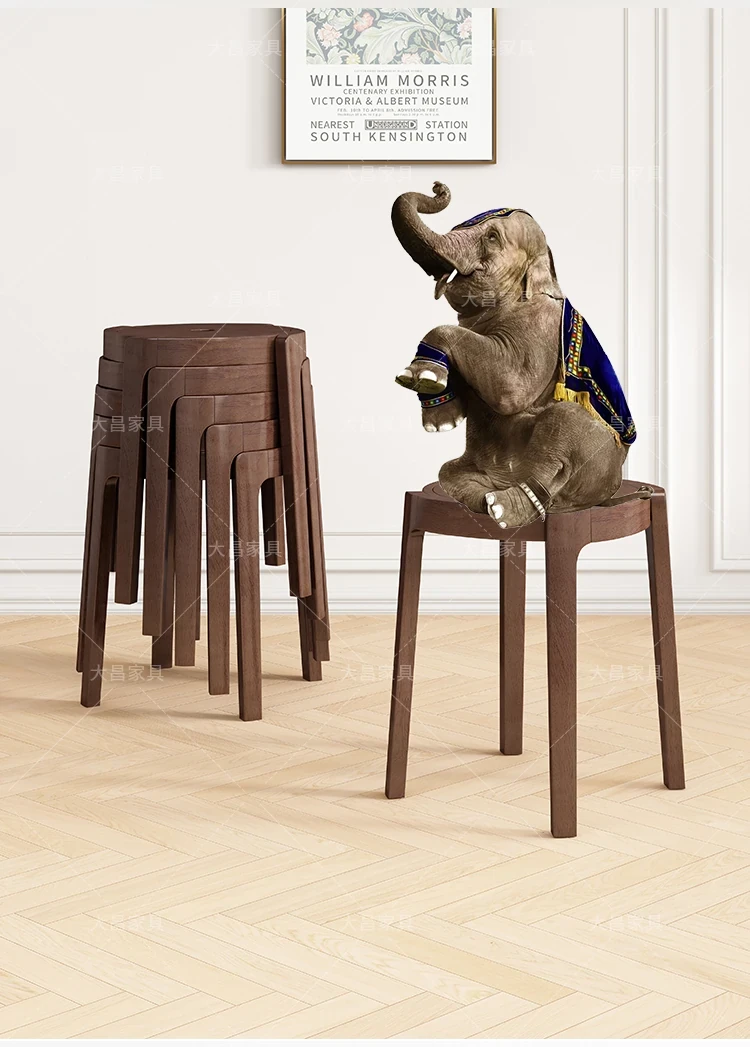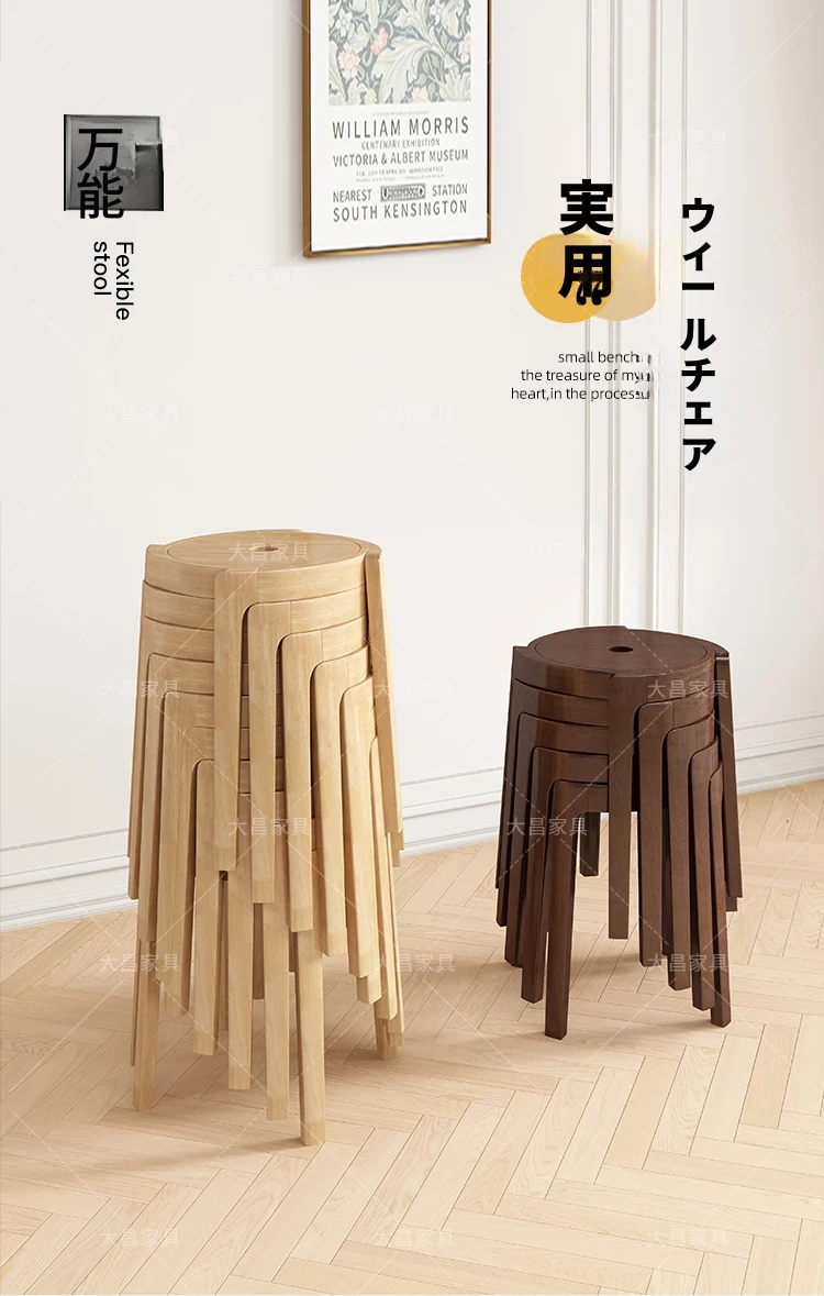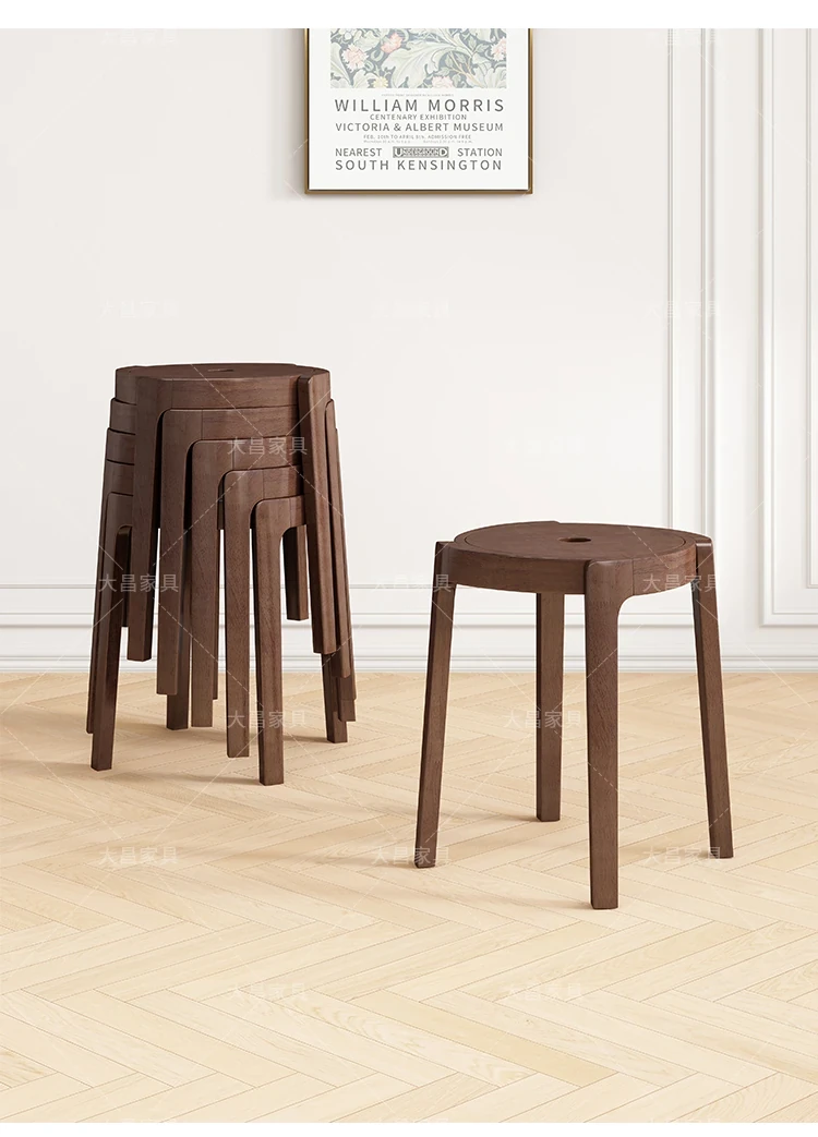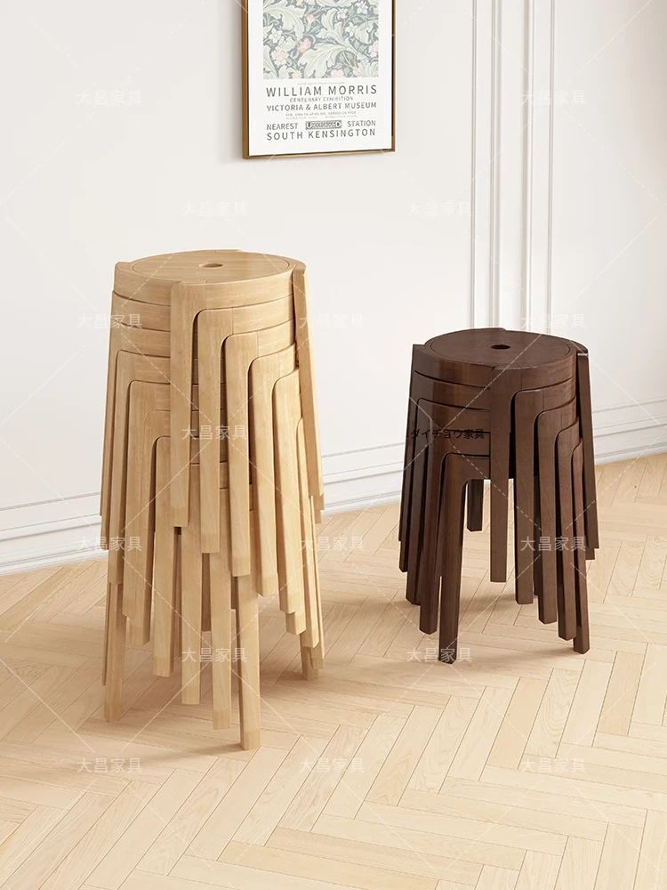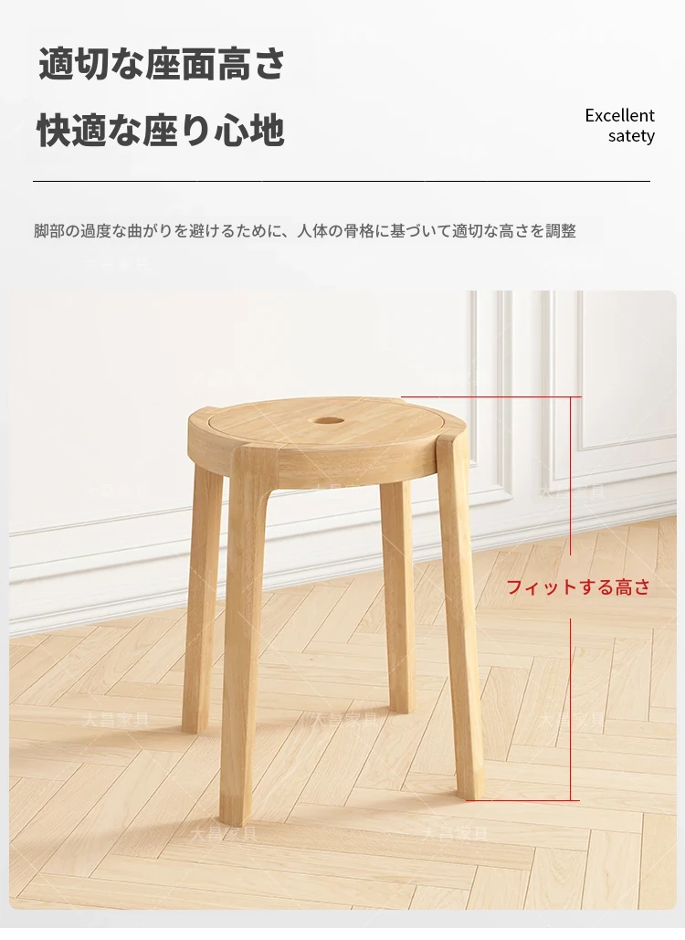 スタイリッシュな無垢材折りたたみ椅子 - 家庭用ダイニングテーブルに最適!シンプルな円形デザイン、コンパクトなサイズで小さなスペースにもぴったり。便利な予備椅子としても大活躍!