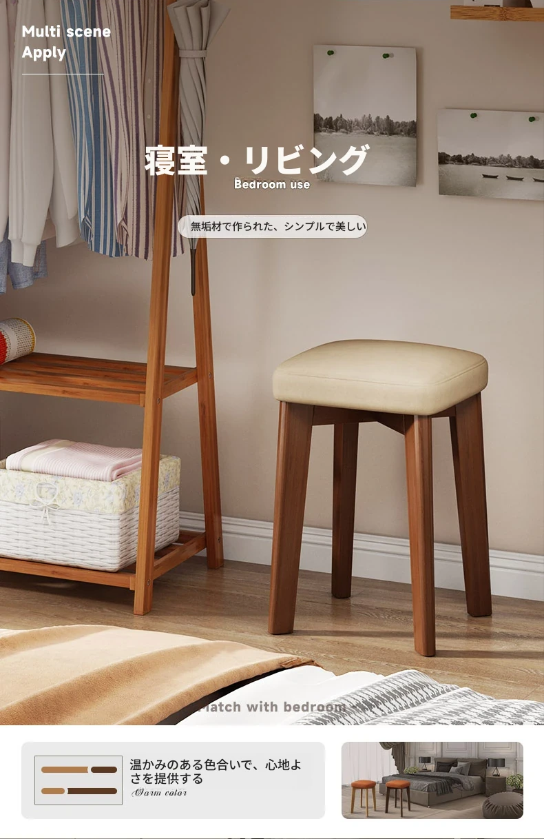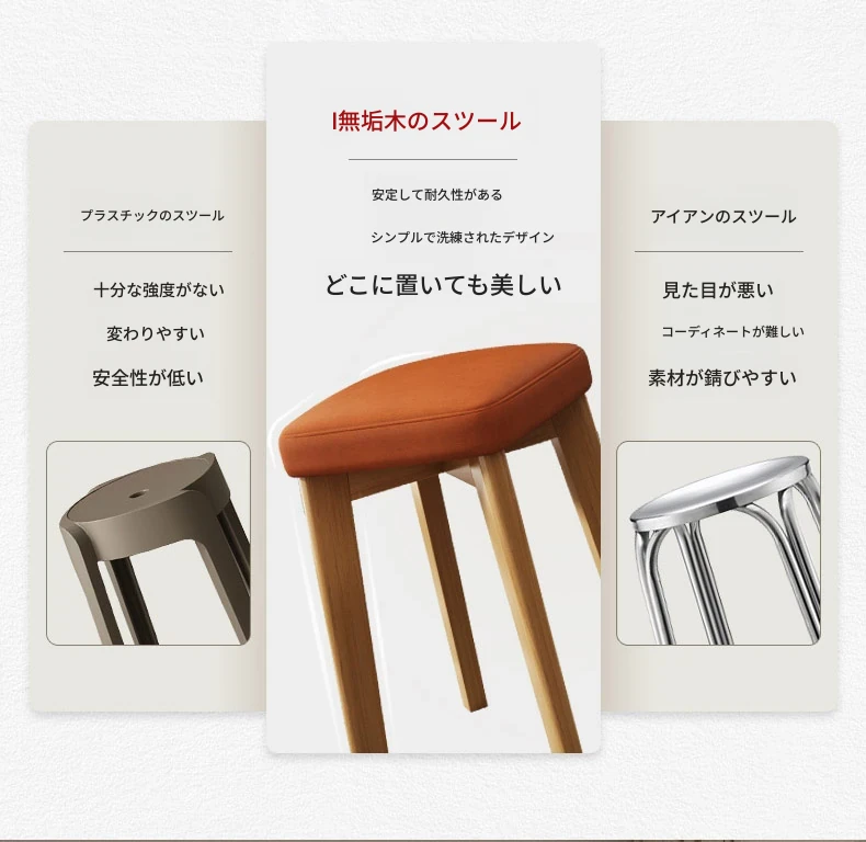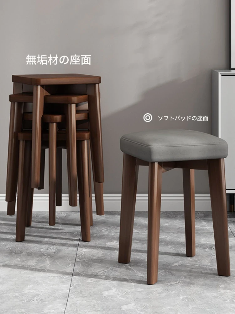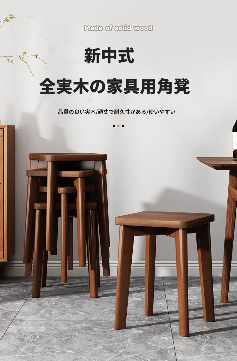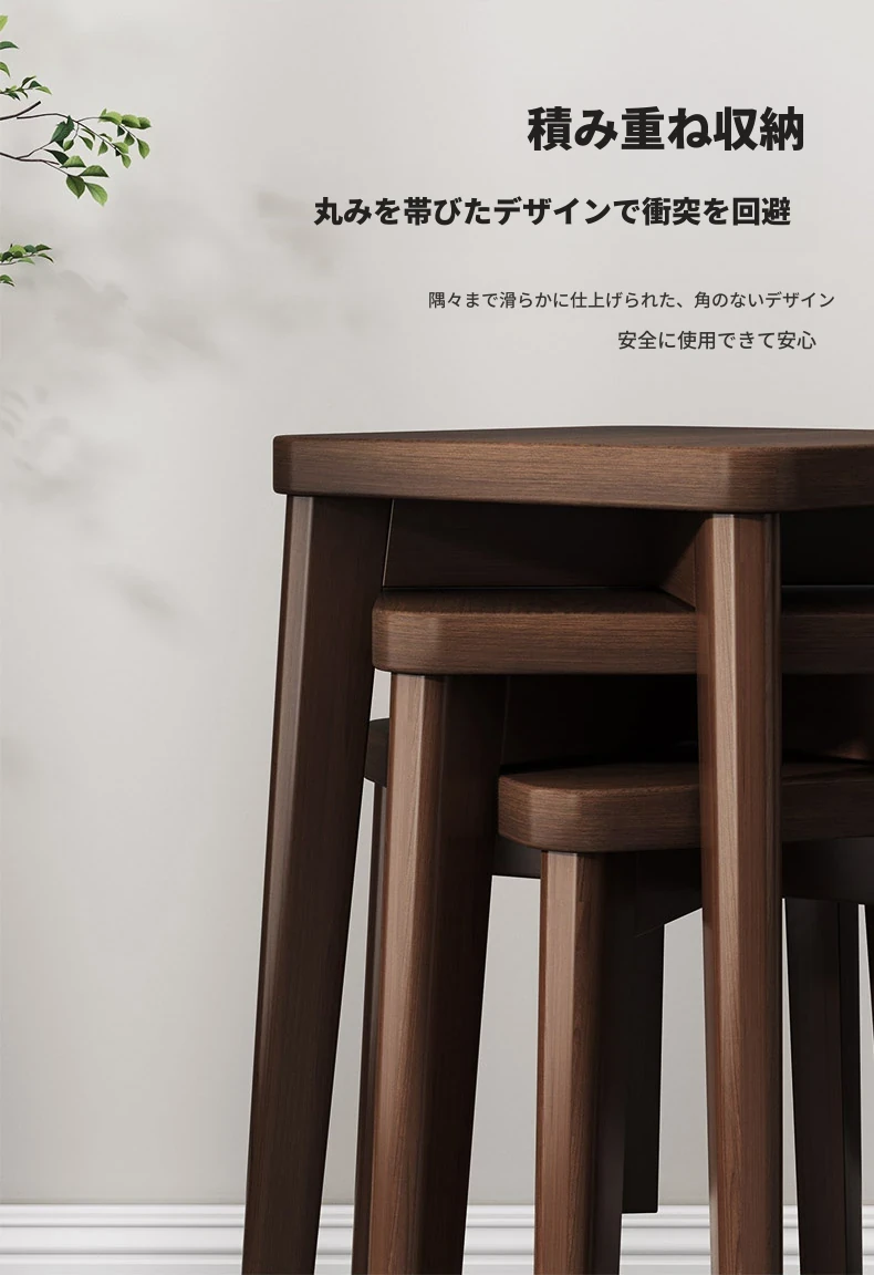 リビング用のスタイリッシュな木製スツール - 重ねて収納できるシンプルなデザイン、ダイニングテーブルや椅子としても最適!家庭用にぴったりのコンパクトなサイドスツール。