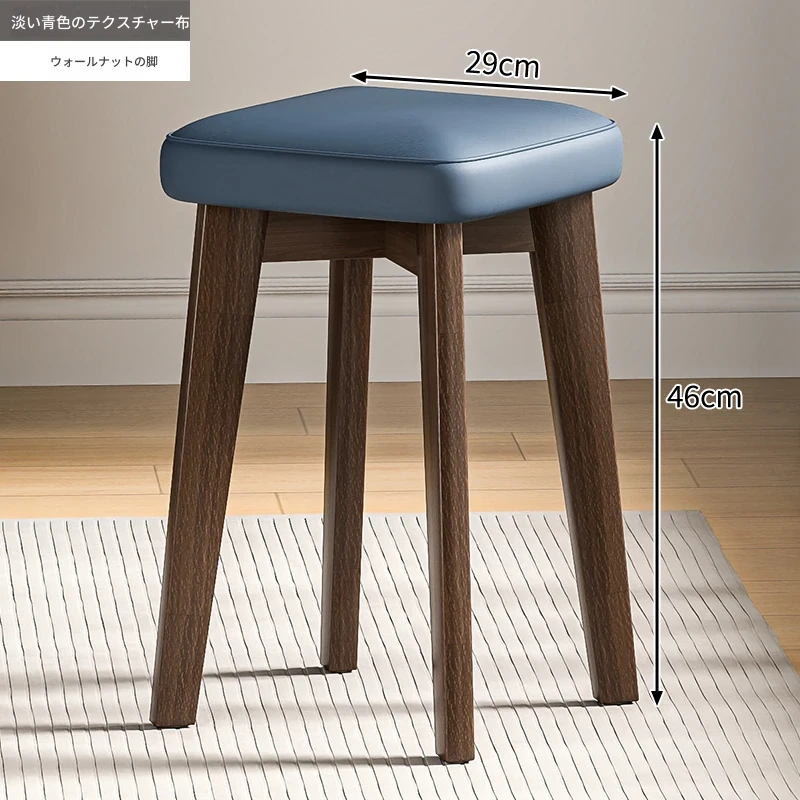免洗テクノロジー布-スポンジタイプのくるみ脚-淡い青色【無垢材製 加幅した座面】