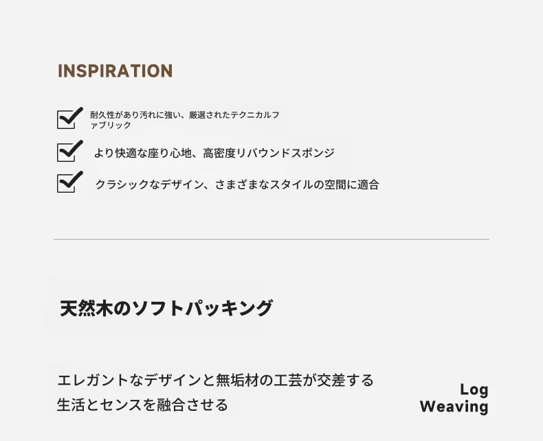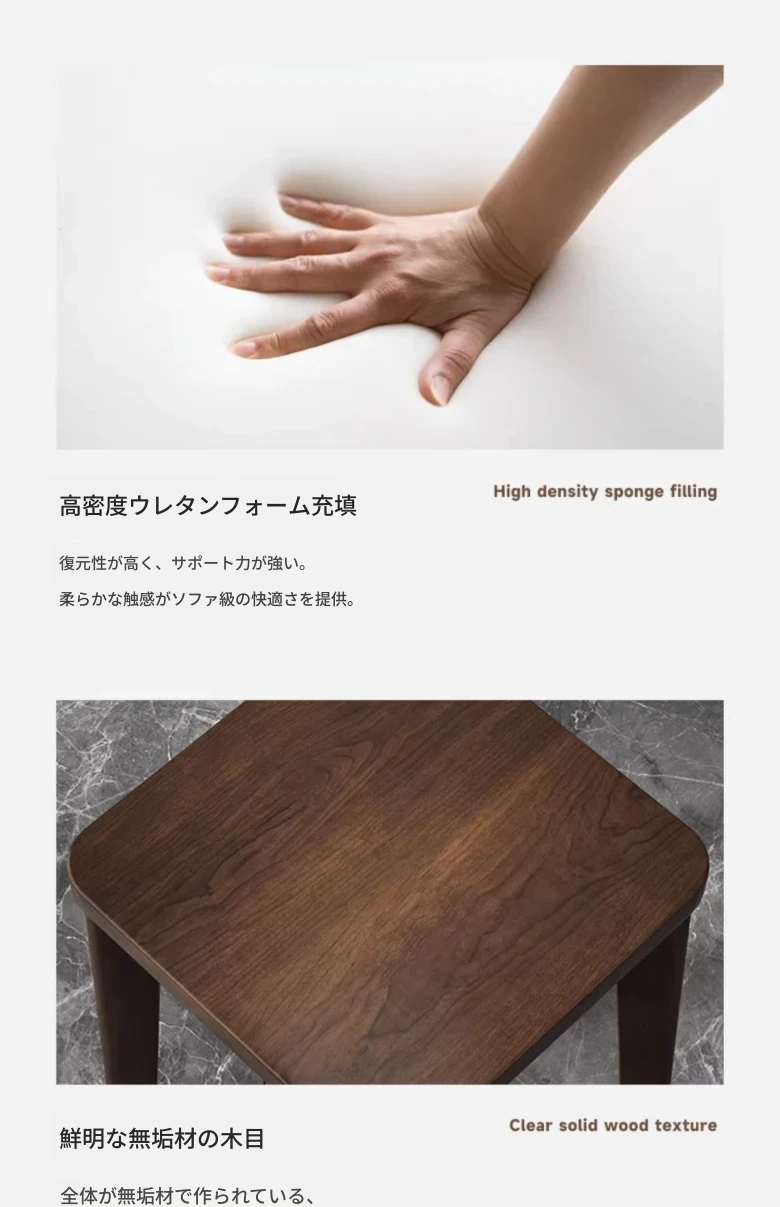 免洗テクノロジー布-スポンジタイプの原木脚-茶色【無垢材製 加幅した座面】