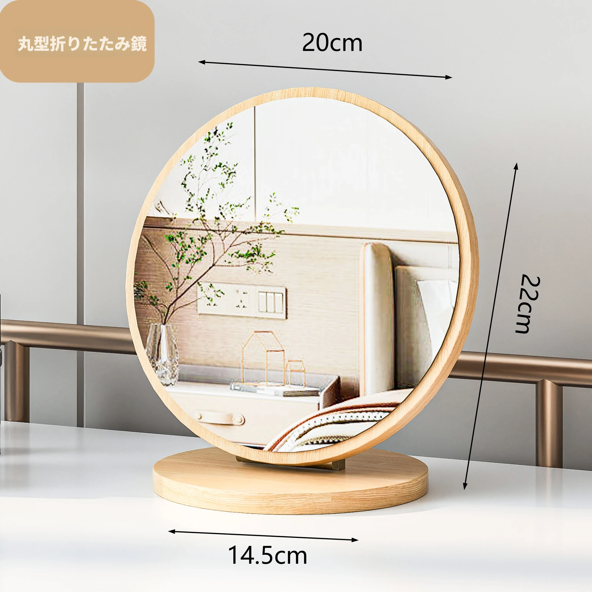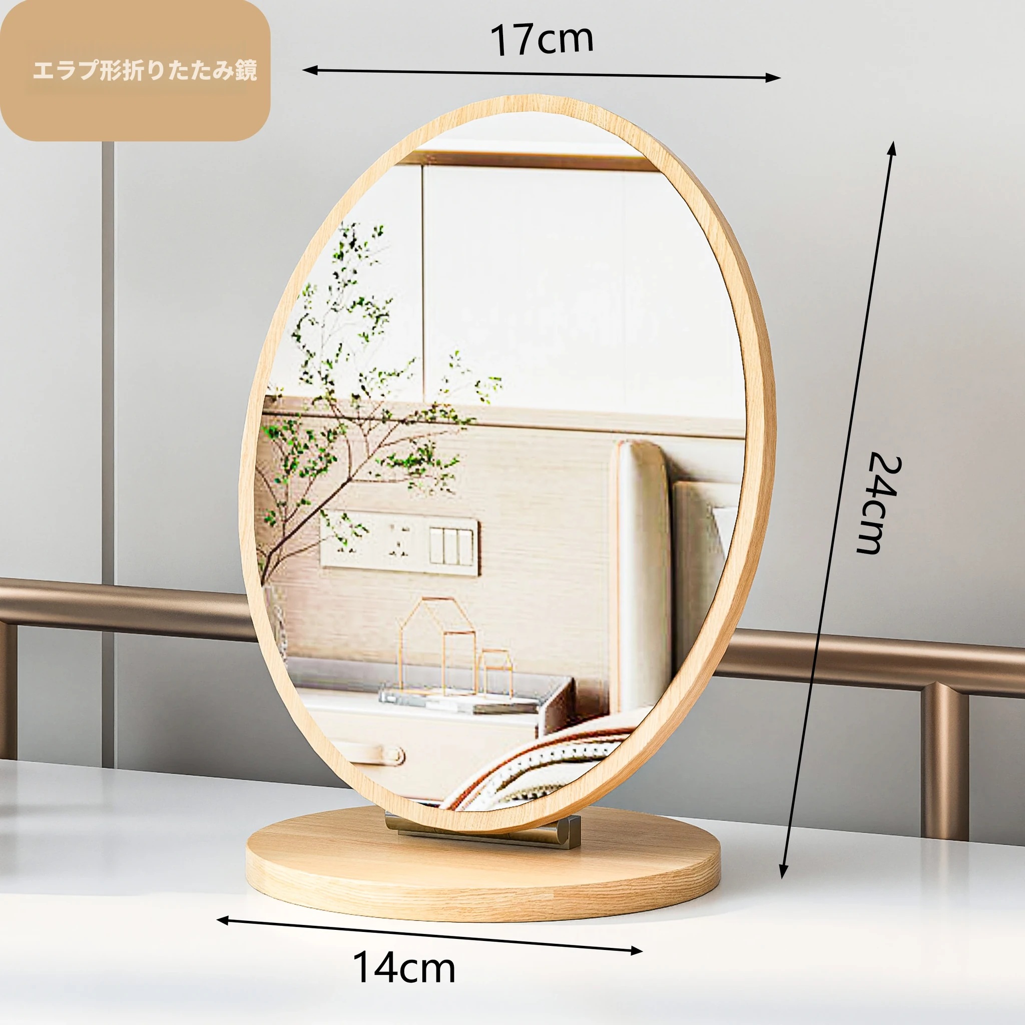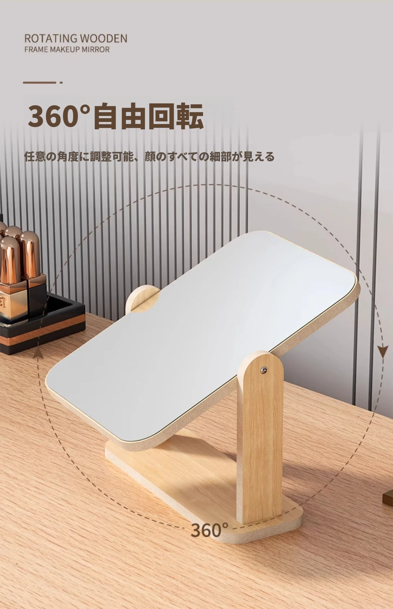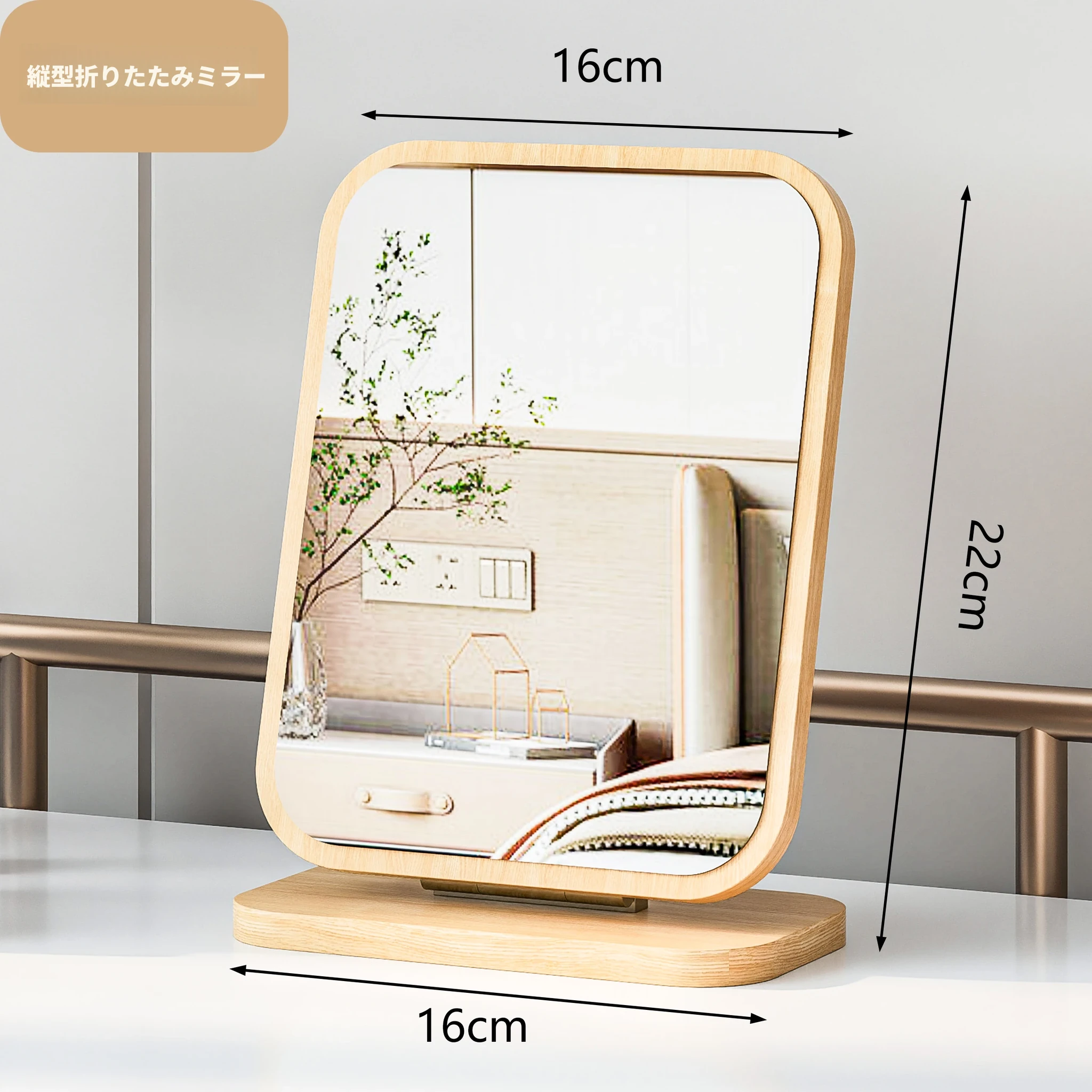 木製のシンプルな女の子用卓上メイクミラー - 回転式、家庭用、学生寮にも最適!持ち運び便利な折りたたみデザインで、毎日のメイクアップをもっと楽しく!