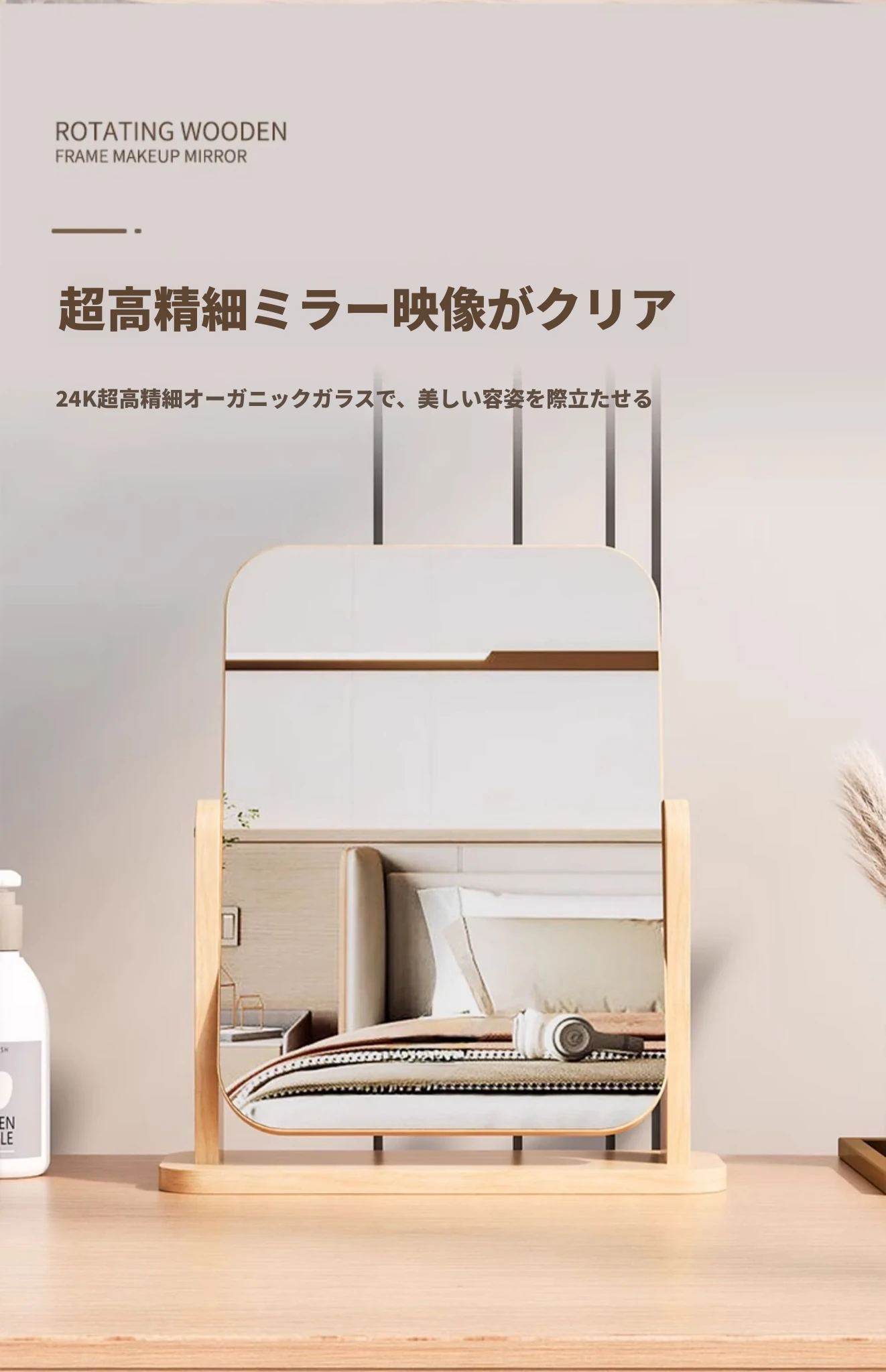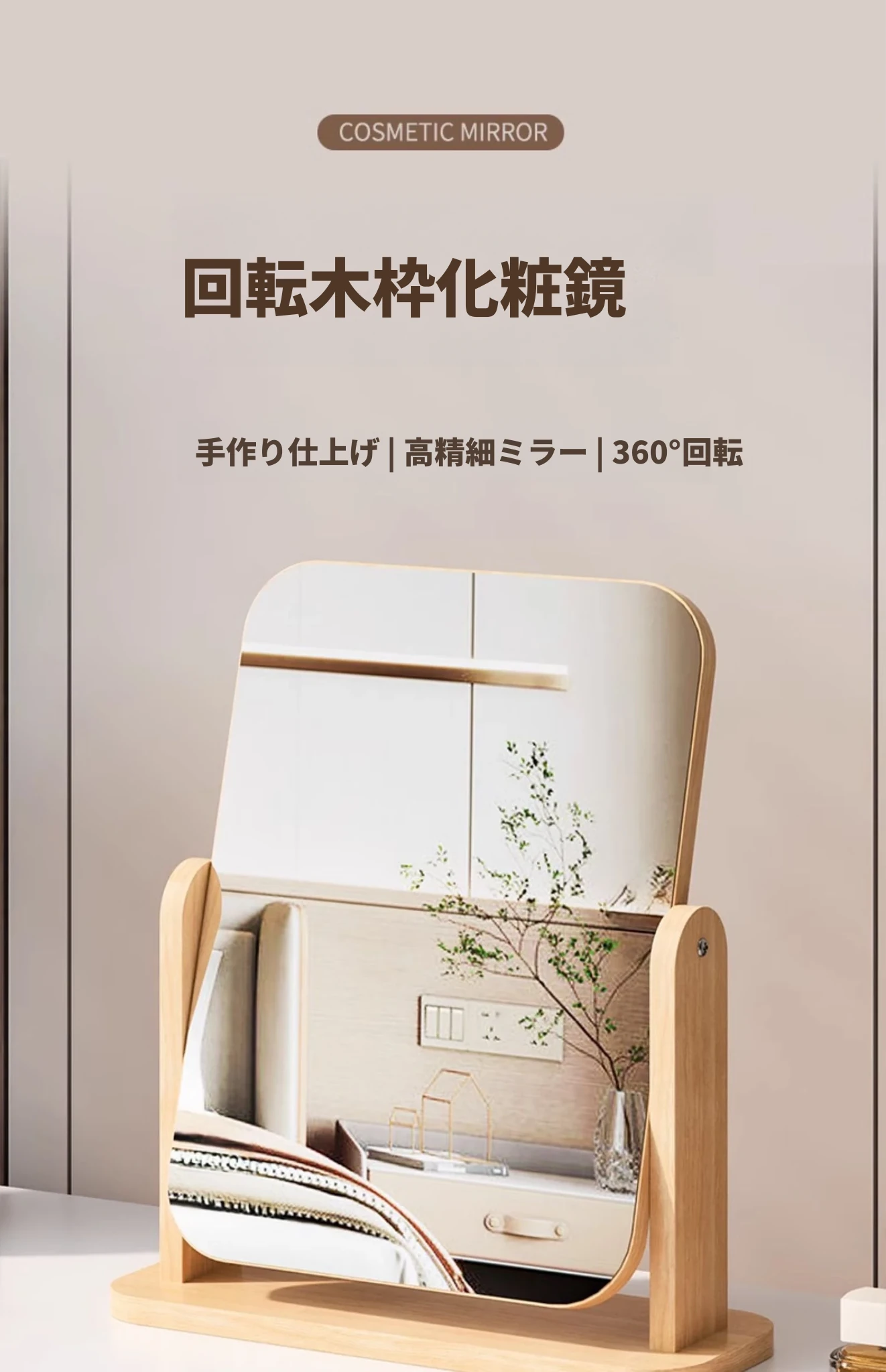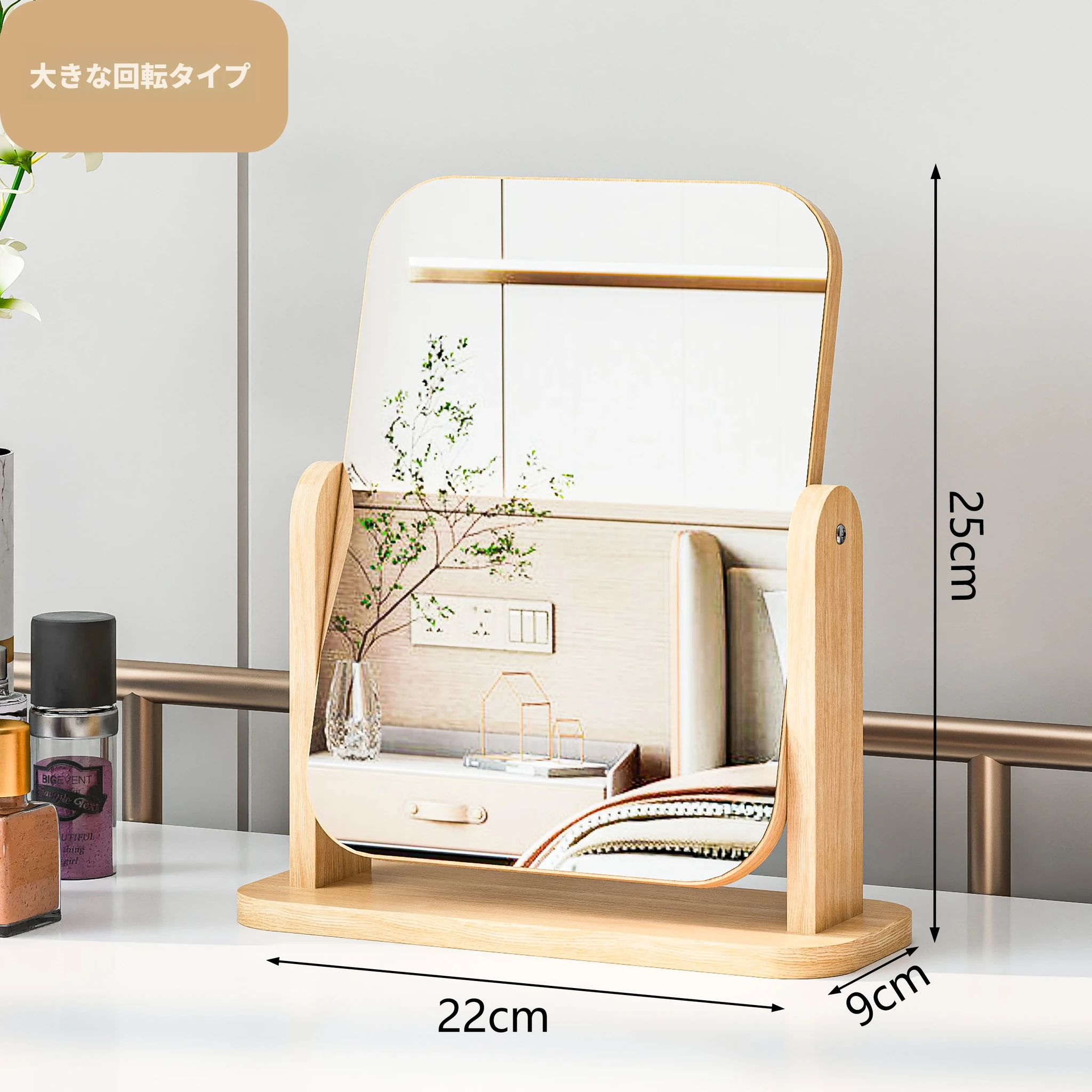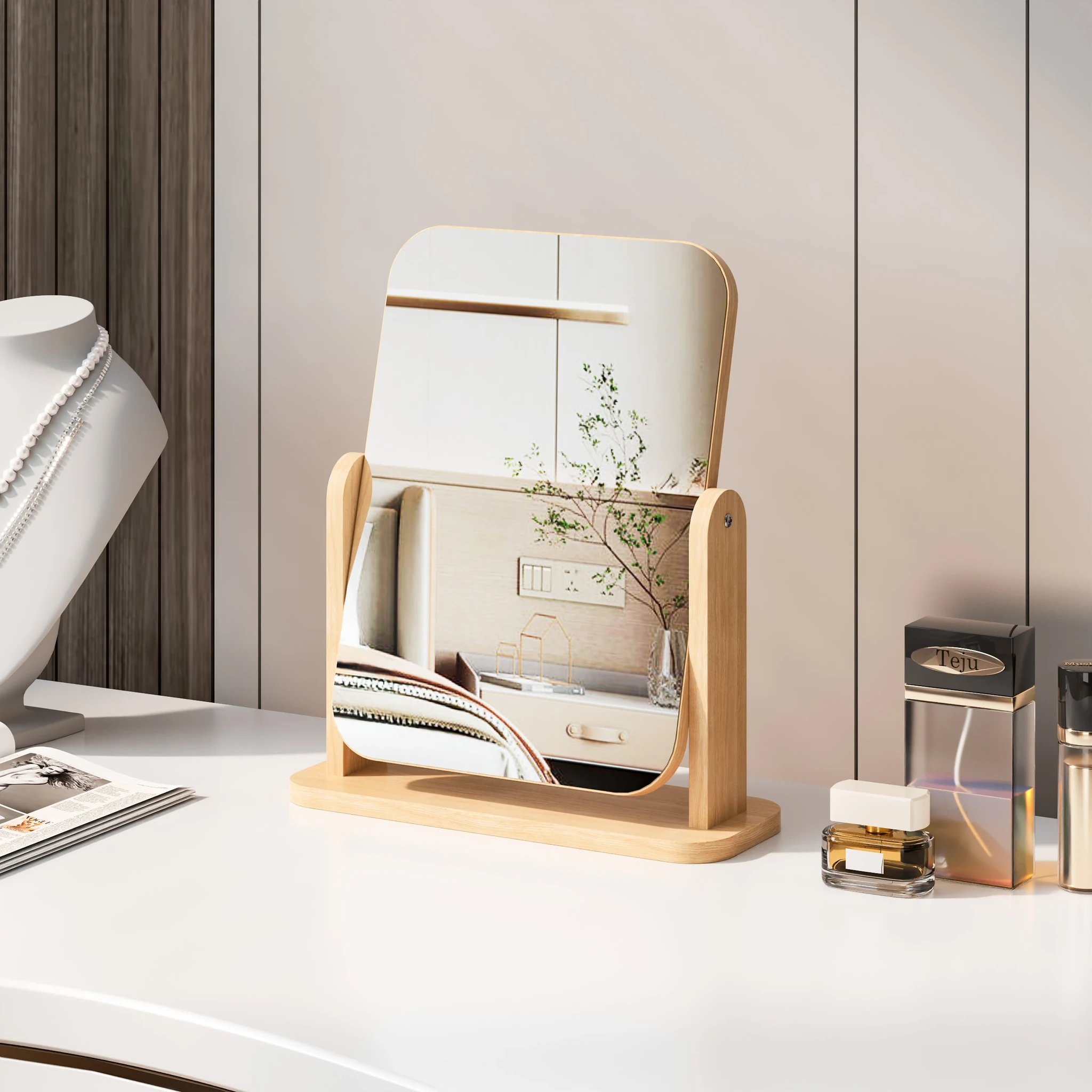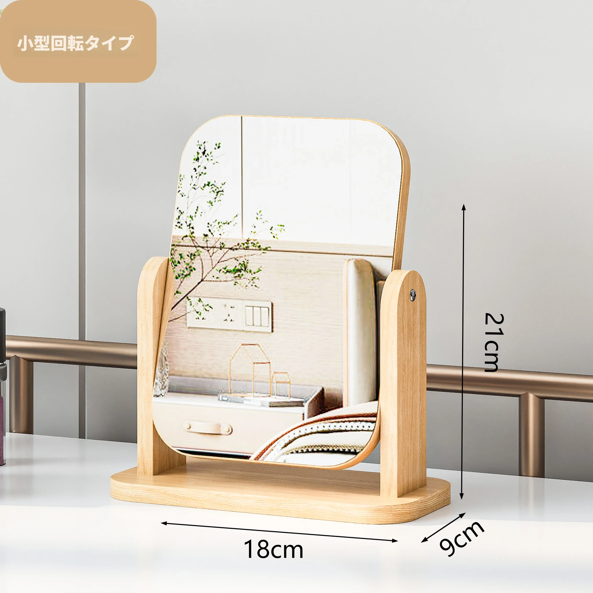木製のシンプルな女の子用卓上メイクミラー - 回転式、家庭用、学生寮にも最適!持ち運び便利な折りたたみデザインで、毎日のメイクアップをもっと楽しく!