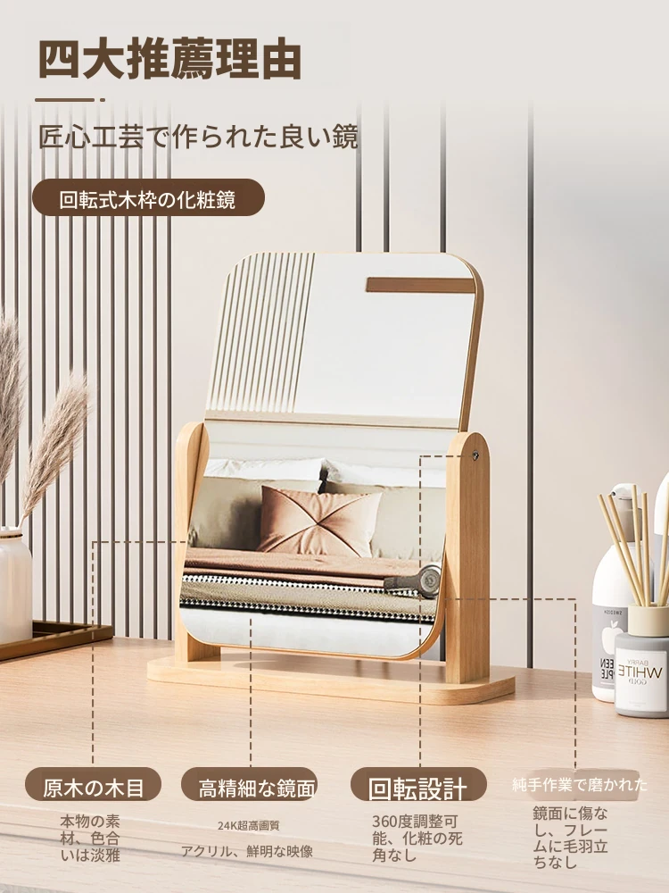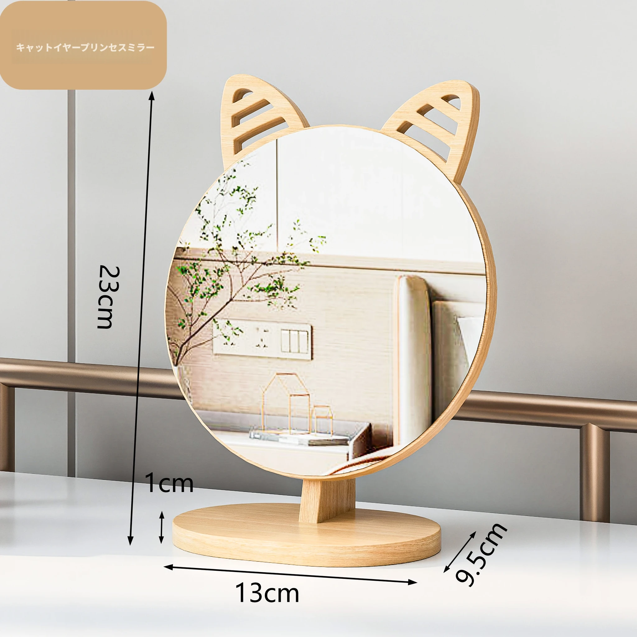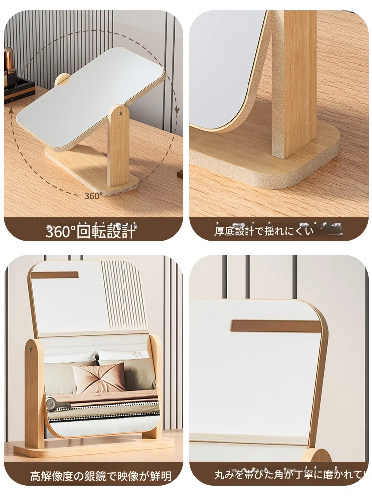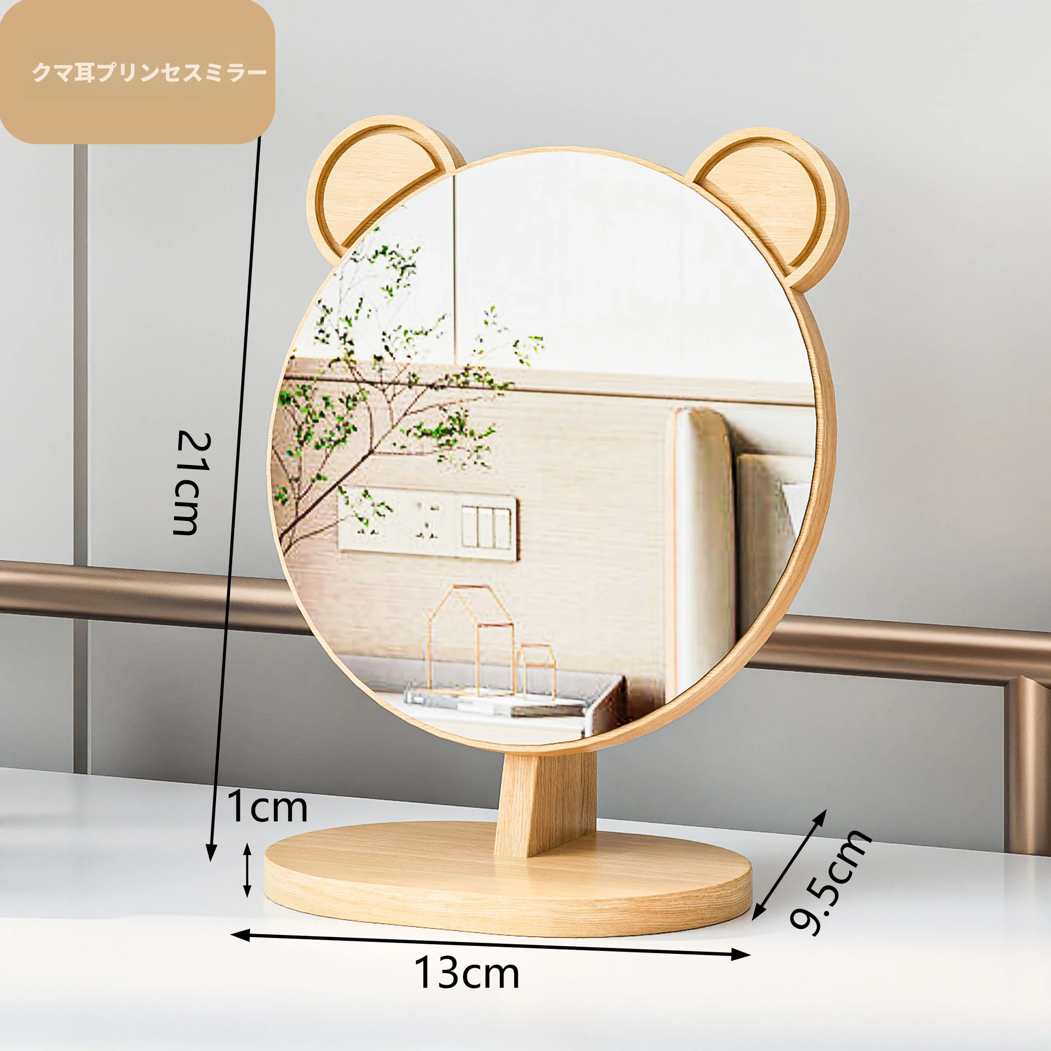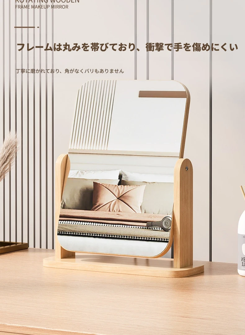 木製のシンプルな女の子用卓上メイクミラー - 回転式、家庭用、学生寮にも最適!持ち運び便利な折りたたみデザインで、毎日のメイクアップをもっと楽しく!