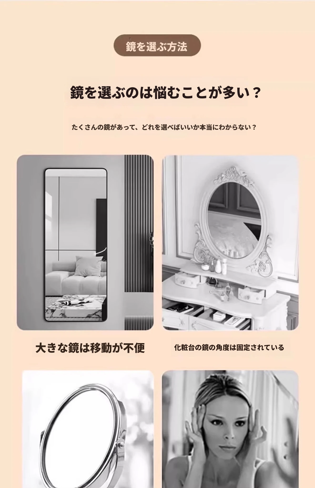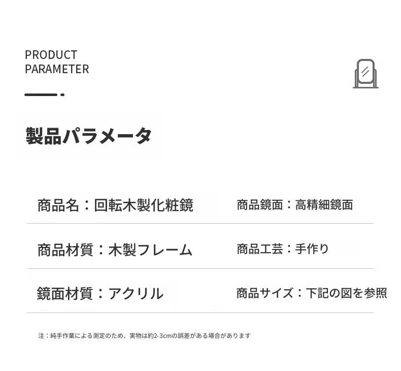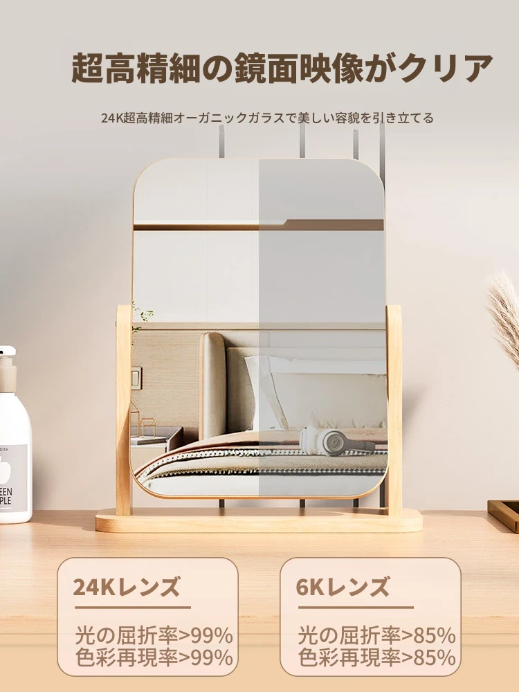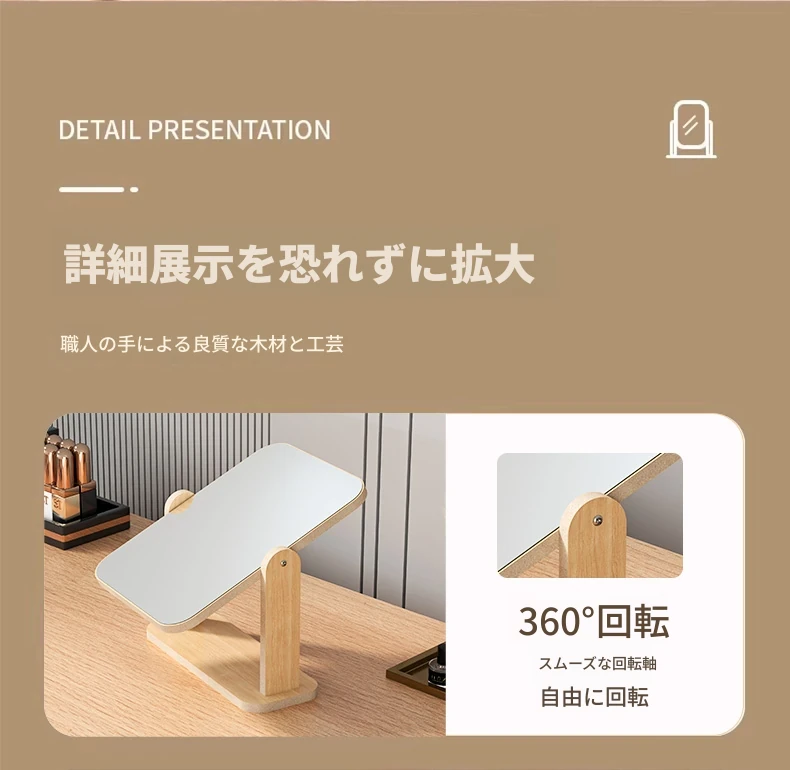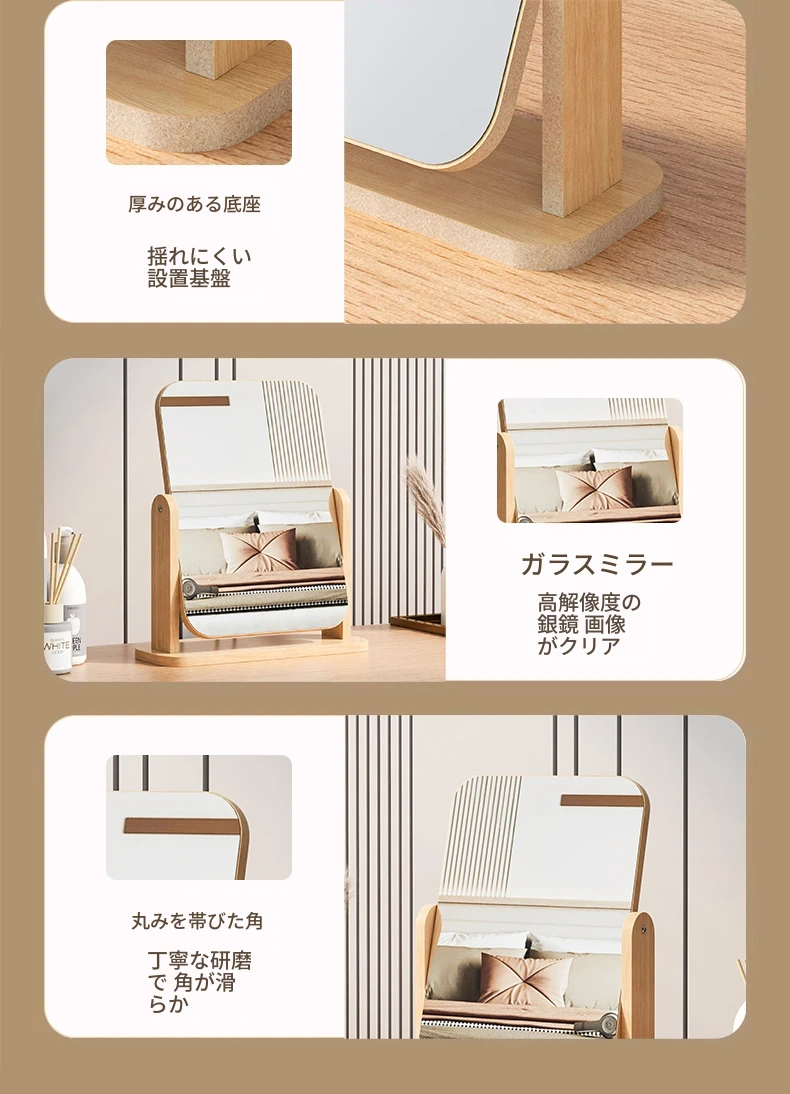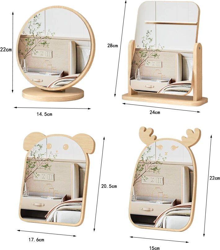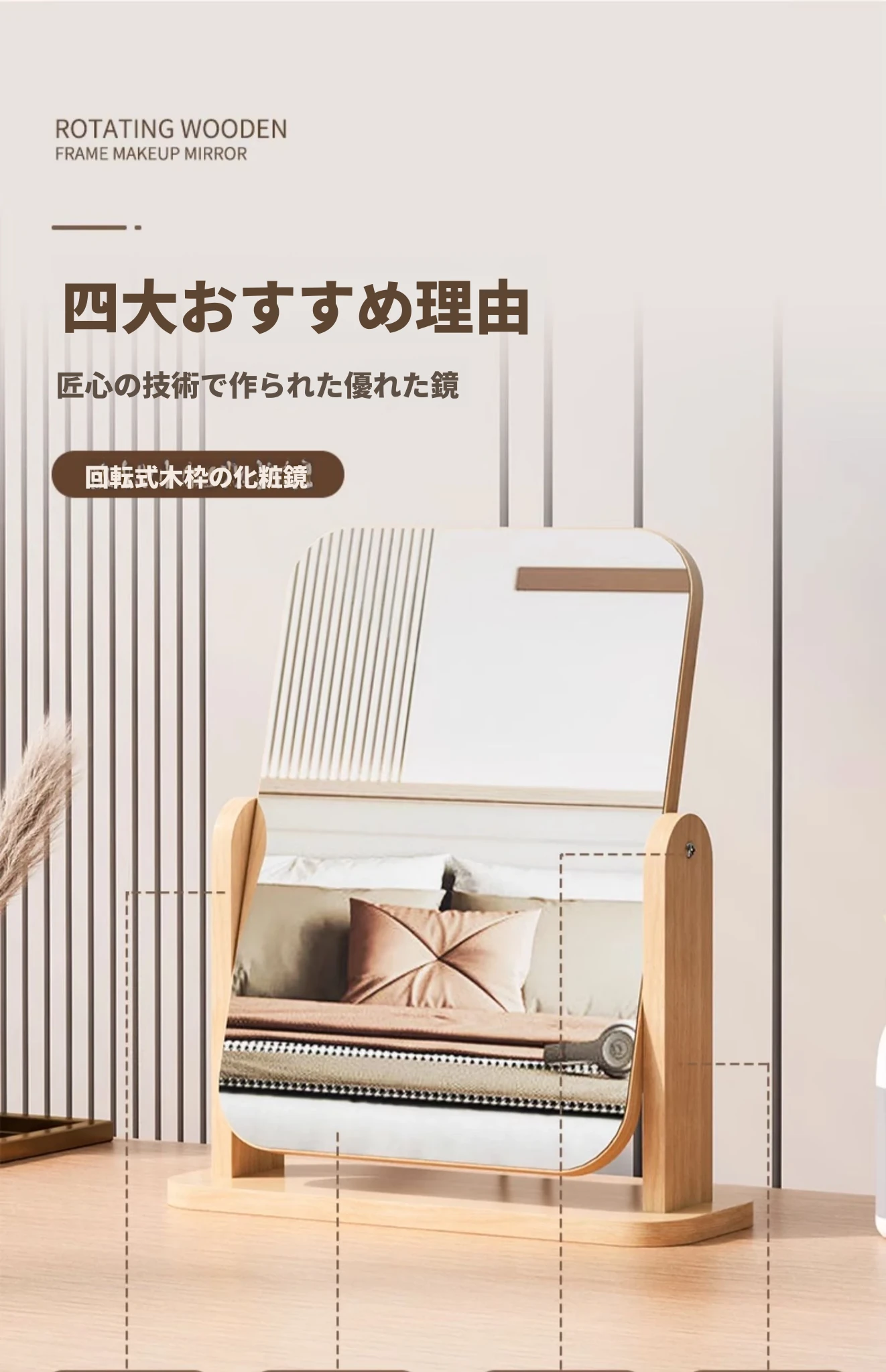木製のシンプルな女の子用卓上メイクミラー - 回転式、家庭用、学生寮にも最適!持ち運び便利な折りたたみデザインで、毎日のメイクアップをもっと楽しく!