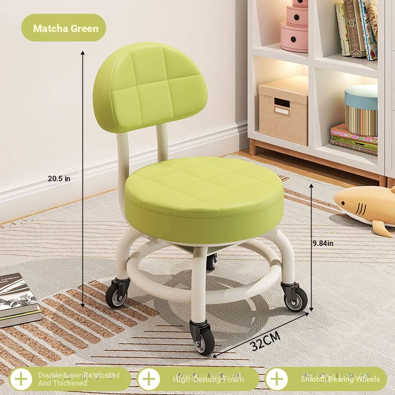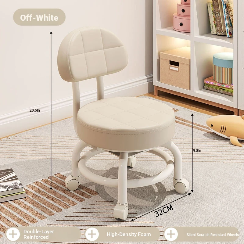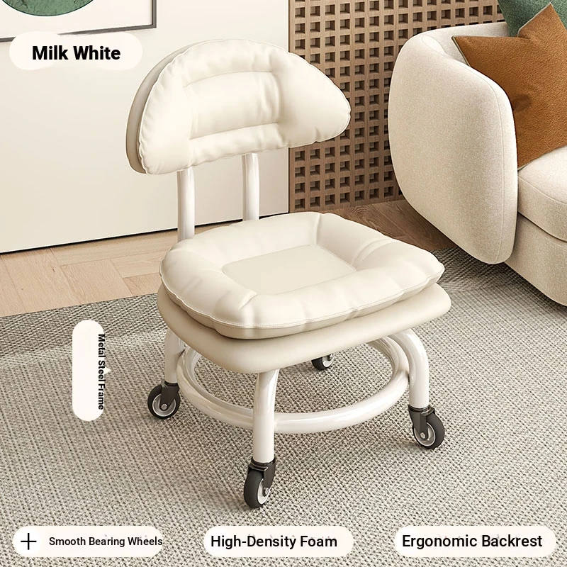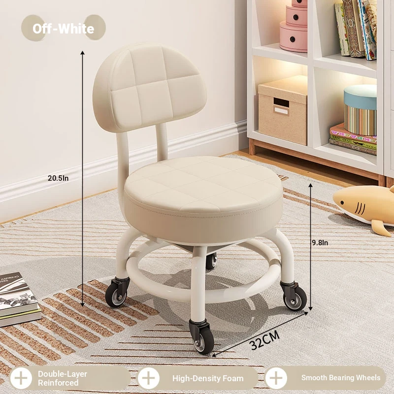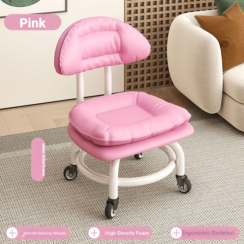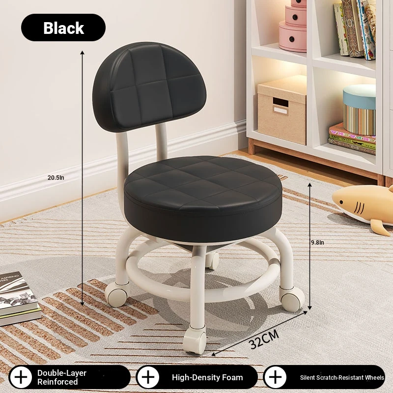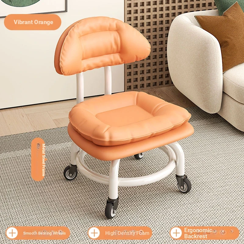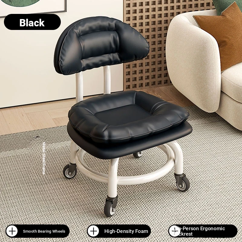 Versatile Rolling Stool with Wheels - Perfect for Home Use, Shoe Changing, and Kids! Ideal for Families, This Stylish Low Bench Features a Backrest and is Great for Seam Filling Projects.