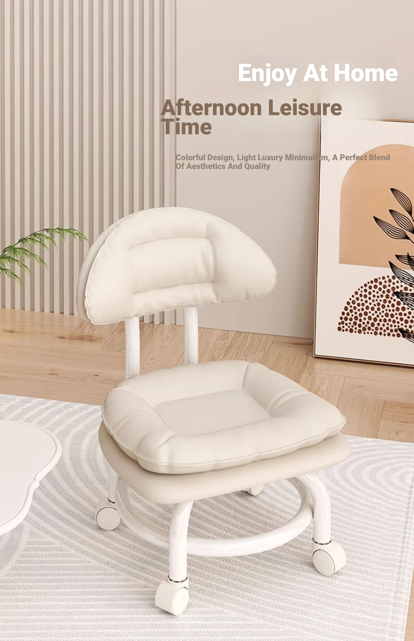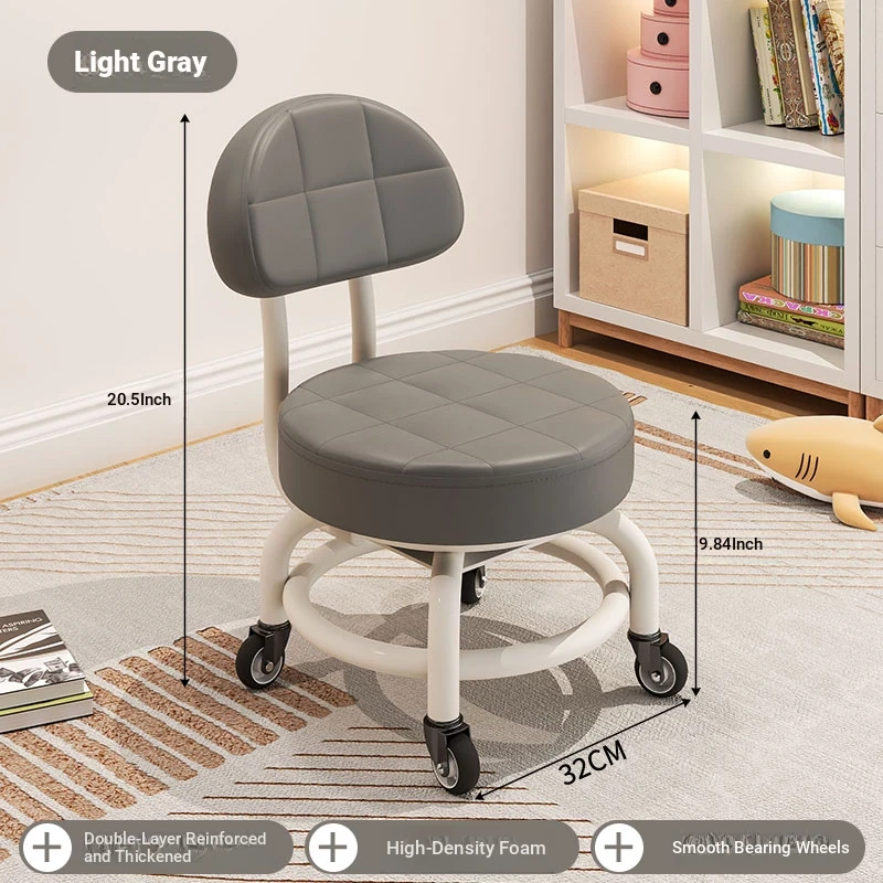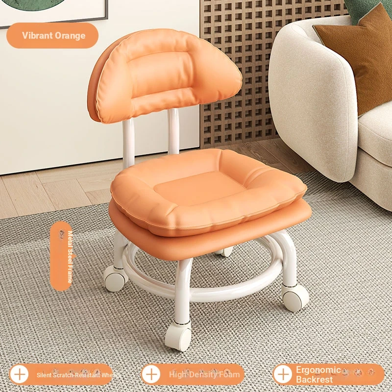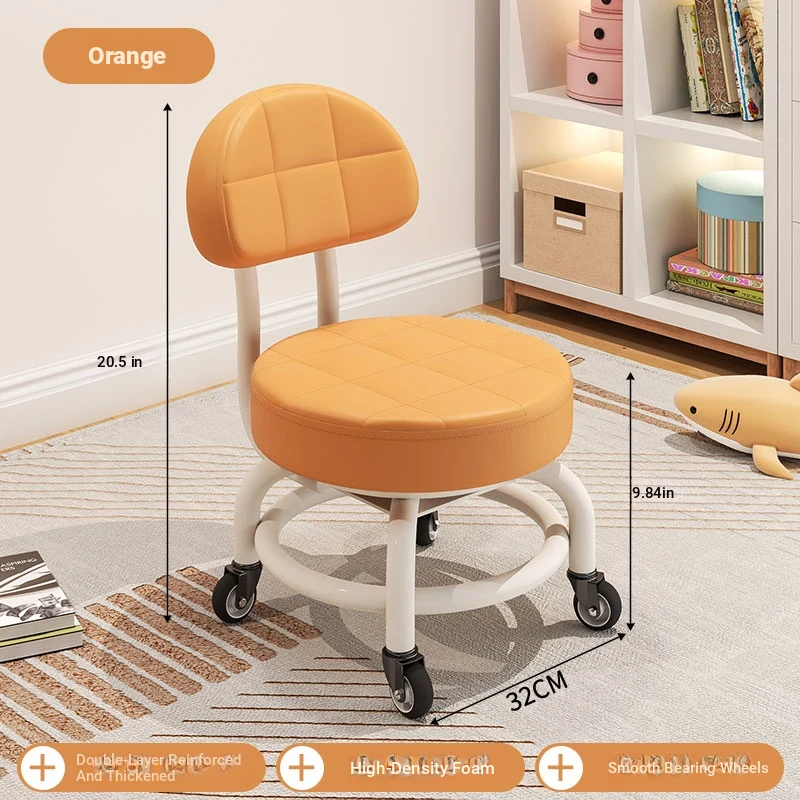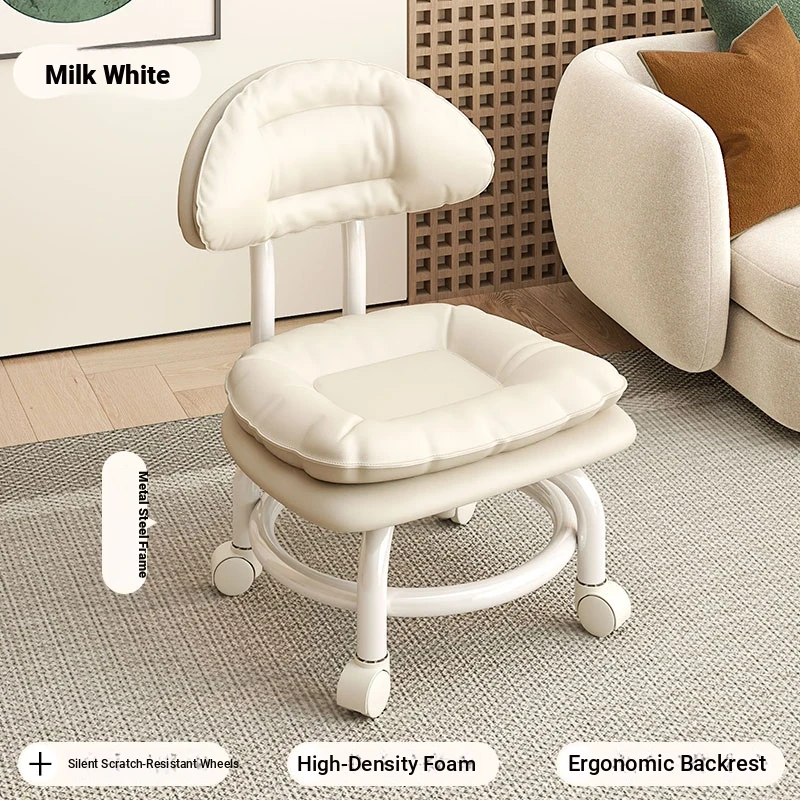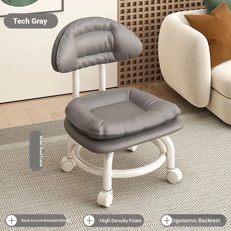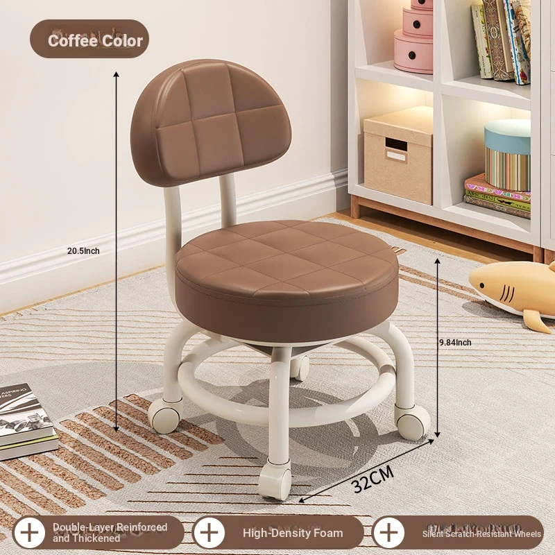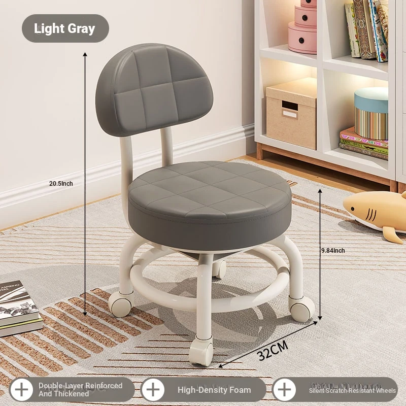 Versatile Rolling Stool with Wheels - Perfect for Home Use, Shoe Changing, and Kids! Ideal for Families, This Stylish Low Bench Features a Backrest and is Great for Seam Filling Projects.