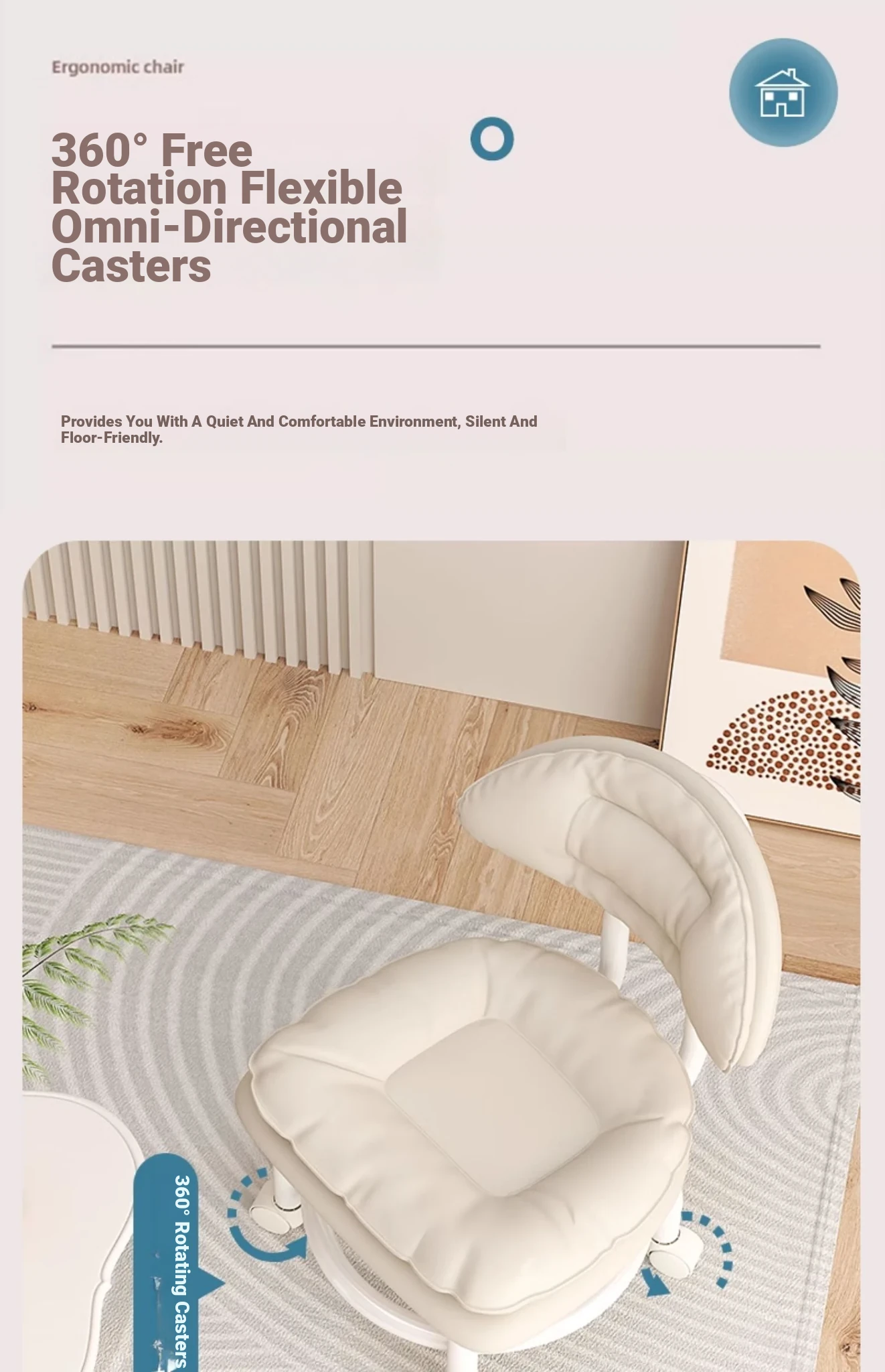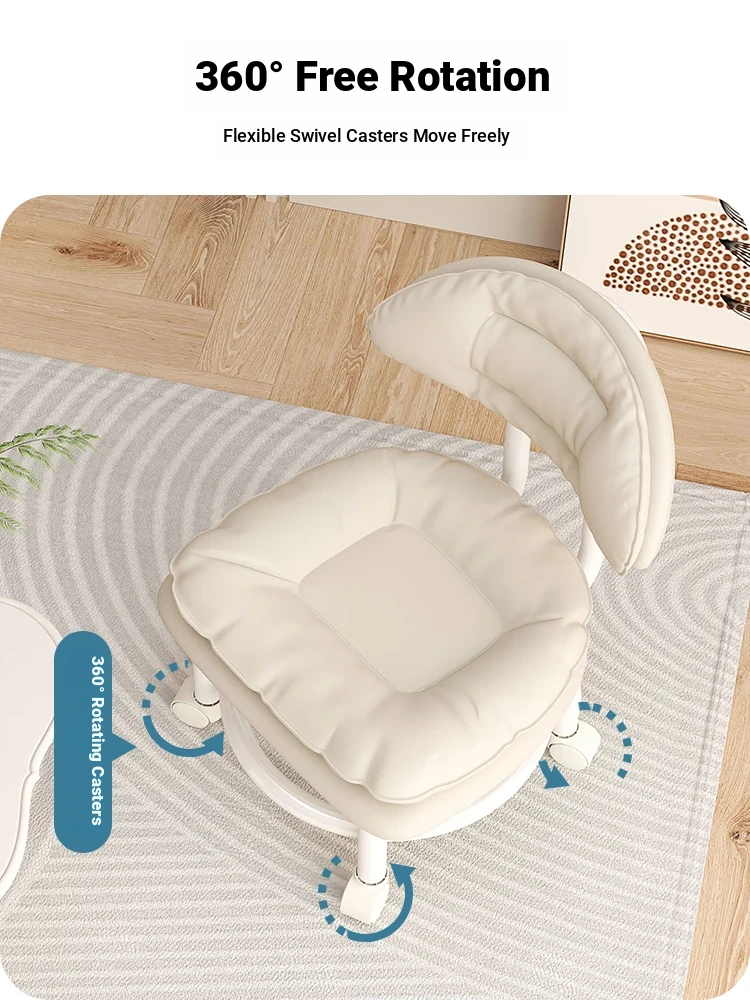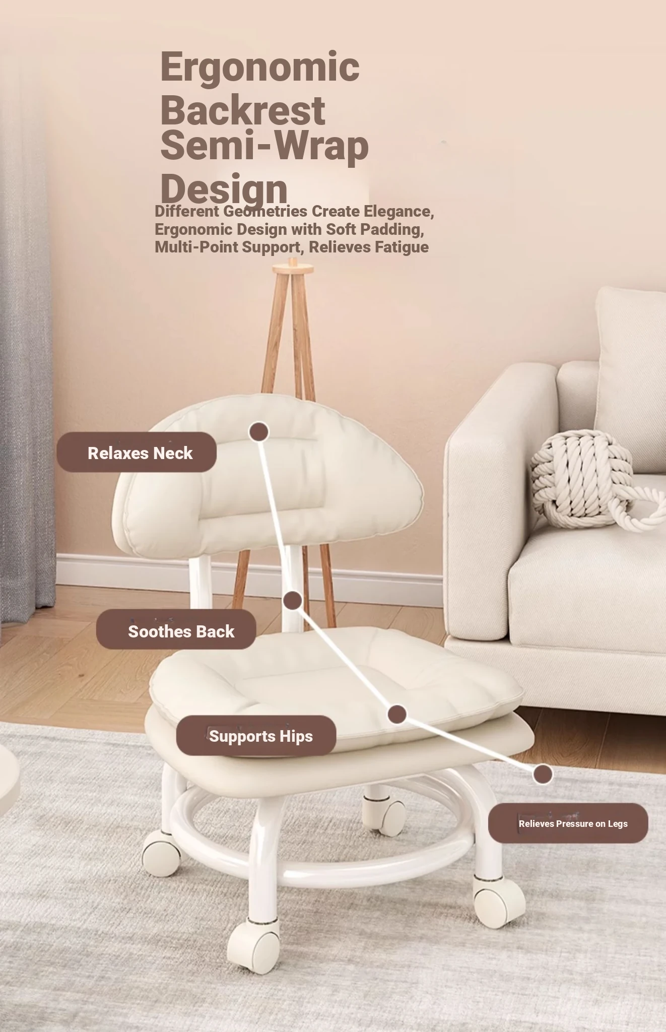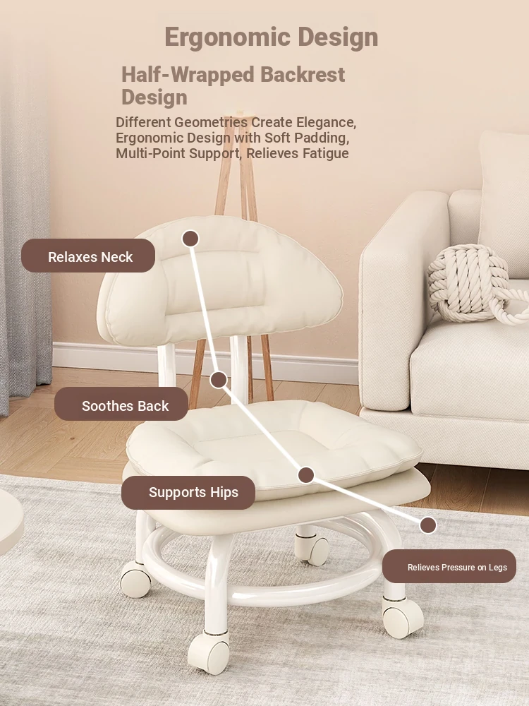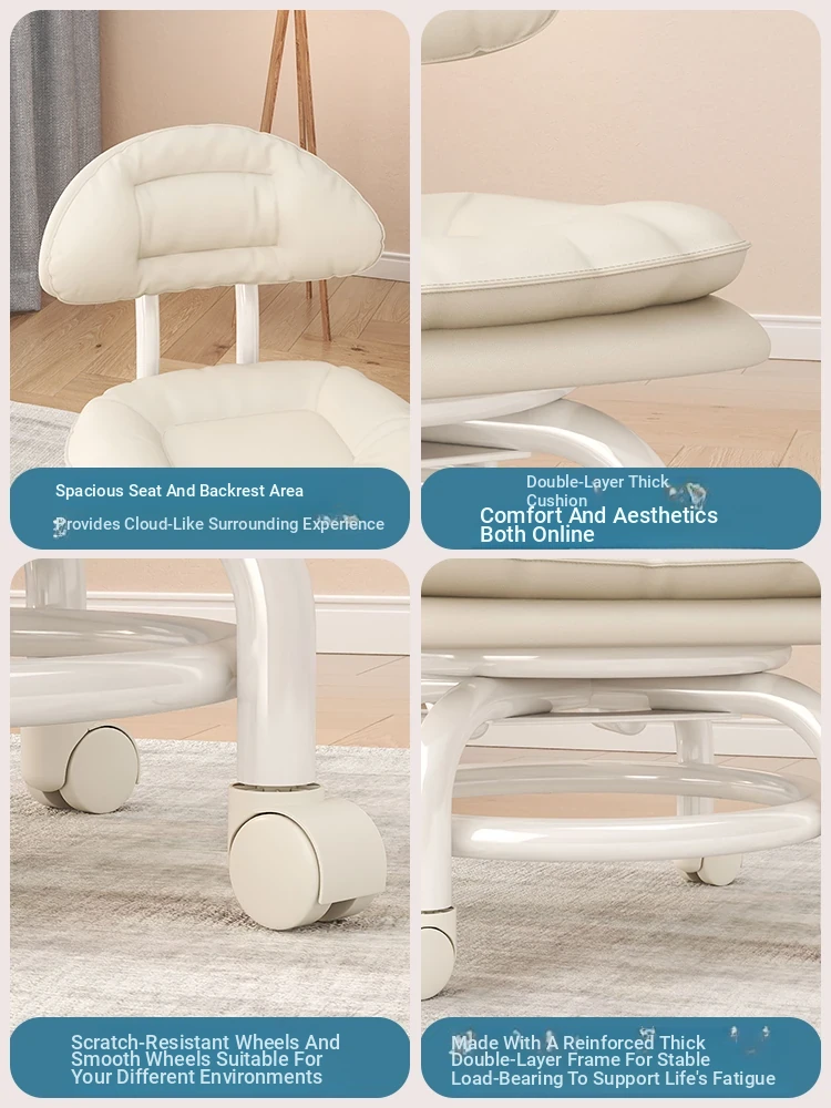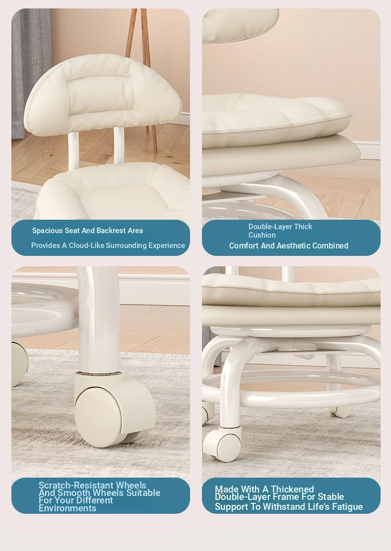 Beige White⭐Double metal frame-waist support backrest⭐-Silent anti-scratch wheel