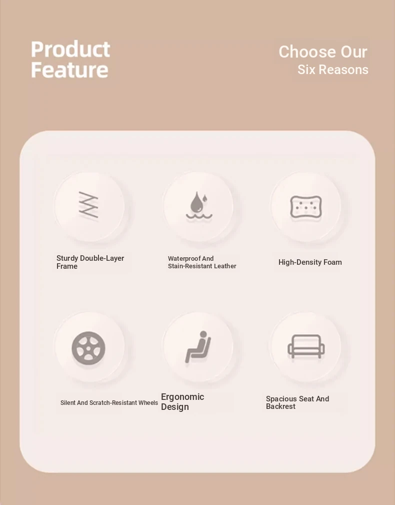 Coffee⭐Double metal frame-waist support backrest⭐-Silent anti-scratch wheel