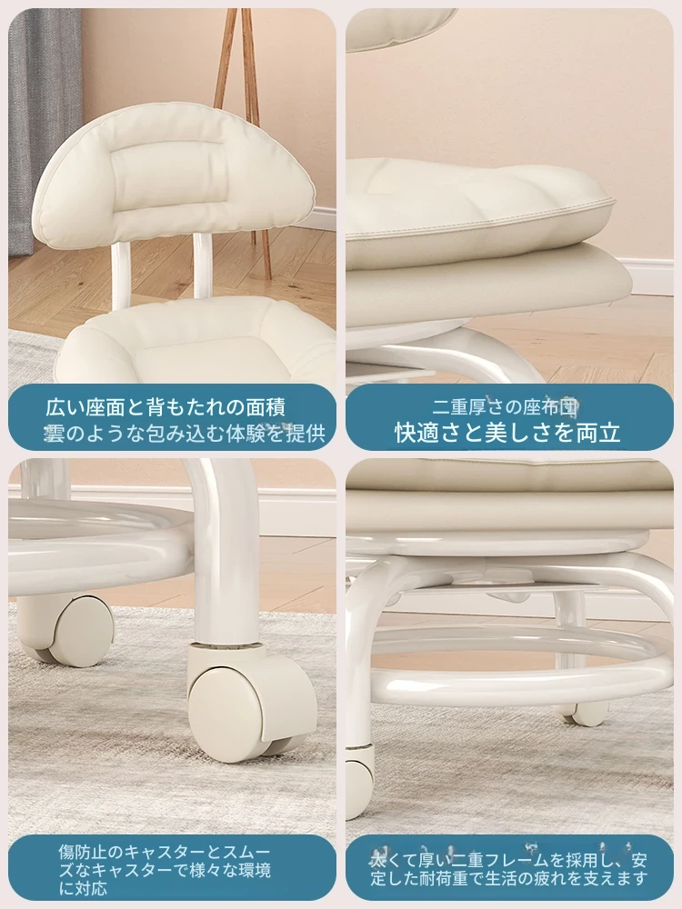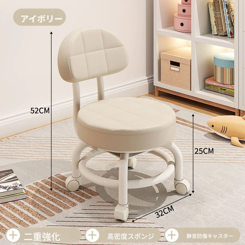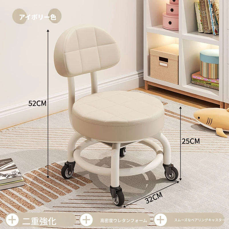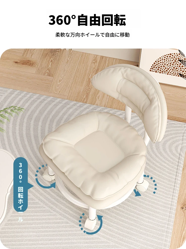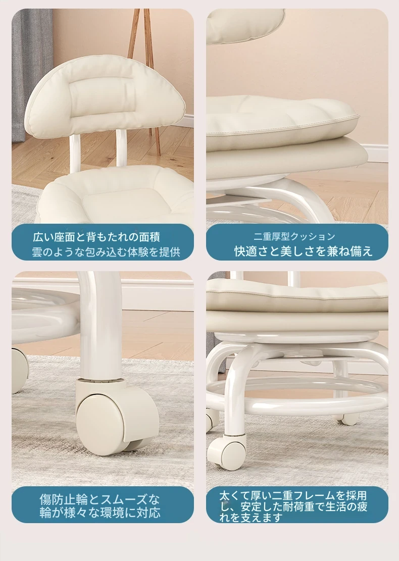 アイボリー⭐二重金属フレーム-腰サポート背もたれ⭐-静音防擦ホイール