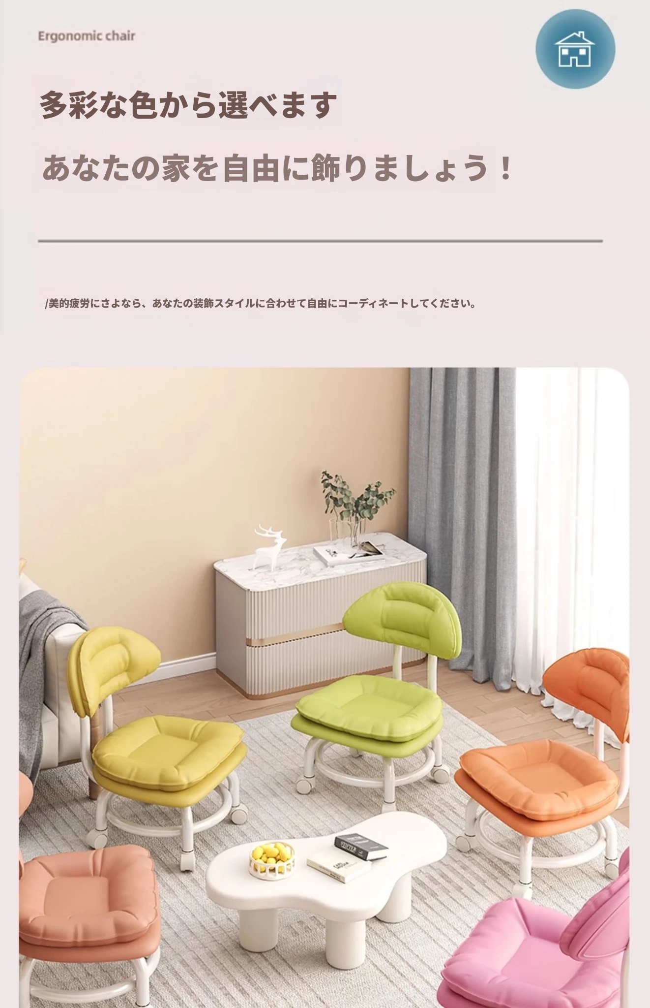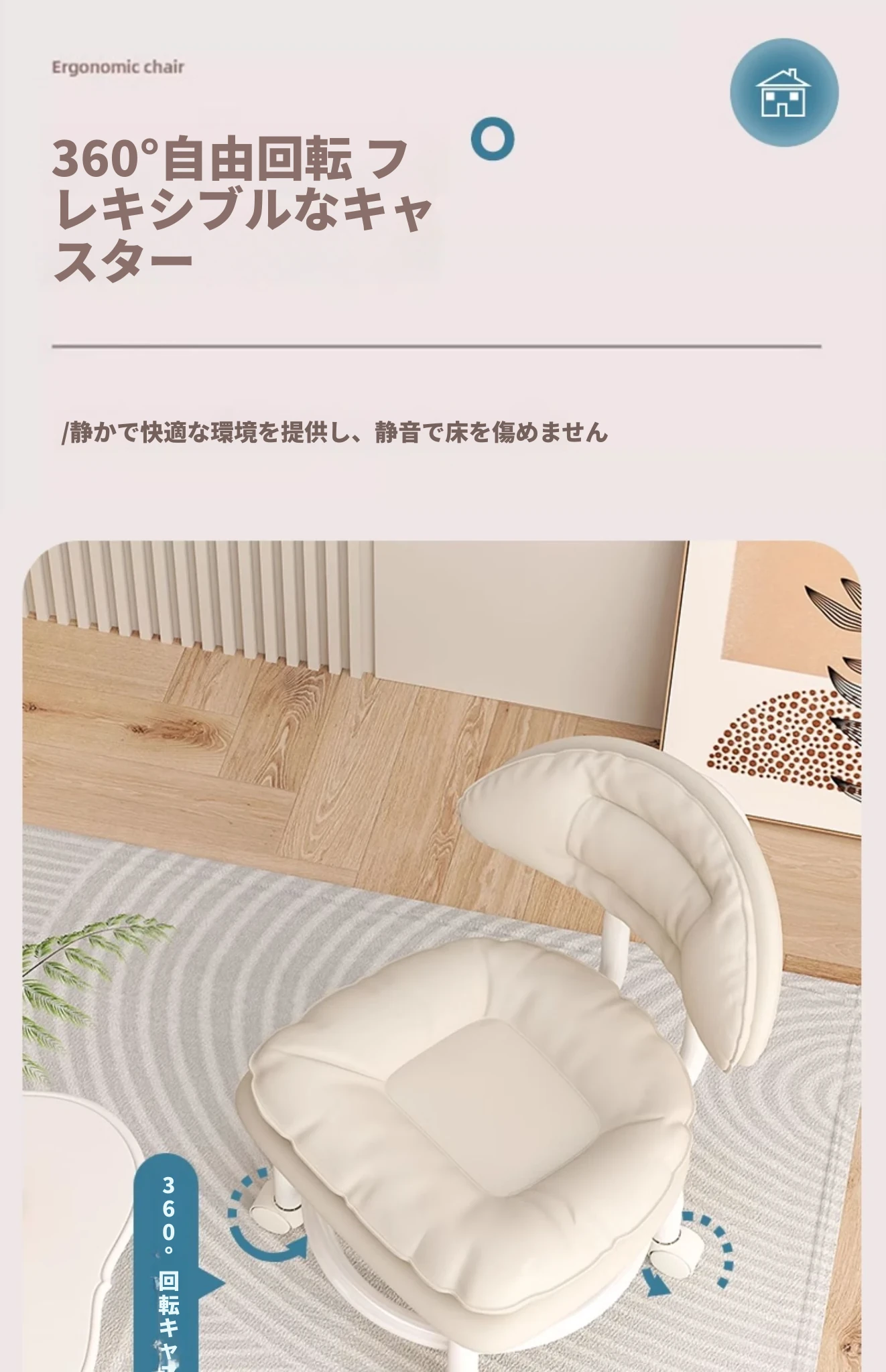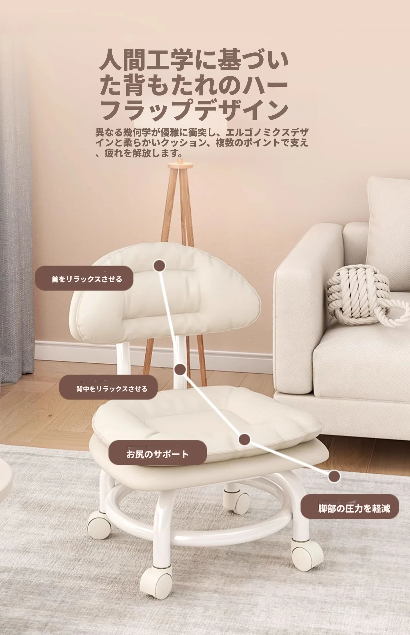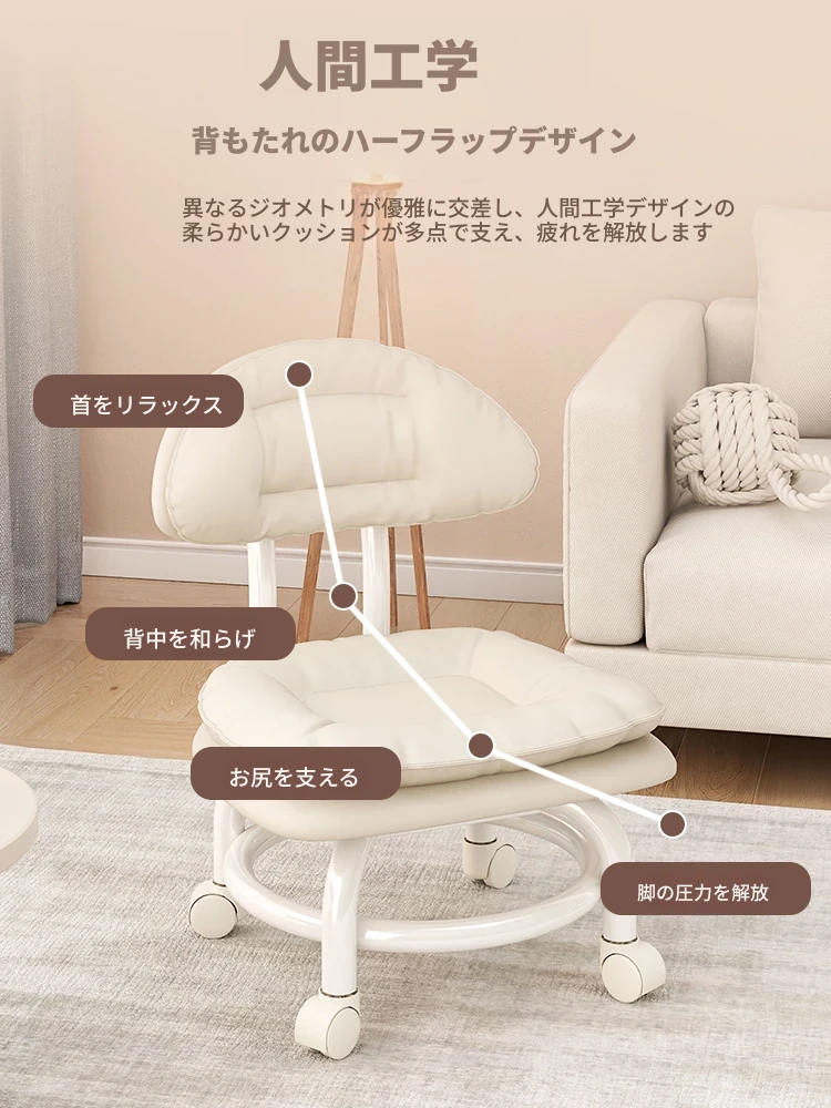 アイボリー⭐二重金属フレーム-腰サポート背もたれ⭐-静音防擦ホイール