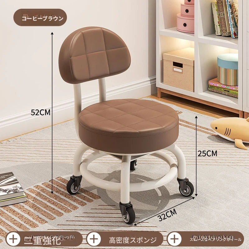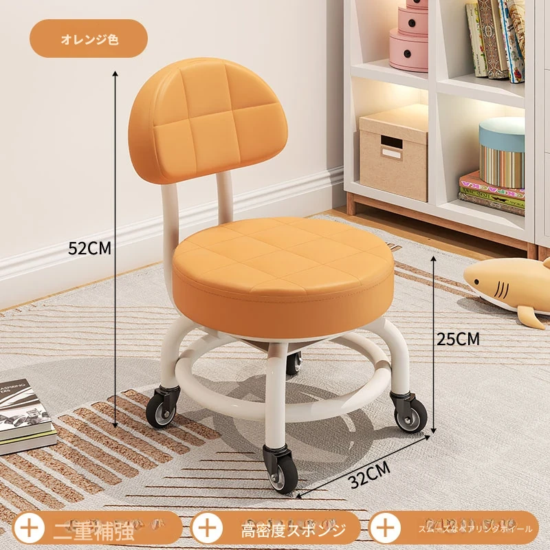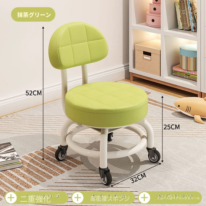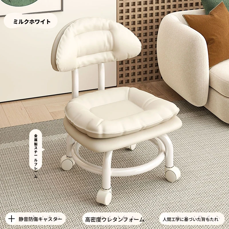 キャスター付き小さなスツール - おしゃれな靴を履くための便利なベンチ!子供も喜ぶ、移動ラクラクなベビーチェア。美しい仕上げでリラックスできる背もたれ付き!