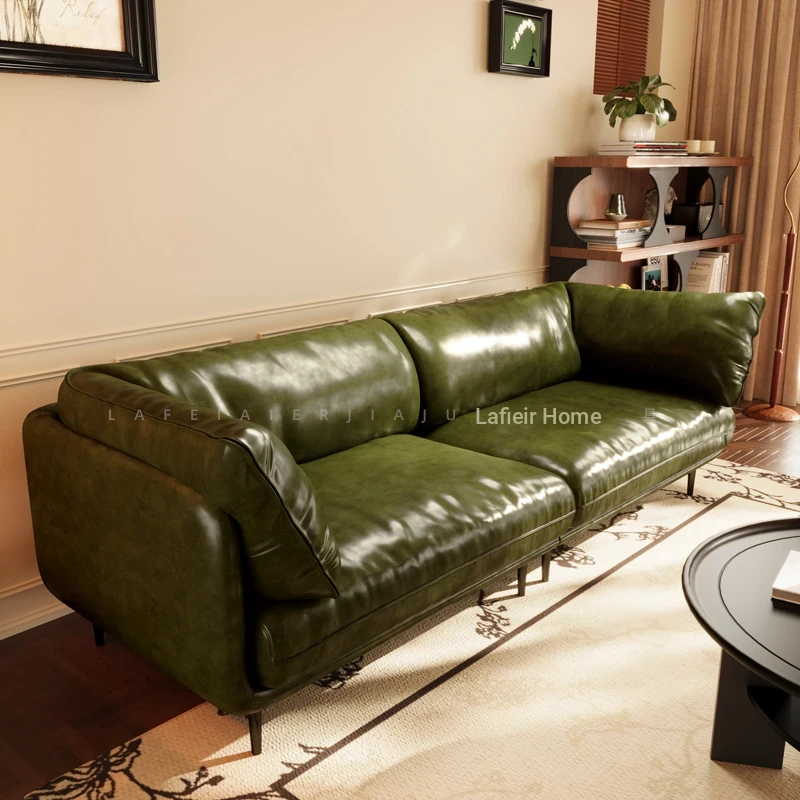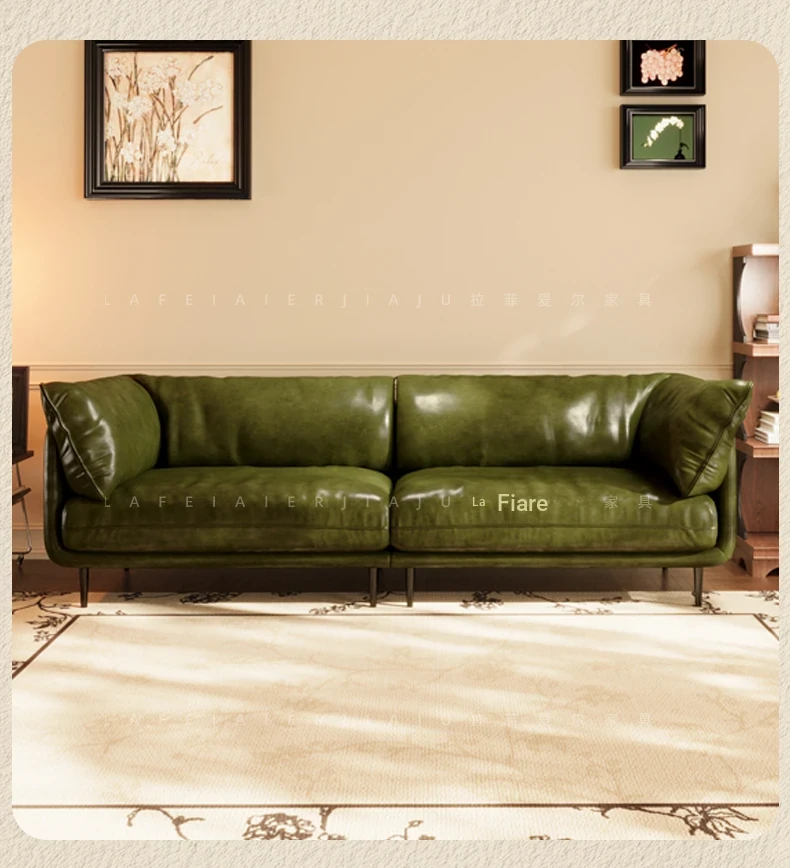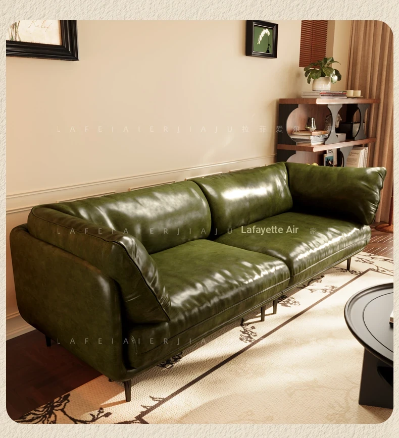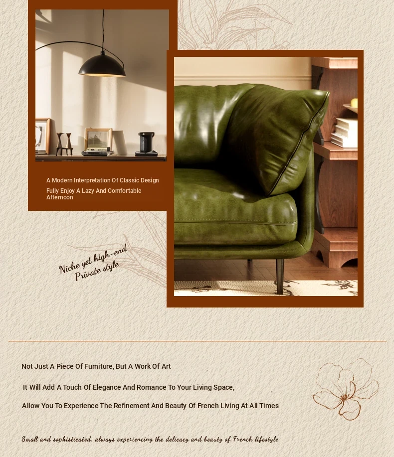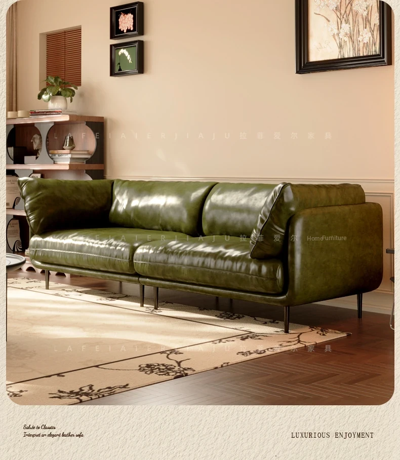 Vintage French Genuine Leather Sofa 2025 - Chic Mid-Century Duck Down Sofa for Small Spaces, Elegant Dark Green Embrace Design Perfect for Your Living Room.