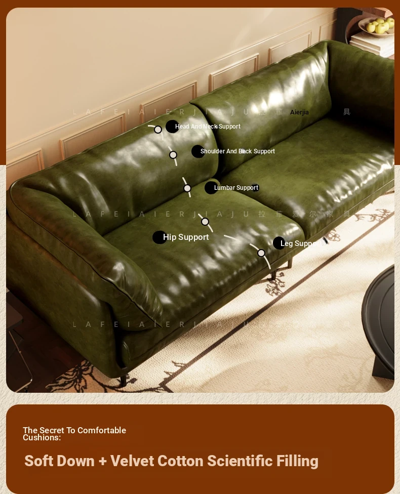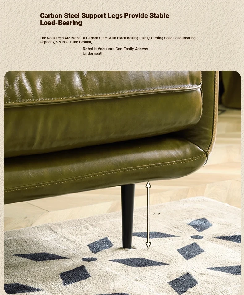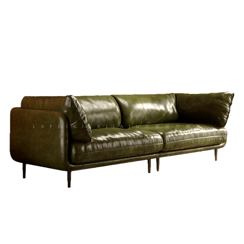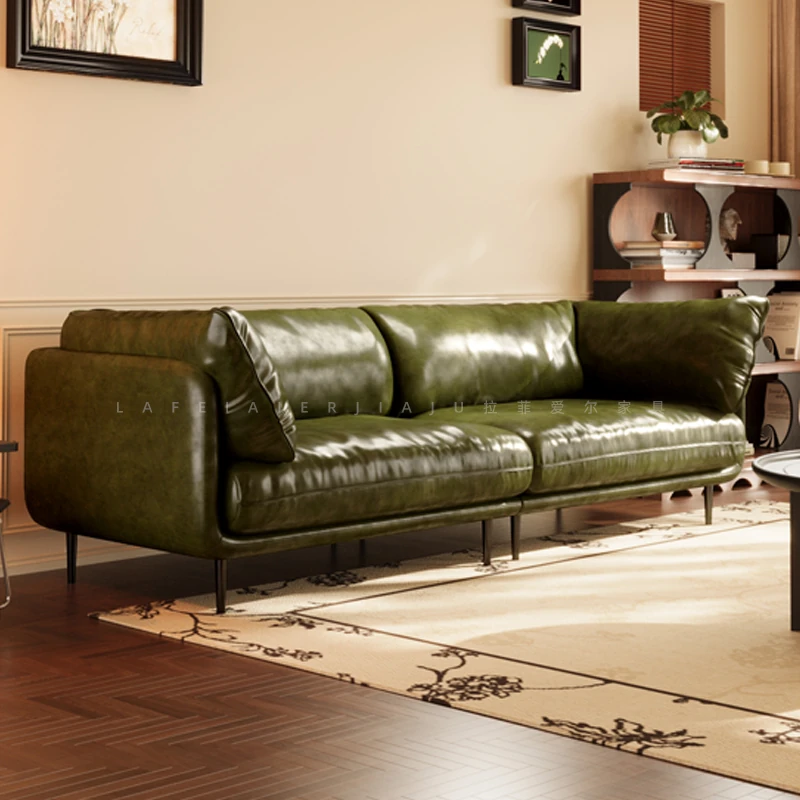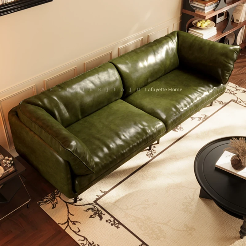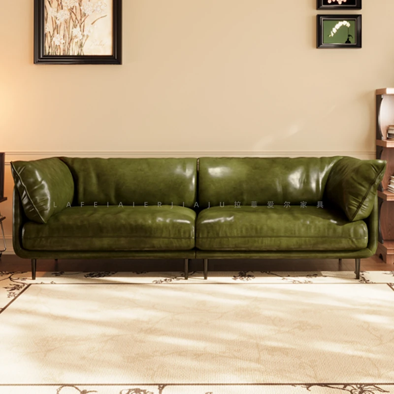Vintage French Genuine Leather Sofa 2025 - Chic Mid-Century Duck Down Sofa for Small Spaces, Elegant Dark Green Embrace Design Perfect for Your Living Room.