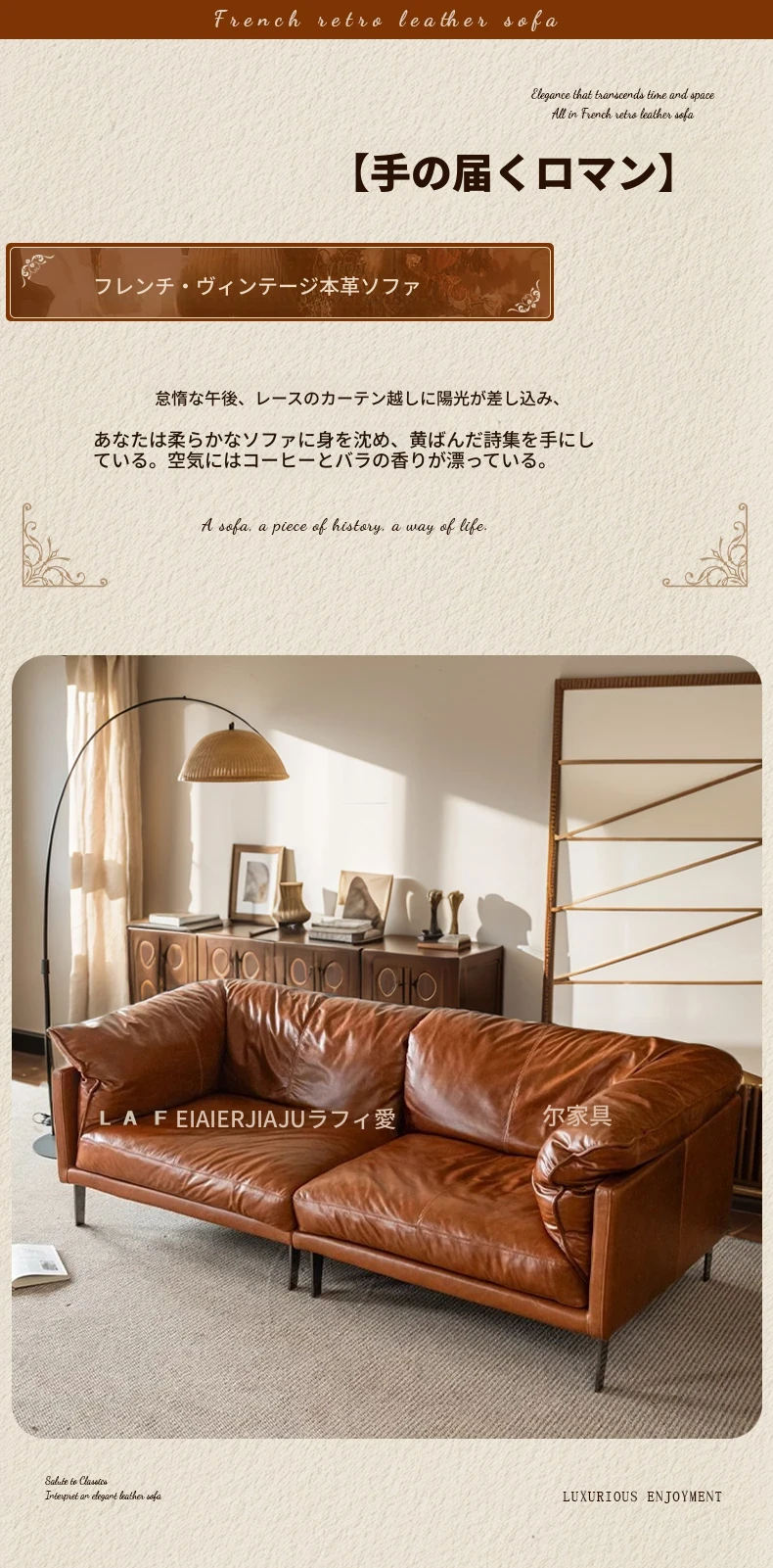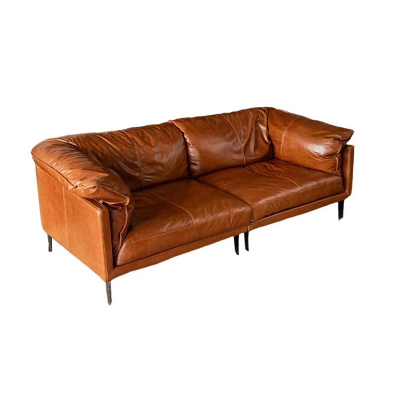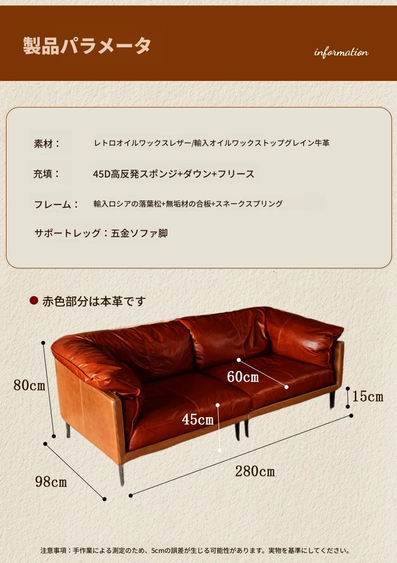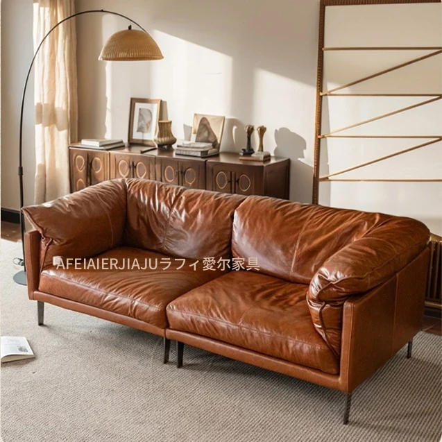 2025年新作!フランス風ヴィンテージダウンソファ 小型リビングに最適!オイルワックス本革使用のアンティークスタイルソファで、優雅な空間を演出。快適な座り心地をお楽しみください!