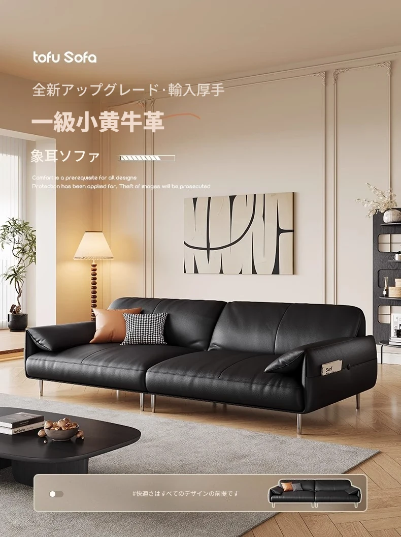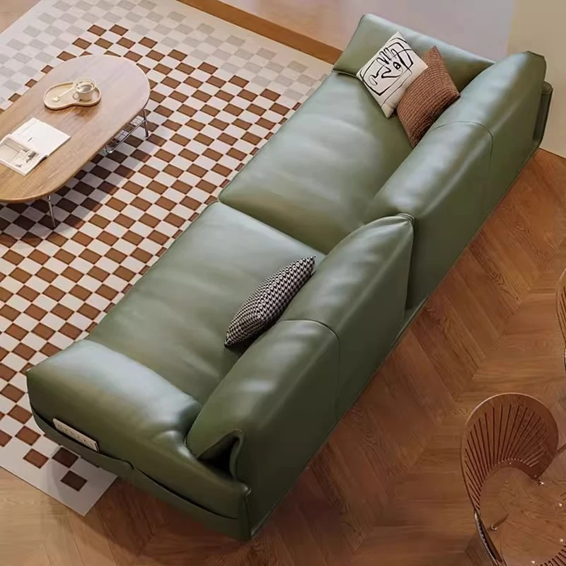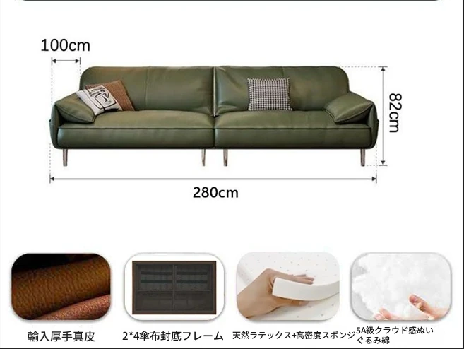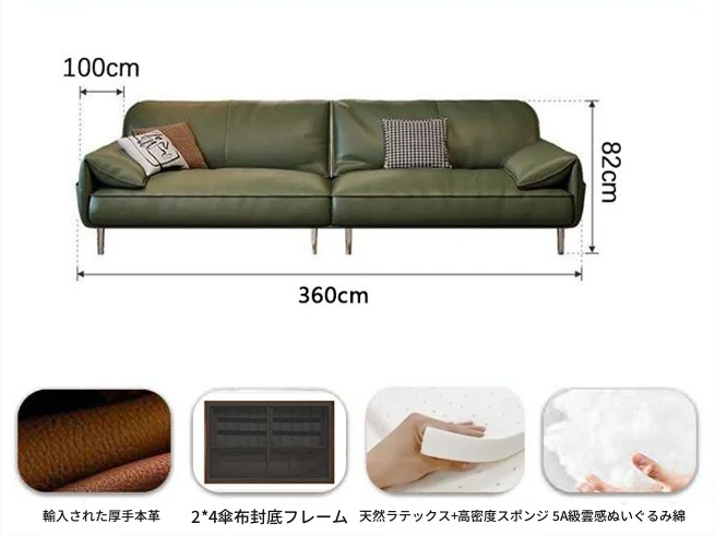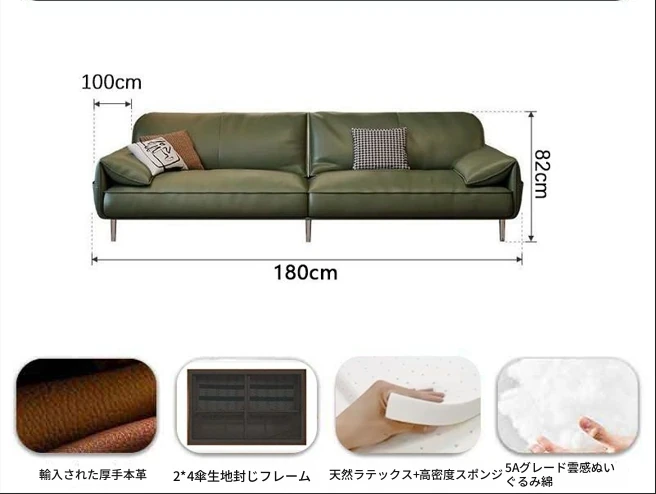 深い緑色の本革ソファ | コンパクトなリビングにぴったり!象耳デザインのオイルワックス仕上げ、3人掛けのヴィンテージスタイルで、あなたの空間をおしゃれに演出します。