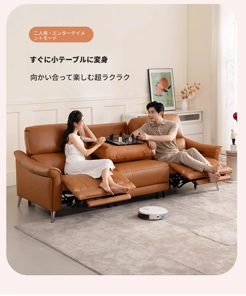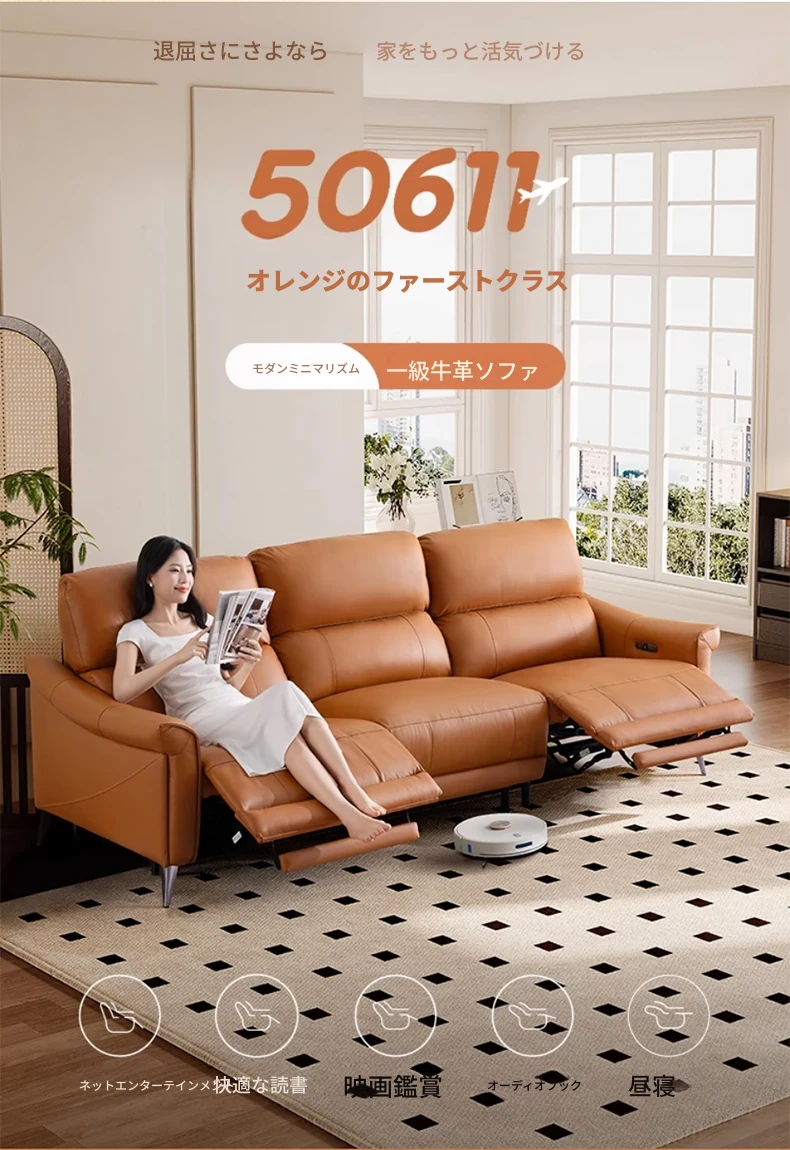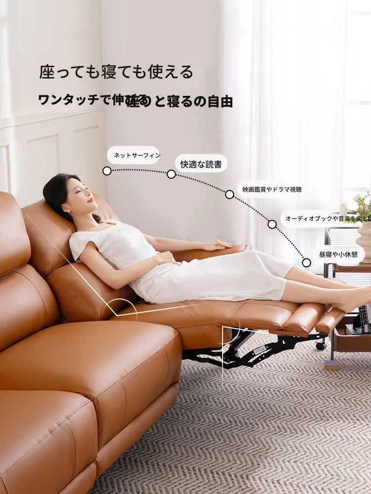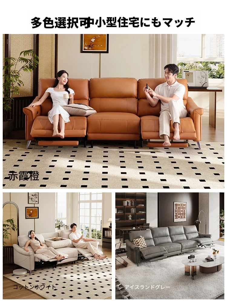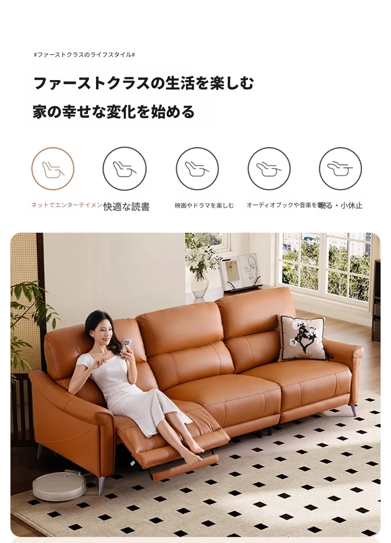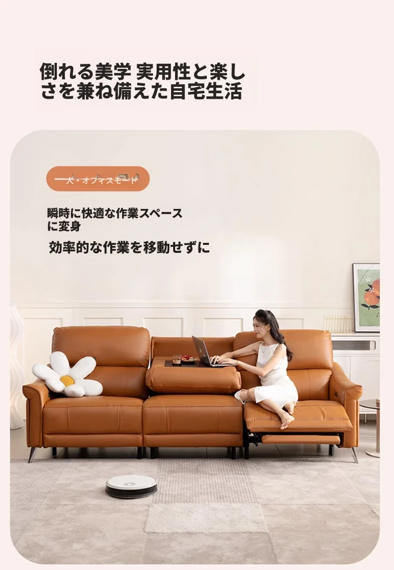 芝华仕エグゼクティブ小型ソファ|リビングにぴったりな電動多機能3人掛け本革ソファ50611B|快適さとスタイルを両立!