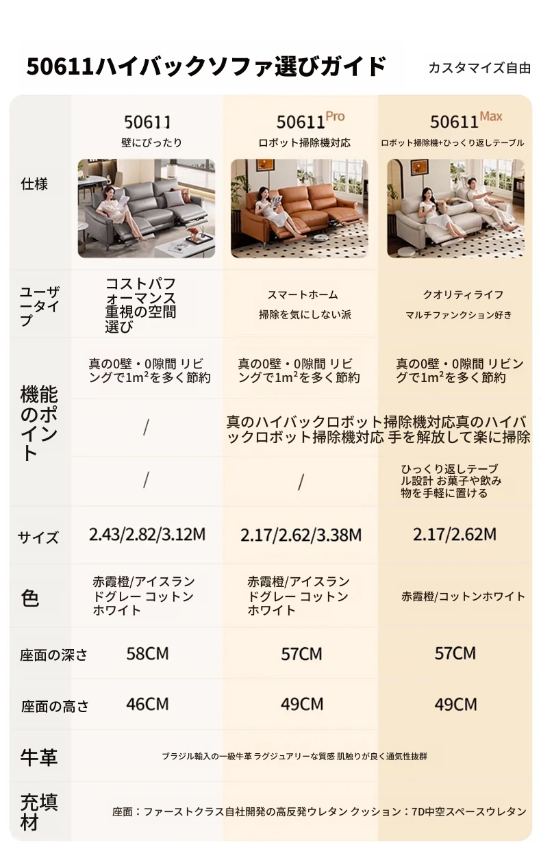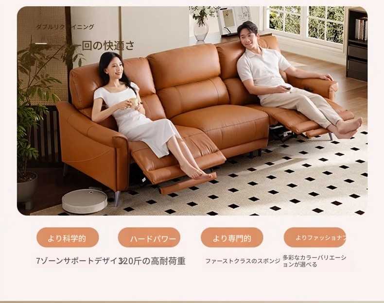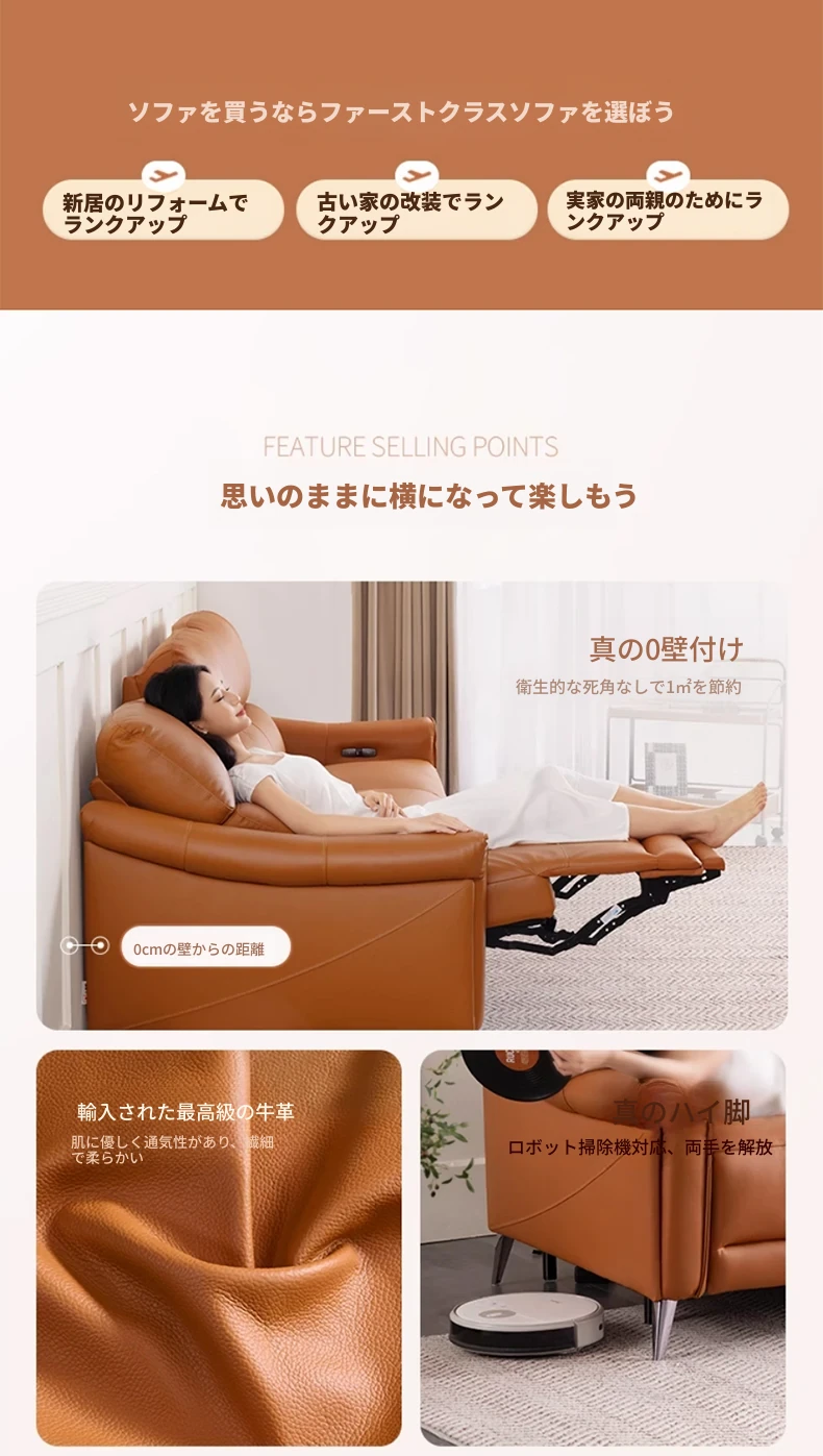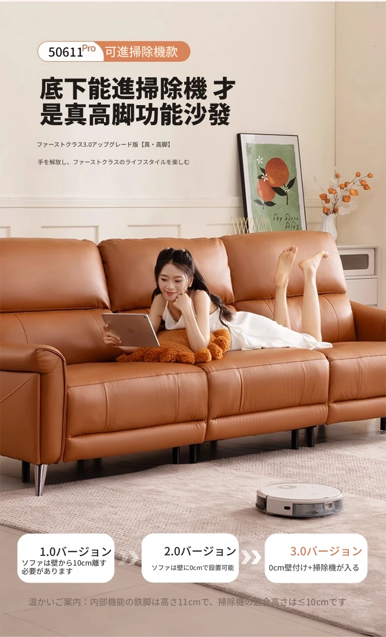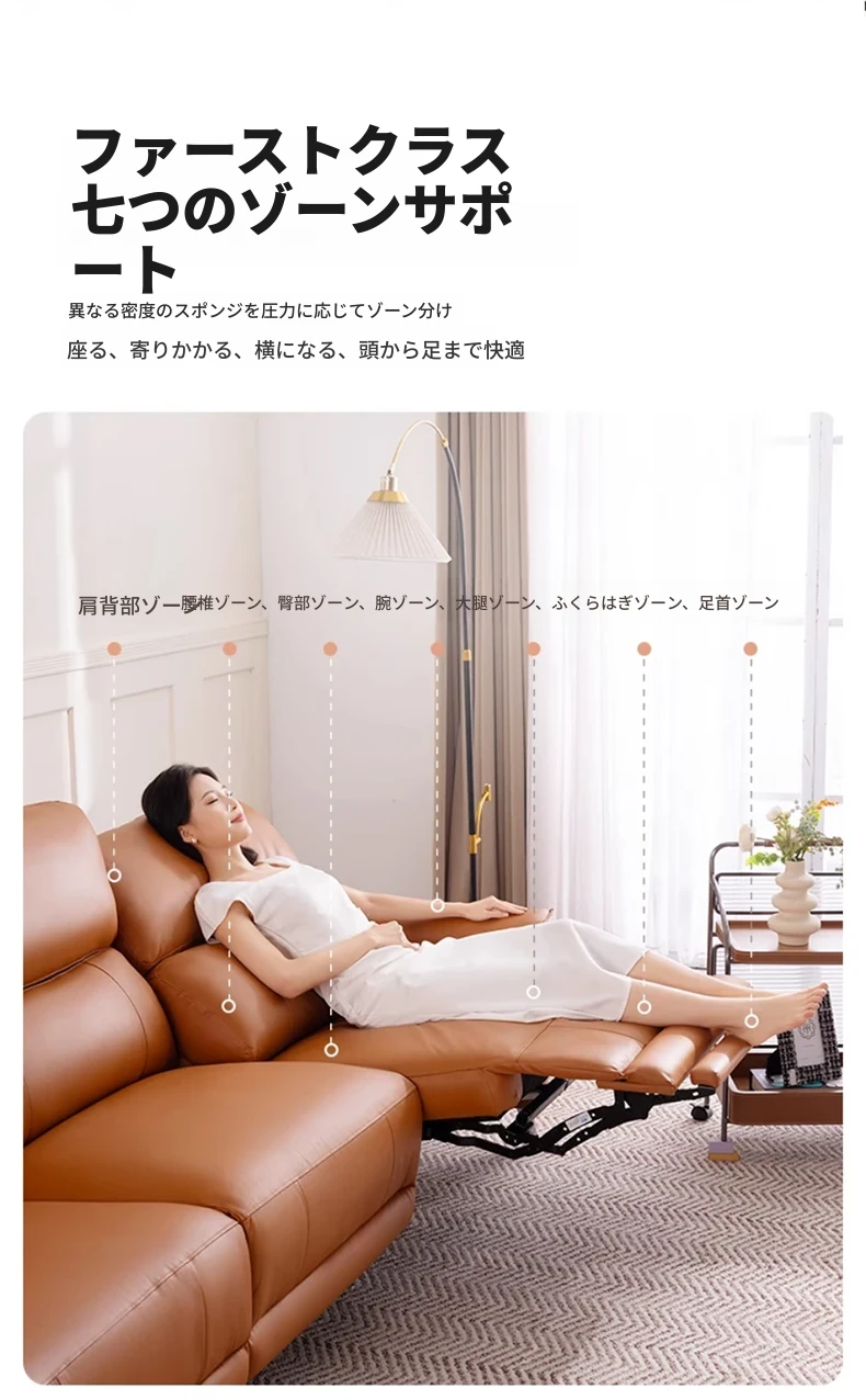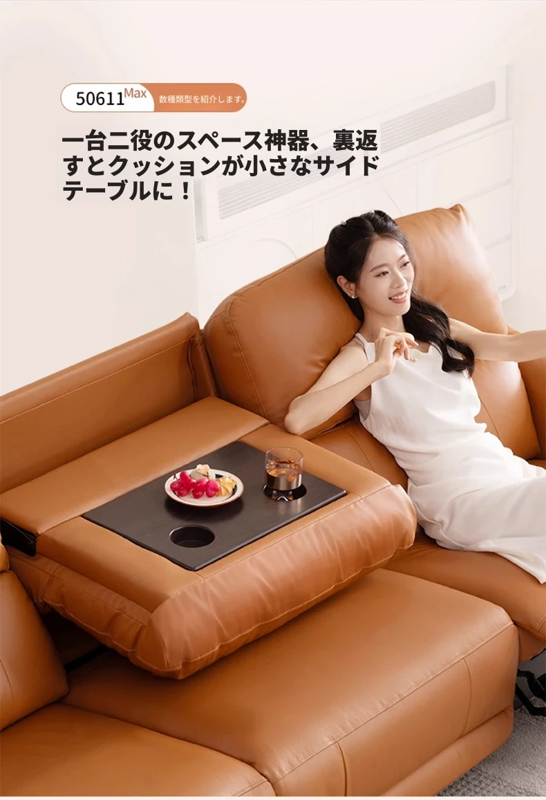 芝华仕エグゼクティブ小型ソファ|リビングにぴったりな電動多機能3人掛け本革ソファ50611B|快適さとスタイルを両立!