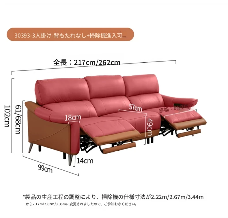 【壁に寄せない-スイープロボット】2.17M サンセットオレンジ-小三人掛け二重電動